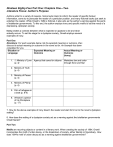 Nineteen Eighty-Four Part One: Chapters One—Two Literature Focus: Author’s Purpose Authors write for a variety of reasons. Some texts intend to inform the reader of specific factual information, some try to persuade the reader of a particular position, and many fictional books just seek to entertain the reader. While Orwell’s 1984 is fictional, it also acts as the author’s warning against the perils of totalitarian governments. To this end, the author employs irony and specific motifs to set the mood of a depressing, dystopian society. Irony creates a contrast between what is expected or appears to be and what actually occurs. To set the stage for a dystopian society, Orwell employs several examples of irony. Part One Directions: For each example below, list its expected meaning or outcome, then discuss its actual meaning or outcome in the novel so far. An example has been completed for you. Situation or Expected Meaning or Actual Meaning or Language Outcome Outcome (Irony) 1. 1. Ministry of Love (p. 4) Agency that cares for citizens Maintains law and order through force and fear 2. Ministry of Truth (p. 4) 3. Ministry of Peace (p. 4) 4. Ministry of Plenty (p. 4) 5. Film of refugees in a boat (p. 8-9) 6. Winston’s opinion of his Workplace (p. 17) 7. How do the above examples of irony disarm the reader and alert him/ her to the novel’s dystopian setting? 8. How does the setting of a dystopian society act as a warning against the totalitarian governments Orwell feared? Part Two Motifs are recurring objects or content in a literary work. When creating the society of 1984, Orwell incorporates the motif of urban decay, or the breakdown of society, either literally or figuratively. How does 1984’s motif of urban decay act as a warning against totalitarian governments? Directions: Describe examples of urban decay from Part One: Chapters One and Two. An example has been completed for you. Ex. Elevator seldom worked in Victory Mansions (p.1) Nineteen Eighty-Four Part One: Chapters Three—Four Literature Focus: Social and Historical Influences Authors create their works within a particular social and historical context. While historical fiction novels are set in a particular time period, authors also create works to reflect the societal upheaval through which they live. George Orwell published 1984 in 1949, a year after the close of World War II. While the allied countries fought against the axis of fascist states in Europe and Asia, the closing days of the war produced uncertainty about the Soviet and Chinese communist states. When placed into a historical perspective, references to fascist and communist states, as well as prophecies of present-day society, echo throughout 1984. Directions: For each historical example, provide Orwell’s counterpart to it from Chapters Three-Four in 1984. Provide the quote and page numbers. An example has been completed for you. Historical Reference Counterpart in 1984 Soviet leader Joseph Stalin purged 5-8 million Soviet citizens during the purges of the 1930s. “The two of them (Winston’s parents) must evidently have been swallowed up on one of the first great purges of the Fifties.” (29) Women in totalitarian cultures were frequently viewed only in utilitarian terms of their strength and fitness for child bearing. From September 1940 to May 1941, Germany repeatedly bombed British cities during the Blitz. In August 1945, the United States dropped atomic bombs on the Japanese cities of Hiroshima and Nagasaki. During World War II, the United States and the Soviet Union fought together against the axis powers, until the two superpowers became avowed enemies during the Cold War. Some countries and schools choose not to teach and discuss historical events such as the Holocaust. Since the 1940s, over twenty countries have officially declared themselves to be socialist states. During World War II, Great Britain’s Ministry of Food instituted a system of food rationing. Beginning in 1933, the Ministry of Public Enlightenment and Propaganda produced posters, news reports, films, and art in Nazi Germany. Nineteen Eighty-Four Part One: Chapters Five—Six Literature Focus: Themes of Mind Control and Psychological Manipulation Themes are the key ideas in a work of literature. While a novel may evoke a variety of ideas, the work’s themes extend throughout the piece of literature. To support a theme, the author revisits and supports the idea with textual evidence throughout the novel. Orwell begins developing the themes of mind control and psychological manipulation at the beginning of the novel and continues them throughout the book. Directions: Describe examples of mind control and psychological manipulation from Part One: Chapters Five and Six. An example has been completed for you. Ex. Public hangings discourage political dissent (p. 49) Nineteen Eighty-Four Part One: Chapters Seven—Eight Literature Focus: Symbolism In literature, authors frequently inject symbols into a novel to represent abstract ideas. Symbols, such as using colorful leaves to represent autumn, may be commonly recognized, while other symbols may be specific to the literary work. In 1984, George Orwell uses several symbols to infuse a deeper meaning into the text. Directions: For each symbol, select a passage from the novel that best incorporates the symbol, and identify what the symbol represents. Symbol Passage Representation The Party’s : “In the old days before the glorious : The Party’s history books history books Revolution, London was not the represent the Party’s total beautiful city that we know today. . . separation from the past. When any ordinary person spoke to a Ingsoc has set itself as a capitalist he had to cringe and bow to separate society and him, and take off his cap and address history, not as an extension him as ‘Sir.’” (72-73) of the society from which it arose. 1. Song about the Chestnut Tree Café 2. Room over Mr. Charrington’s shop 3. G