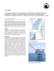 OTC 16058 An Integrated Approach for Gas Dispersion, Gas Explosion and Structural Impact Analysis for an Offshore Production Platform on the Dutch Continental Shelf W. Korndörffer, KCI; D. Schaap, Orbital; A.M.A. van der Heijden, Orbital; N.H.A. Versloot, TNO Prins Maurits Laboratory Copyright 2004, Offshore Technology Conference This paper was prepared for presentation at the Offshore Technology Conference held in Houston, Texas, U.S.A., 3–6 May 2004. This paper was selected for presentation by an OTC Program Committee following review of information contained in an abstract submitted by the author(s). Contents of the paper, as presented, have not been reviewed by the Offshore Technology Conference and are subject to correction by the author(s). The material, as presented, does not necessarily reflect any position of the Offshore Technology Conference or officers. Electronic reproduction, distribution, or storage of any part of this paper for commercial purposes without the written consent of the Offshore Technology Conference is prohibited. Permission to reproduce in print is restricted to an abstract of not more than 300 words; illustrations may not be copied. The abstract must contain conspicuous acknowledgment of where and by whom the paper was presented. Abstract The design of an offshore gas production platform has been subjected to an extensive quantitative risk analysis in particular with regard to its resistance to gas explosions loads. It was demonstrated that integration of the physical and structural effects of a gas explosion in an early stage of the design results in a safe and economical design. Introduction In October 2003 gas was produced for the first time from the Wintershall Q4-C gas production platform located in the North Sea, 30 kilometres offshore the Dutch coast in a water depth of 24 metres (see Figures 1 and 2). The recoverable reserves of the gas reservoir at a depth of 2 kilometres are estimated to be 6 BCM. The reservoir is depleted by two wells and presently producing 3.5 MNm³ gas per day which is evacuated by a submarine pipeline via Unocal’s Hoorn platform. The potential production capacity is 7.5 MNm³/day. The platform production facilities are based on the gas dewatering process. The platform is normally not manned. The design of the platform has been carried out by Korndörffer Contracting International (KCI BV), constructed by the construction yard HBG and installed by Seaway Heavy Lifting. The design and construction of the platform have been certified by Bureau Veritas. The Dutch State Supervision of Mines is the supervisory authority. As part of the safety case, an integrated gas dispersion, gas explosion and structural impact analysis has been carried out to assess the impact and risks of a gas explosion. Figure 1: Field location map Figure 2: Q4-C Gas production platform 2 OTC 16058 Platform Description The Q4-C platform is a fixed structure consisting of a topside deck structure mounted on a jacket type substructure founded with skirt piles to the sea bottom. The composing components are depicted and described below. Main Deck. The main deck supports the deck crane, helicopter deck and living quarters. This deck will be further used as well work over and maintenance operations and equipment. The remaining open area is reserved for future expansions like compression facilities. Platform Modules. Vent Stack Living Quarter & Helicopter Deck Superstructure Figure 4: Main deck Production Deck. The production deck houses the following production facilities and utilities as described and depicted below (see Figure 5). Substructure 1 8 3 2 6 7 Figure 3: Q4-C Platform Vent Stack. The vent stack is 45 metres long. Living Quarter and Helicopter Deck. This module consists of an 11 men living quarter and a helicopter deck. The living quarter also contains, apart from the kitchen and living rooms, the control room for the platform. The second floor houses the sleeping quarters. This entire module weighs 400 tons. Superstructure. The topsides consist of three decks, which house all process equipment required to dewater the gas for transport to shore by pipeline. The topsides weight is 1800 tons. Substructure. The jacket is fixed to the seabed by means of eight skirt piles driven 35 meters into the seabed and supporting the topside structures. The jacket weight is 1200 tons. Superstructure. The superstructure is composed of three decks, being the main deck, production deck and cellar deck. 4 5 Figure 5: Production deck 1. X-mas tree; the well pressure is 250 bar. The X-mas tree contains a (choke) valve, which reduces the pressure to about 105 bar. 2. The manifold and HIPPS. 3. Two Gas/Liquid Separators. The maximum capacity of each separator is 3.3 MNm3 gas per day. 4. Four microturbines that generate the required power. They each have a capacity of 60 kW. The produced gas from the platform will be used as fuel. 5. Diesel generator. In case no gas is available for the micro turbines, a diesel generator is present to provide the required electricity for a so called “black-start”. OTC 16058 3 6. Battery room. Batteries are present to supply electricity to the main equipment during power failure of the micro turbines. 7. Electrical Equipment room. Almost all electrical equipment will be connected to the cabinets in this room. This room is connected to the control room in the living quarter (at the main deck). 8. Sphere Launcher. Cellar Deck. The produced gas is evacuated from this deck. This deck also contains a “tank farm” for storage of chemicals, diesel and drinking water. The cellar deck houses the following production facilities and utilities as described and depicted below (see Figure 6). 9. Two Liquid / Liquid separators. 10. Two Venturi tubes. A venturi tube is installed to ensure the condensate is being spiked into the gas stream. 11. Export manifold. The produced gas will be collected in this 16-inch pipe, which is connected to the riser 