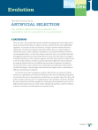 Evolution BigIdea 1 investigation 1 ARTIFICIAL SELECTION Can extreme selection change expression of a quantitative trait in a population in one generation? ■■BACKGROUND There are only a few possible laboratories available and appropriate for the high school classroom environment that can explore real-time natural selection with multicellular organisms. For reasons of time and resources, trying to measure natural selection is problematic. Many lab investigations that help students derive an understanding of natural selection are either computer simulations or structured simulations. However, a promising alternative is to have the students study and carry out an artificial selection investigation using Wisconsin Fast Plants (Brassica). Just as Darwin relied on examples of artificial selection in cattle, domestic pigeons, and other farm animals to make his case in On the Origin of Species, students can gain important insights into natural selection by studying artificial selection. In addition, this particular investigation on artificial selection provides an easy transition into student-generated explorations that look for possible advantages or disadvantages that selected traits might confer on individuals in different environmental conditions. For the first part of the investigation, students will perform one round of artificial selection on a population of Wisconsin Fast Plants. First, they will identify and quantify several traits that vary in the population and that they can quantify easily. They then will perform artificial selection by cross-pollinating only selected plants. Students will collect the seeds, plant them, and then sample the second-generation population and see if it is different from the previous one. Their results will generate questions, and they will have a chance to test their own ideas about how selection works. Investigation 1 T49 PREPARATION Materials and Equipment Per Class: • Lighting: light box systems (as per the Wisconsin Fast Plants website, http://www.fastplants.org) Per Team/Student: • Growing system: reused plastic soda or water bottles • Wicking: #18 nylon mason twine • Fertilizer: Miracle-Gro Nursery Select All Purpose Water-Soluble Plant Food, or Peters Professional with micronutrients • Soil: Jiffy-Mix (soil mix, not potting soil) • Vermiculite • Fast Plants Seed (F2 Non-Purple Stem, Yellow-Green Leaf works well and provides additional options explained in The Investigations; it is available as item 158888 from Carolina Biological. Other seed stocks, such as the standard Fast Plants seeds that can be purchased from Carolina Biological or Nasco, work as well). • Bee sticks for pollination • Digital cameras to record the investigation • Plastic magnifiers • Laboratory notebook ■■Timing and Length of Lab The first part of this investigation, Procedure, minimally involves growing one generation of Wisconsin Fast Plants from seed to seed, followed by an additional 10day growing period for the second generation of plants. The total time is approximately seven weeks. Almost all days will be short, with students taking care of plants and making notes. Occasionally, more time (5-10 minutes) will be needed — for planting, quantifying variation and selection, pollinating plants, and scoring the second generation. The time needed to fully investigate questions generated by students in the second part of the investigation will need to be determined by you and your students. As in the first part, much of the work in the student-led part can be carried out in a part-time manner at the beginning and/or end of class. Another option would be after school. ■■Safety and Housekeeping When growing plants under lights, be careful to avoid any situation where water or fertilizer could come in contact with the electrical wires. T50 Investigation 1 Big Idea 1: Evolution ■■Alignment to THE AP Biology Curriculum This investigation can be conducted during the study of concepts pertaining to natural selection and evolution (big idea 1). As always, it is important to make connections between big ideas and enduring understandings, regardless of where in the curriculum the lab is taught. The concepts align with the enduring understandings and learning objectives from the AP Biology Curriculum Framework, as indicated below. ■■Enduring Understandings • 1A1: Natural selection is a major mechanism of evolution. • 1A2: Natural selection acts on phenotypic variations in populations. ■■Learning Objectives • The student is able to convert a data set from a table of numbers that reflect a change in the genetic makeup of a population over time and to apply mathematical methods and conceptual understandings to investigate the cause(s) and effect(s) of this change (1A1 & SP 1.5, SP 2.2). • The student is able to evaluate evidence provided by data to qualitatively and quantitatively investigate the role of natural selection in evolution (1A1 & SP 2.2, SP 5.3). • The student is able to apply mathematical methods to data from a real or simulated population to predict what will happen to the population in the future (1A1 & SP 2.2). • The student is able to evaluate data-based evidence that describes evolutionary changes in the genetic makeup of a population over time (1A2 & SP 5.3). • The student is able to connect evolutionary changes in a population over time to a change in the environment (1A1 & SP 7.1). ■■ARE STUDENTS READY TO COMPLETE A SUCCESSFUL INQUIRY-BASED, STUDENT-DIRECTED INVESTIGATION? It is great to implement this investigation at the beginning of the year. Students need minimal content background to begin this investigation and complete the first part of the lab. In general, students find this lab to be very accessible and enjoyable. For the most part, skills are developed as the lab progresses. However, essential to the success of this investigation is the student’s ability to make and record good observations. Th