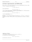 Example 1: (p. 241) Find the linearization of the function f (x) = x + 3 at a = 1 and use it to