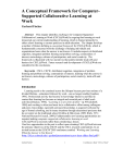 A Conceptual Framework for ComputerSupported Collaborative Learning at Work Gerhard Fischer Abstract This chapter identifies challenges for Computer-Supported Collaborative Learning at Work (CSCL@Work) by arguing that learning at work transcends our current understanding of learning, which is framed primarily by either school learning or current practices in adult education. The chapter develops a number of themes defining a conceptual framework for CSCL@Work, which is fundamentally concerned with the challenge of helping individuals and organizations learn when the answer is not known. It includes aspects of distributed cognition, integrated problem framing and problem solving, communities of interest, meta-design, cultures of participation, and social creativity. The framework is illustrated with two narratives that jointly identify trade-offs and barriers for CSCL@Work. Future research and development of CSCL@Work are considered in the conclusions. Keywords CSCL, CSCW, distributed cognition, integration of problem framing and problem solving, communities of interest, learning when the answer is not known, meta-design, cultures of participation, social creativity, trade-offs and barriers Introduction Learning needs to be examined across the lifespan because previous notions of a divided lifetime—education followed by work—are no longer tenable [Gardner, 1991]. Professional activity has become so knowledge-intensive and fluid in content that learning has become an integral and essential part of adult work activities [Drucker, 1994]. “Learning is a new form of labor” (p 395) [Zuboff, 1988] and working is often (and must be) a collaborative effort among colleagues and peers. Knowledge, especially advanced knowledge, is acquired well past the age of formal schooling, and in many situations through educational processes that do not center on the traditional school [Collins & Halverson, 2009; Illich, 1971; National-Research-Council, 2009]. Fundamentally new learning opportunities are required making computer-supported collaborative learning at work (CSCL@Work) a necessity rather than considering a luxury. I had two opportunities in the past to reflect upon situating CSCL@Work between the primary objectives of the CSCW and the CSCL research communities. In an invited lecture at the ECSCW’2003 conference entitled “Working and Learning When the Answer is Not Known” (http://l3d.cs.colorado.edu/~gerhard/presentations/ecscw-keyn-slides-final.pdf) I Gerhard Fischer 1 Contribution to Book “CSCL at Work” argued that the CSCW community should be more concerned with learning for the following reasons: learning is an essential part of work, particularly in contexts where the answer is not known; despite learning's important role, the CSCW community has largely neglected to use it as a theoretical and analytical construct; and future research challenges for CSCW should give more attention to learning, integrate working with learning and collaboration, and create innovative media to support this integration. In an invited lecture at the CSCL’2007 conference entitled "Designing SocioTechnical Environments in Support of Meta-Design and Social Creativity" (http://l3d.cs.colorado.edu/~gerhard/presentations/slides-cscl-final.pdf) I argued that the CSCL community should understand learning in work environments and not just in schools and that many advanced learning technology developments are too timid and are not thinking radically enough for the following reasons [Fischer, 2007]: they accept too many established approaches—e.g.: a theory of human learning based solely on school learning is too limited but the success of universal schooling has led us to identify learning with schooling; they insufficiently embrace new learning opportunities—e.g.: exploiting the unique opportunities of social production in which all learners can act as active contributors in personally meaningful problems; they reduce digital literacy and fluency to accessing and comprehending existing information rather than empowering learners to reformulate knowledge, to express themselves creatively and appropriately, and to produce and generate information; and they often do not move beyond “gift-wrapping” and “techno-determinism” to explore the co-evolution of learning, new media, and new learning organizations (see Figure 1). This paper is an elaboration of those ideas, and provides additional arguments about the importance and identity of CSCL@Work as a scientific discipline to rethink and reframe learning to better account for the demands of the knowledge societies of the future. The development of a framework for CSCL@Work has been influenced by numerous other sources including: Illich’s vision of “learning webs” conceiving a different style of learning, showing that “the inverse of school is possible”, and defining educational resources (reference services to educators-at-large and to educational objects, skill exchange, peer matching) were articulated 40 years before the World Wide Web made them possible [Illich, 1971]. Resnick’s differentiation of “learning in and out of schools” contrasted specifically: (1) individual cognition in school versus shared cognition outside; (2) pure mentation in school versus tool manipulation outside; (3) symbol manipulation in school versus contextualized reasoning outside school’ and (4) generalized learning in school versus situation-specific competencies outside [Resnick, 1987]; and Gerhard Fischer 2 Contribution to Book “CSCL at Work” Engeström’s concept of “expansive learning at work” grounded his approach in learning at work in the observation that “people and organizations are all the time learning something that is not stable, not even defined or understood ahead of time. … There is no competent teacher. Standard learning theories have little to offer if one wants to understand these processes” [Engeström, 2001]. The follow