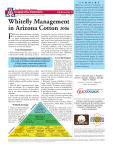 S U M M A R Y Cooperative Extension cals.arizona.edu/pubs/insects/az1404.pdf IPM Series No. 18 AZ1404 – 5/2006 Whitefly Management in Arizona Cotton 2006 F ollowing these guidelines, especially on a community basis, should result in better management locally and areawide. Effective integrated management depends on implementing pest avoidance practices, in-field sampling, and deployment of effective control technologies. Crop Management • Plant and terminate the crop as early as economically feasible. Encourage uniform ist predators are key sources of natural mortality of whiteflies in cotton. Predation, along with physical removal of whiteflies by dust, wind or rain, help extend the utility of selective insecticides (i.e., bioresidual). • Recognize conditions that can contribute to whitefly outbreaks, such as better than usual weather for over-wintering success and spring development of whiteflies on weeds and other desert hosts. Whiteflies breed year-round on multiple hosts. Our Goal: Manage whiteflies both locally and area-wide in Arizona to permit the production of high quality cotton and protect the economic interests of growers statewide. Areawide Impact Peter C. Ellsworth1, John C. Palumbo1, Steven E. Naranjo2, Timothy J. Dennehy1, Robert L. Nichols3 University of Arizona, 2USDA-ARS, 3 Cotton Incorporated 1 Developed in collaboration with and endorsed by Arizona Cotton Growers Association Arizona Cotton Research & Protection Council Arizona Crop Protection Association Arizona Pest Management Center Cotton Incorporated Ch Ef em fec ica tive lU se Sa m pl in g • Spatially and temporally arrange crops in your community to break the cycle of whitefly movement among fields. Miniplanting and termination practices within mize the direct contact between whiteflyyour community. Late-planted and longer- source and whitefly-attracting crops. For season fields are at greater risk for whitefly example, cotton planted next to spring problems. melons will receive whiteflies from the • Minimize moisture stress to reduce senescing melons. whitefly problems and the need for chemical • Efficiently manage whiteflies in all host controls. crops. Control whiteflies in spring sources • Meet the plant’s nutritional needs, espe- such as melons. Terminate spring vegetable cially for nitrogen (N), to minimize plant and melon crops as soon as economically stress. Excesses or deficits of plant-avail- possible. Maintain as short a cutting interval able N can create conditions favorable to as possible for alfalfa. whiteflies. • Promptly harvest all host crops and de• Select well-adapted varieties. Smooth- stroy crop residues. Prevent regrowth after leaf varieties are generally less attractive disking, especially in post-harvest melons, and less suitable for whitefly growth than and after defoliation in cotton. hairy-leaf varieties. • Control weeds in non-crop areas, including head-rows, fallow fields, and other Whitefly Ecology WF, waste areas. Virus, • Conserve natural enemies. • Encourage cooperation across Stickiness Sampling, Use Bt cotton where feasicommodities to promote awareDetection, & ble and reduce the need ness and control of whitefly Monitoring for broad-spectrum sources throughout the insecticides, espeyear. Follow cross-comEffective & Selective cially early in modity guidelines Chemistry WF the season. (see IPM No. 17). Resistance Action Management GeneralThresholds Effective control of whiteflies is absolutely essential to produce high quality cotton. Good stewardship of insecticide efficacy is necessary to sustain whitefly management. Use all available cultural means to avoid whitefly population buildup in individual fields and in communities. A three-stage approach to chemical control is recommended. The basic strategy is to initiate chemical control with highly selective Stage I chemistry in order to reduce the need for broad-spectrum chemistry. Postpone the use of pyrethroid insecticides until they may be needed at the end of the season. Limit the use of insecticide modes of action to no more than two, non-consecutive uses per season. Arizona’s substantial gains in lowering insecticide inputs in cotton over the last decade have been due in large part to a shift to selective pest management that conserves natural enemies. Av oi da nc e AreaAlternate CrossInter-Crop Crop Commodity Wide Host Placement Management Movement Cooperation Impact Exploitation of Pest & Outbreak Over-Wintering Natural Enemy In-field Mortality Pest Biology Conservation Prediction Ecology Dynamics & Ecology Planting & Tolerant / WF X H2O Crop WF X N Termination Date Resistant Management Interactions Interactions Management Varieties Funding for the printing of this bulletin was provided by the University of Arizona’s Arizona Pest Management Center (APMC) funded in part by grants from USDA-CSREES Western IPM Center and the Arizona Cotton Growers Association State Support Committee. This and other documents of interest relating to crop production / protection are available on the Arizona Crop Information Site at http://cals.arizona.edu/crops Issued in furtherance of Cooperative Extension work, acts of May 8 and June 30, 1914, in cooperation with the U.S. Department of Agriculture, James A. Christenson, Director, Cooperative Extension, College of Agriculture & Life Sciences, The University of Arizona. The University of Arizona is an equal opportunity, affirmative action institution. The University does not discriminate on the basis of race, color, religion, sex, national origin, age, disability, veteran status, or sexual orientation in its programs and activities. Sampling • Routinely check for whiteflies using adult (see IPM No. 2) and large nymph scouting methods (see IPM No. 6), especially leading up to the first spray. Start counting as soon as adults are noted in sweepnet samples. • Use the binomial methods of counting leaf for adult and leaf disk for 3rd & 4th instar nymph infestations