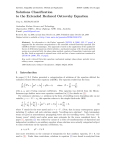 Symmetry, Integrability and Geometry: Methods and Applications SIGMA 4 (2008), 073, 19 pages Solutions Classif ication to the Extended Reduced Ostrovsky Equation Yury A. STEPANYANTS Australian Nuclear Science and Technology, Organisation PMB 1, Menai (Sydney), NSW, 2234, Australia E-mail: yuas50@gmail.com Received July 14, 2008, in final form October 13, 2008; Published online October 26, 2008 Original article is available at http://www.emis.de/journals/SIGMA/2008/073/ Abstract. An alternative to the Parkes’ approach [SIGMA 4 (2008), 053, 17 pages] is suggested for the solutions categorization to the extended reduced Ostrovsky equation (the exROE in Parkes’ terminology). The approach is based on the application of the qualitative theory of differential equations which includes a mechanical analogy with the point particle motion in a potential field, the phase plane method, analysis of homoclinic trajectories and the like. Such an approach is seemed more vivid and free of some restrictions contained in [SIGMA 4 (2008), 053, 17 pages]. Key words: reduced Ostrovsky equation; mechanical analogy; phase plane; periodic waves; solitary waves, compactons 2000 Mathematics Subject Classification: 35Q58; 35Q53; 35C05 1 Introduction In paper [1] E.J. Parkes presented a categorization of solutions of the equation dubbed the extended reduced Ostrovsky equation (exROE). The equation studied has the form ∂ 1 ∂ ∂ D2 u + pu2 + βu + qDu = 0, where D = +u (1) ∂x 2 ∂t ∂x with p, q, and β being constant coefficients. This equation was derived from the Hirota– Satsuma-type shallow water wave equation considered in [2] (for details see [1]). For stationary solutions, i.e. solutions in the form of travelling waves depending only on one variable χ = x − V t − x0 , this equation reduces to the simple third-order ODE: d d dw 1 2 dw w w + pw + (pV + β)w + qw = 0, (2) dχ dχ dχ 2 dχ where V stands for the wave speed and w = u − V . (Note, that in many contemporary papers including [1] authors call such solutions simply “travelling-wave solutions”. Such terminology seems not good as nonstationary propagating waves also are travelling waves. The term “stationary waves” widely used earlier seems more adequate for the waves considered here.) In paper [1], equation (2) was reduced by means of a series of transformations of dependent and independent variables to an auxiliary equation whose solutions were actually categorized subject to some restrictions on the equation coefficients, viz.: p + q 6= 0, qV − β 6= 0 (one more restriction on the constant of integration for that auxiliary equation, B = 0, was used in [1]). Under these restrictions, solutions to equation (2) were found in analytical form 2 Y.A. Stepanyants and corresponding wave profiles were illustrated graphically. Among solutions obtained there are both periodic and solitary type solutions including multivalued loop periodic waves and loop-solitons. Similar loop solutions to exROE and some other equations were earlier obtained by Ji-Bin Li [3] who came to the conclusion that loop solutions actually are compound solutions which consist of three different independent branches. These branches may be used in various combinations representing several types of stationary propagating singular waves (waves with infinite gradients). This conclusion completely coincides with the conclusion of paper [4] where a complete classification of stationary solutions of ROE was presented. ROE derived by L.A. Ostrovsky [5] in 1978 as a model for the description of long waves in a rotating ocean (see [4] and references therein) can be treated as a particular case of exROE with p = q and β = 0 (see [1]). Below an analysis of stationary solutions to equation (2) is presented by the direct method avoiding any redundant transformations of variables. The method used is based on the phase plane concept and analogy of the equation studied with the Newtonian equation for the point particle in a potential field. Such approach seems more vivid and free of aforementioned restrictions. This work can be considered also as complementary to paper [1] as the analysis presented may be helpful in the understanding of basic properties of stationary solutions of equation (2). 2 Mechanical analogy, potential function and phase-plane method Equation (2) can be integrated once resulting in d dw 1 w w + (p + q)w2 + (pV + β)w = C1 , dχ dχ 2 (3) where C1 is a constant of integration. By multiplying this equation by dw/dχ and integrating once again, the equation can be reduced to the form of energy conservation for a point particle of unit mass moving in the potential field P (w): 1 2 dw dχ 2 + P (w) = E, (4) where the effective “potential energy” as a function of “displacement” w is P (w) = C1 C2 p+q w− − 2, 6 w w (5) and C2 is another constant of integration. The constant E = −(pV + β)/2 plays a role of the total energy of the particle, i.e. the sum of the “kinetic energy”, K = (1/2)(dw/dχ)2 , and the “potential energy”, P (w). As follows from equation (4), real solutions can exist only for E ≥ P (w). Various cases of the potential function (5) are considered below and corresponding bounded solutions are constructed. Unbounded solutions are not considered in this paper as they are less interesting from the physical point of view; nevertheless, their qualitative behavior becomes clear from the general view of corresponding phase portraits. 3 Particular case: p + q = 0 Consider first a particular case when the coefficients in equation (1) are such that p + q = 0. Note, this is one of the cases which were omitted from the consideration in paper [1]. The Solutions Classification to the Extended Reduced Ostrovsky Equation 3 Figure 1. a) Potential function for the case p + q = 0, C2 = 0 and two values of C1 : C1 = 1 (solid lines), and C1 = −1 (dashed lines). Two dots illustrate possible motions of point particles in the potential field. 