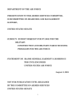 DEPARTMENT OF THE AIR FORCE PRESENTATION TO THE ARMED SERVICES COMMITTEE, SUBCOMMITTEE ON READINESS AND MANAGEMENT SUPPORT, UNITED STATES SENATE SUBJECT: BUDGET REQUEST FOR FY 2002 FOR THE MILITARY CONSTRUCTION AND MILITARY FAMILY HOUSING PROGRAMS FOR THE AIR FORCE STATEMENT OF: MAJOR GENERAL EARNEST O. ROBBINS II THE CIVIL ENGINEER UNITED STATES AIR FORCE August 2, 2001 NOT FOR PUBLICATION UNTIL RELEASED BY THE COMMITTEE ON ARMED SERVICES UNITED STATES SENATE 1 Introduction Mr. Chairman and members of the committee, good morning. I appreciate the opportunity to appear before you and present the Department of the Air Force Fiscal Year 2002 military construction program. Today, I will share with the committee our investment strategies for facilities, housing, utility systems, and environmental programs. Overview Our Total Force MILCON and Military Family Housing programs play a vital role supporting Air Force operational needs, work place productivity and Quality of Life. Admiral David Jeremiah (U.S. Navy, retired) acknowledged this fact in the recent Special Department of Defense report on Morale and Quality of Life. Two of the top four issues, improving the workplace environment and providing better housing, rely on the success of our MILCON and Military Family Housing programs. For several years reduced funding for our facilities has led to a steady deterioration in Air Force infrastructure. The good news is that our FY02 Total Force MILCON budget request is double what it was last year and stands at over $1.2 billion. With this FY02 budget and the investment levels projected through the Future Years Defense Plan, we will reduce our recapitalization rate from its present 250-plus years to about a 190year recapitalization rate, still far below our desired rate of recapitalization, but this is clearly a step in the right direction. However, even with additional MILCON funding in FY02, the Air 2 Force infrastructure challenges remain the same. We must continue to balance funding among the priorities of people, readiness, modernization, and infrastructure. Increases in the overall defense budget this year will help meet the most pressing Air Force needs. However, previous underfunding of military construction and operation and maintenance required us to develop “work-arounds,” which impacted the Air Force’s combat capability, operational efficiency, and quality of workplace environment. Although we continue to operate and support the world’s premier aerospace force, we cannot correct overnight the negative impact reduced funding has had on our infrastructure. For FY02, we are requesting a program of $2.7 billion for our total force MILCON and Military Family Housing. This request is comprised of $1.1 billion for traditional active MILCON, $1.4 billion for Military Family Housing, $149.1 million for Air National Guard traditional MILCON, $53.7 million for Air Force Reserve traditional MILCON. These Air Force programs were developed using a facility investment strategy with the following objectives: ?? Accommodate new missions ?? Invest in Quality of Life improvements ?? Continue environmental leadership ?? Sustain, Restore and Modernize our Infrastructure ?? Optimize use of public and private resources, and ?? Continue our demolition programs Mr. Chairman, the Air Force clearly could not maintain the quality of our facilities and the advantages they provide without the strong support 3 we have always received from this committee and for that we are most grateful. With this background, I would like to discuss our military construction budget request for FY02. Accommodate New Missions New weapon systems will provide the rapid, precise, global capability that enables our combat commanders to respond quickly to conflicts in support of national security objectives. Our FY02 new mission MILCON program consists of 32 projects, totaling $283 million. These new missions include important initiatives to improve Air Force operational capabilities. However, they and the infrastructure to support them, should be considered in light of on-going Quadrennial Defense Review (QDR) activities in the Department. These projects support a number of weapon system beddowns; two worthy of mention are the F-22 fighter, and the C-17 airlifter. The F-22 Raptor is the Air Force’s next generation air superiority fighter. The location for the F-22 flight-training program is Tyndall Air Force Base, Florida with Langley Air Force Base, Virginia serving as the first operational base. The FY02 MILCON includes two F-22 projects at Tyndall totaling $15 million and three F-22 projects at Langley totaling $39 million. The C-17 Globemaster III aircraft is replacing our fleet of C-141 Starlifters. The C-17 provides rapid global mobility by combining the C-141 air speed and long-range transport capabilities; the C-5 capability to carry outsized cargo, and the C-130 capability to land directly on short, forward-located airstrips. To support this program, our 4 request includes a $5 million facility at McChord Air Force Base, Washington, two Air National Guard projects for $22.2M at Jackson International Airport, Mississippi, and five projects for $36.5M at McGuire AFB, New Jersey. Other new mission requirements in FY02 include the C-130J at Little Rock Air Force Base, Arkansas; the Space Based Infrared Radar System (SBIRS) at Schriever Air Force Base, Colorado; and a Telescopic/Atmosphere Compensation Lab at Kirtland Air Force Base, New Mexico. Invest in Quality of Life The Air Force is committed to taking care of our people and their families. Quality of life initiatives acknowledge the sacrifices our airmen make in support of the nation and are pivotal to recruiting and retaining our best. When our members deploy, they want to know that their families are stable, safe and secure. Their welfare is a critical factor to our overall combat readiness, and our family housing program, dormitory program, and other quality of lif