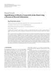 Hindawi Publishing Corporation Computational and Mathematical Methods in Medicine Volume 2012, Article ID 635103, 16 pages doi:10.1155/2012/635103 Research Article Quantification of Effective Connectivity in the Brain Using a Measure of Directed Information Ying Liu and Selin Aviyente Department of Electrical and Computer Engineering, Michigan State University, East Lansing, MI 48824, USA Correspondence should be addressed to Ying Liu, liuying5@egr.msu.edu Received 18 November 2011; Revised 20 February 2012; Accepted 14 March 2012 Academic Editor: Luca Faes Copyright © 2012 Y. Liu and S. Aviyente. This is an open access article distributed under the Creative Commons Attribution License, which permits unrestricted use, distribution, and reproduction in any medium, provided the original work is properly cited. Effective connectivity refers to the influence one neural system exerts on another and corresponds to the parameter of a model that tries to explain the observed dependencies. In this sense, effective connectivity corresponds to the intuitive notion of coupling or directed causal influence. Traditional measures to quantify the effective connectivity include model-based methods, such as dynamic causal modeling (DCM), Granger causality (GC), and information-theoretic methods. Directed information (DI) has been a recently proposed information-theoretic measure that captures the causality between two time series. Compared to traditional causality detection methods based on linear models, directed information is a model-free measure and can detect both linear and nonlinear causality relationships. However, the effectiveness of using DI for capturing the causality in different models and neurophysiological data has not been thoroughly illustrated to date. In addition, the advantage of DI compared to modelbased measures, especially those used to implement Granger causality, has not been fully investigated. In this paper, we address these issues by evaluating the performance of directed information on both simulated data sets and electroencephalogram (EEG) data to illustrate its effectiveness for quantifying the effective connectivity in the brain. 1. Introduction Neuroimaging technologies such as the electroencephalogram (EEG) make it possible to record brain activity with high temporal resolution and accuracy. However, current neuroimaging modalities display only local neural activity rather than large-scale interactions between different parts of the brain. Assessment of the large-scale interdependence between these recordings can provide a better understanding of the functioning of neural systems [1, 2]. Three kinds of brain connectivity are defined to describe such interactions between recordings: anatomical connectivity, functional connectivity, and effective connectivity [2]. Anatomical connectivity is the set of physical or structural connections linking neuronal units at a given time and can be obtained from measurements of the diffusion tensor [3, 4]. Functional connectivity captures the statistical dependence between scattered and often spatially remote neuronal units by measuring their correlations in either time or frequency domain. Effective connectivity describes how one neural system affects another [2, 4, 5], which can provide information about both the magnitude and the direction of the interaction. The main approaches used to quantify the effective connectivity between two time series are model-based measures and information-theoretic measures [6]. Granger-causalitybased methods and dynamic causal modeling [7] are two widely used model-based measures. Granger causality is a widely used measure to describe the causality between two time series. It defines a stochastic process X causing another process Y if the prediction of Y at the current time point, Yn , is improved when taking into account the past samples of X. This approach is appealing but gives rise to many questions on how to apply this definition to real data [8]. Granger causality has been mostly applied within a linear prediction framework using a multivariate autoregressive (MVAR) model yielding methods such as directed transfer function (DTF), partial directed coherence (PDC), and directed partial correlation [9–12]. For example, Hesse et al. applied time-varying Granger causality to EEG data and 2 Computational and Mathematical Methods in Medicine found that conflict situation generates directional interactions from posterior to anterior cortical sites [10]. Kamiński et al. applied DTF to EEG recordings of human brain during stage 2 sleep and located the main source of causal influence [11]. Schelter et al. employed PDC to EEG recordings from a patient suffering from essential tremor [13]. The extensions of Granger-causality-based methods, such as kernel Granger causality, generalized PDC (gPDC), and extended PDC (ePDC), have also found numerous applications in neuroscience [14–16]. However, Granger causality-based methods, especially those developed from MVAR models, are limited to capturing linear relations or require a priori knowledge about the underlying signal models [17]. These approaches may be misleading when applied to signals that are known to have nonlinear dependencies, such as EEG data [18]. DCM, on the other hand, can quantify nonlinear interactions by assuming a bilinear state space model. However, DCM requires a priori knowledge about the input to the system [7, 19] and is limited to a network with small size [4]. Thus, a model-free measure detecting both linear and nonlinear relationships is desired. Information theoretic tools [20–22], such as transfer entropy [20], address the issue of model dependency and have found numerous applications in neuroscience [17, 23, 24]. “Transfer entropy” (TE) proposed by Schreiber computes causality as the deviation of the observed data from the generalized Markov condition and is defined as [20] TE(X −→ Y) = p yn+1 yn−l+1:n xn−m+1:n yn+
