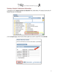 Viewing a Student’s Admissions Information 1. Navigate to the “Student Services Ctr (Student)” link. (Main Menu à Campus Community à Student Services Ctr (Student)). 2. On the Search page, enter the ID of the student you wish to search for in the ID field. 1 3. On the main page of the Student Services Center, you will see a clone of what a student sees when he or she accesses the Student Center. You can use this page to access a student’s admissions information. Click on the “Admissions” tab at the top of the page. 2 4. On the Admissions page, you can view information entered on the student’s application, such as Program and Plan, Housing Interest, Financial Aid Interest, and the applicant’s progression through PeopleSoft as a prospect, applicant, and student. 3