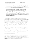 IGOV Doctoral Student Symposium January 20, 2005 Paulette Regan, PhD. Candidate A Transformative Framework for Decolonizing Canada: A Non-Indigenous Approach This evening I will talk about the impetus behind developing this framework to explore the role and responsibility of non-indigenous people – the Canadian public - in decolonization. I begin by telling you about a conference dialogue, and the writings of two indigenous thinkers and activists. ______________________________________________ At an academic conference on democratic constitutionalism, Anishinabek scholar John Borrows told a story about family, rather than presenting an academic paper, as his contribution to a panel discussing the issue of consent as it relates to Indigenous peoples. Afterwards, a non-indigenous scholar asked if he would link his story to the theme of his presentation, described on the conference program as “Human Agency, Treaty and Political Theories of Consent.” This request was challenged by a young indigenous scholar who asked non-indigenous conference participants to think about it from her cultural perspective. For her, the story did not need explaining. Rather it was up to the listener to reflect on its meaning and relevance for his/her own life, thereby learning what lessons the story and the storyteller offer. She reminded the audience that at the conference dinner held the night before, we had talked about whether or not it is possible to have an intercultural dialogue. One way of doing this she said, is to engage the story and the storyteller respectfully. IGOV Doctoral Student Symposium Paulette Regan, PhD Candidate January 20, 2005 Her comments led to an intense dialogue about the differences between indigenous and non-indigenous ways of listening and learning and about the pervasive nature of colonialism. As the discussion continued, it seemed to me that the reluctance or inability of the non-indigenous audience to ‘hear’ John Borrows’ story revealed a deeper chasm, one that I have seen before. It is the gap between what we (as non-indigenous people) think we are doing- which is engaging with good intentions in an intercultural dialogue, and how Indigenous peoples experience that same event as a manifestation of deeply ingrained institutional colonialism and attitudes. In these situations what we are really doing, whether unconsciously or not, is asking Indigenous peoples to fit within our cultural paradigm- to have the intercultural dialogue on our terms, not theirs. And when this is pointed out to us we get uncomfortable. Another non-indigenous conference participant probably spoke for many in the audience when he said that “the discourse about colonialism was disquieting” for him as a non-indigenous person. And he posed the provocative question, “can we only engage in dialogue as enemies?” –giving voice to a sense of frustration and unease that characterizes many such exchanges between the indigenous and non-indigenous in a variety of venues. Nor could we take comfort in the closing remarks made by the final conference panel. James Tully said that John Borrows’ story is a way of saying that “we need to learn to listen differently,” and that “we need to shake free from the sediment of colonial history to listen to why First Nations resist.” 2 IGOV Doctoral Student Symposium Paulette Regan, PhD Candidate January 20, 2005 Taiaiake Alfred summed it up by saying that “there needs to be struggle in order to lay out a path to co-existence, and that the process of being uncomfortable is essential for non-indigenous people to move from being enemy to adversary to ally.” Around the same time as the conference, I was also reading two indigenous works –the first written in 1974 by George Manuel, Secwepemc chief from the interior of British Columbia, indigenous activist and political visionary whose work on behalf of Indigenous peoples spanned the globe. The second, an excerpt from Taiaiake Alfred’s forthcoming book, Wasase. George Manuel said: When we come to a new fork in an old road we continue to follow the route with which we are familiar, even though wholly different, even better avenues might open up before us. The failure to heed (the) plea for a new approach to IndianEuropean relations is a failure of imagination. The greatest barrier to recognition of aboriginal rights does not lie with the courts, the law, or even the present administration. Such recognition necessitates the re-evaluation of assumptions, both about Canada and its history and about Indian people and our culture-…Real recognition of our presence and humanity would require a genuine reconsideration of so many people’s role in North American society that it would amount to a genuine leap of imagination. It struck me that thirty-one years later, most ordinary Canadians have yet to take this ‘genuine leap of imagination’ to question more deeply our assumptions- our myths- about Canada’s past, or to understand how they influence our relationship with Indigenous peoples today with regard to historical conflicts, reconciliation and peacemaking. George Manuel identified the root of the problem-our persistence in clinging to the old colonial myths that keep us in a state of denial. Myths that inhibit our ability to imagine something different. But he also saw a way forward – a new path that would lead to a more peaceful co-existence between us. 3 IGOV Doctoral Student Symposium Paulette Regan, PhD Candidate January 20, 2005 A path that should we choose it, requires us to think more deeply about what it would mean to fully recognize and respect the ‘presence and humanity’ of the Indigenous peoples whose lands we now share. In 1974, Manuel was a rare combination of visionary and grass roots pragmatist who saw clearly that the work of decolonization cannot rest on the backs of Indigenous peoples alone. He knew that Canadians have a different, yet critical role to play on this front 