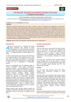 Int. J. Pharm. Sci. Rev. Res., 32(2), May – June 2015; Article No. 06, Pages: 34-37 ISSN 0976 – 044X Research Article Total Phenolics, Flavonoids and Antioxidant Evaluation in the Leaves of Argyreia nervosa Burm. * Abhay Prakash Mishra , Sarla Saklani, Subhash Chandra, Priyanka Tiwari Dept of Pharmaceutical Chemistry, School of Science, H.N.B. Garhwal (A Central) University, Srinagar Garhwal, Uttarakhand, India. *Corresponding author’s E-mail: abhaypharmachemhnbgu@gmail.com Accepted on: 02-04-2015; Finalized on: 31-05-2015. ABSTRACT Argyreia nervosa Burm (Convolvulaceae), also known as elephant creeper has hepatoprotective, hypoglycemic, anticonvulsant, aphrodisiac, antioxidant, antiviral, nematicidal, antimicrobial, immunomodulatory, analgesic and anti-inflammatory activity. In the present work we evaluate the qualitative, quantitative and antioxidant potential of the water extract of Argyreia nervosa leaf with physical constants and extractive values. Preliminary phytochemical screening on the leaves was also studied. The determination of these characters will help further researches in their phytochemical as well as pharmacological analyses of this species. Total phenolics, flavonoids contents and antioxidant capacity were evaluated according to standard procedures. The results of this study showed that the water extract of A. nervosa leaf has significant amount of total phenolic (110.8 ± 0.19 mg GAE/g) and flavonoid contents (76.60 ± 0.36 mg RE/g) whereas total antioxidant capacity was found 1.16 ± 0.11 mg GAE/g when compared with gallic acid as standard. Hence, it is concluded that the A. nervosa leaf extract contain remarkable amount of total phenolic and flavonoid content can be used as a powerful herbal antioxidant. Keywords: Argyreia nervosa, Convolvulaceae, Total antioxidant capacity, phytochemicals. INTRODUCTION MATERIALS AND METHODS A rgyreia nervosa Burm is a climbing shrub with woody tomentose stem belongs to family Convolvulaceae. It is commonly known as elephant creeper in English and samundar-ka-pat, Samudra sok in India.1,2 It is widely distributed in tropical regions of the world. In India it is found mainly in East slopes of the West Ghats at an altitude of 900 m3 often cultivated native in India from Assam and Bengal to Karnataka.4,5 It is generally growing in slightly moist localities like river banks, edges of lakes etc. and as undergrowth in semidecidous 6 forests. Leaves are traditionally used by Rajasthani tribes to prevent conception.7 Seeds possess hypotension, 8 9 spasmolytic activity , and anti-inflammatory activity. Roots are used as an appetiser, brain-tonic, cardiotonic; expectorant, anti–inflammatory; in anaemia, aphrodisiac, cerebral disorders, diabetes, obesity, syphilis, 10 tuberculosis, ulcers and wounds. Chemical analysis revealed the presence of triterpenoids, flavanoids, 11 steroids and lipids. The leaves of A. nervosa contain anthocyanins, β-sitosterol, quercetin, kampferol and its glycosides kampferol 3-O-L rhamnopyranoside, 7, 8, 3’, 4’, 5’-pentahydroxy flavone, 5-O-α-D-rhamnopyranoside, 5O-β-D-glucopyranoside.10 Seeds of Argyreia nervosa contain Argyreioside (24R-ergost-5-en-11-oxo-3 beta-ol alpha –D glucopyranoside xylose).12 Present research work has been made to study the qualitative, quantitative phytochemical parameters and antioxidant activity of the leaves of Argyreia nervosa Burm. Plant Material The plant material was collected from the Uttar Pradesh, India in June 2013. The plant was identified and authenticated by Dr. J. K. Tiwari, Dept of Botany, H.N.B. Garhwal (A Central) University, Srinagar Garhwal, Uttarakhand; India. A herbarium was preserved in the department of Pharmaceutical Chemistry for further reference. The leaves were separated, dried, coarsely powdered passed through sieve no 40 and stored in a closed container for further use. All chemicals and reagents used were of analytical grade obtained from S.D. Fine Chemicals Ltd., Mumbai. Methods The ash values and extractive values with various reagents were determined according to Indian Pharmacopoeia.13 Extractive values were performed with various solvents like petroleum ether, chloroform, ethyl acetate, alcohol and water. Preliminary phytochemical tests were carried out for ethanol, aqueous and powder with water type of extracts to identify the presence of various chemical constituents like alkaloids, phytosterols, carbohydrates, terpenoids, saponins, flavonoids, phenolic compounds etc. using specific reagents through standard procedures.14,15 Extraction Defined quantities of plant material were collected; shade dried at room temperature, pulverized and extracted International Journal of Pharmaceutical Sciences Review and Research Available online at www.globalresearchonline.net © Copyright protected. Unauthorised republication, reproduction, distribution, dissemination and copying of this document in whole or in part is strictly prohibited. 34 © Copyright pro Int. J. Pharm. Sci. Rev. Res., 32(2), May – June 2015; Article No. 06, Pages: 34-37 different solvents like petroleum ether, chloroform, ethyl acetate, alcohol and water in a Soxhlet extractor. All extracts was concentrated and dried using rotary flash evaporator. It was kept in desiccators until further used. Table 1: Determination of Ash Values of Argyreia nervosa Burm. S. No. Ash type Percentage of Ash 1. Total ash 5.2% w/w 2. Acid insoluble ash 2.0% w/w 3. Water soluble ash 4.12% w/w Total Phenolic Content (TPC) The concentration of total phenolic compounds of the water extract was determined by the Folin-Ciocalteu method16 using the extracts at a dilution of 1:100 in water. The absorbance of the samples was measured at 765 nm. The results are expressed as mg of gallic acid equivalent (GAE)/g of each sample. Table 2: Determination of Extractive Values of Argyreia nervosa Burm. S. No. 1. Total Flavonoid Content (TFC) The total flavonoid contents of the A. nervosa (water extract) was meas