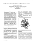 Decision support system for the evolutionary classification of protein structures" Liisa Holmand Chris Sander From: ISMB-97 Proceedings. Copyright © 1997, AAAI (www.aaai.org). All rights reserved. EMBL-EBI Wellcome Trust Genome Campus, CB 10 I SD Cambridge, U.K. surname @embl-ebi.ac.uk Abstract The structures of nearly a thousand sequence-unique proteins represent only 300 different 3D shapes, ls structural resemblancebetweenproteins with little sequence similarity the result of physical convergenceto favourable folding patterns, or does it reflect a memoryof common evolutionary history? Separating these two processes is important for organizing genomedata in terms of protein families and for theoretical approachesto protein structure prediction by fold recognition techniques. Achieving separation requires a combinationof structure, sequenceand functional analysis of proteins. For this purpose, we are developing a decision support system that scans heterogeneous protein sequence and structure related databases, and collects or calculates characters indicative of commonfunctional constraints. The criteria include sequence homology, analysis of 3D clusters of conserved residues, conservation of active sites, and keywordanalysis of biological function. Even without extensive refinement, application of a combinationof these criteria to a test set representing all currently knownprotein structures yields 87%coverage with 7 % false positives, comparedto 53 % coverage by only 1D sequence criteria. Thus, the semiautomatic prototype system significantly enhances the efficiency of unifying families of functionally related proteins in spite of long evolutionarydistances. amino acid substitutions, making detection of homology difficult at long ew)lutionary distances. Fortunately, comparison of 3D structures has led to the discovery of manydistant evolutionary relationships that are not easily captured even by the most sophisticated ID models of sequence evolution [2-3]. We have previously developed the Dali/FSSP structure alignment database and fold classification to automatically monitor where new structures map in fold space in terms of a geometrical similarity measure [4]. Introduction Taxonomic classification has long traditions in biology. Classic work by Linnd, Darwin, Wallace organized species of plants and animals in a hierarchy based on common morphological characters. Access to the genotype has allowed molecular phylogenies to be constructed not only of species of organisms but also within and between protein families. The concept of evolution in which gradual changes to protein phenotype (structure and function) result from amino acid replacements, has made searching databases for significant sequence similarities a standard technique of functional characterization of newly determined genes. In constructing moleular phylogenies, the use of sequence information has two limitations. First, the accuracy of predicted biological function is different between orthologous (e.g., myoglobins in the muscle of whales and humans) and paralogous genes (e.g., myoglobin and leghemobin in the roots of plants). Second, protein folds appear to be compatible with a very wide range of Figure 1. Functional cluster in 3D. residues are conserved and Adenosine deaminase, phosphotriesterase and urease share a conserved active site with four invariant histidines and an aspartic acid supporting metal binding and a common biochemical mechanism [5]. The conserved residues were identified by structural alignment expanded by sequence homologs. Here, tire clustering of the invariant residues (dark spaeefilling representation) shown mapped onto tire structure of adenosine deaminase [18]. A purine nucleoside ligand is shown in light spacefilling representation. A number of peripheral residues are conserved between only two proteins of the triplet (ball-and-stick ret~resentation ). Copyright~) 1997, AmericanA~oclationfor Artificial Intelhgence (w~.aaai.orgl. All rights reserved. ~4o ISMB-97 Figure 1 illustrates one case of remote evolutionary relatives discovered by structure comparison. Urease, phosphotriesterase and adenosine deaminasenot only have a conserved structural core but support a conserved active site constrained to perform metal-assisted hydrolysis of amide bonds. The active site is madeup of four histidines and an aspartie acid; these are the only residues whichare invariantly conserved in all three families. Althoughthe active site residues are widely dispersed along the polypeptide chain, they cluster together in the folded structure. They are invariantly conserved between the respective protein families, defining a sharp sequence signature for the superfamily that led to the evolutionary unification of a large set of distinct amidohydrolase families [5]. Here, we examine computational criteria for verifying hypotheses of functional homologybetween proteins with very low sequence similarity. Computationally, we work in a decision support system framework, using intelligent agents to access heterogeneous databases (Figure 2). calibrate the selectivity and sensitivity of quantitative criteria related to biological function against a balanced, comprehensive test set. Wediscuss the potential of a composite criterion as the basis for an automatic expert system, assisting or replacing humanexperts [6-7], that tackles the problem of evolutionary classification of protein structures based on more than mere sequence and structure criteria. Test set The notion of a biologically significant relationship betweenproteins is intuitive and therefore rather imprecise. In this work, we formulate a numberof quantitative criteria and test howwell they correspond to humanintuition. The test set was composedof 458 evolutionarily unrelated and 482 related pairs (classified manually by L.H.). The test set is available electronically over the Internet at the URL http://www2.embl-ebi.ac.uk/dali/testset. Our basic assumptionin cons