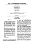 KAoS:A KnowledgeableAgent-oriented System From: AAAI Technical Report SS-94-03. Compilation copyright © 1994, AAAI (www.aaai.org). All rights reserved. Nicholas J. George Robert J. Jasper Monica Rosman LaFever Katrina M. Morrison Daniel B. Rosenthal Stephen R. Tockey John D.:Woolley Seattle University Jeffrey M. Bradshaw EuropeanInstitute of Cognitive Sciences and Engineering (EURISCO) and The Fred Hutchinson Cancer Research Center EuropeanInstitute Guy A. Boy of Cognitive Sciences and Engineering (EURISCO) Peter D. Holm The Boeing Company Abstract crease in the comingdecades[Billings, 1991], [Boy and Hollnagel, 1993]. The complexity, real-time constraints, and distributed nature of suchtasks require that software not merely respondto requests for informationbut intelligently anticipate, adapt, and actively seek waysto support users. Not only must these systems assist in coordinating tasks amonghumans, they must also help managecooperation amongdistributed programs. In this paper, wediscuss an effort to develop and evaluate a generic agent framework.A major goal of this workwasto separate genetic agent characteristics from domainspecific characteristics. Totest out our ideas, we implementeda demonstration prototype called KAoS(Knowledgeable Agent-oriented System) in SmaUtalk-80on the Macintosh, extending the Smalltalk primitives in C. Wedevelopedthe original system to support local and distributed interapplication facilities using Apple Events, Program-to-Program Communication (PPC), Dynamic Data Exchange (DDE), and TCP/IP protocols. Weare currently extending the architecture with: a more robust object interoperability foundation (CommonObject Request Broker Architecture or CORBA), agent authoring and run-time interfaces, and learning and adaptive mechanisms. 1 Introduction Based on experience and recent studies, we expect that automation of dynamic, real-time environmentssuch as air-traffic control will dramaticallyin24 [Brodie, 1989] has discussed the need for intelligent interoperability in such environments.He defines the term to meanintelligent cooperation amongsystems to optimally achieve specified goals. A high level of interoperability requires knowledgeof the capabilities of each system, so that task planning, resource allocation, execution, monitoring, and, possibly, intervention between the systemscan take place. Ideally, an intelligent agent wouldfunction as a global resource planner. While a single agent wouldbe workable for small networks of systems, such a schemewouldquickly becomeimpractical as the numberof cooperating systems grows. Theactivity of the global resource planner wouldbecomea bottleneck for the (otherwise distributed) system. A further step toward intelligent interoperability wouldbe to embedone or more agents within each cooperating system. Applications would request resources through these agents, thus providing a level of encapsulation at the planning level, analogousto the encapsulation providedin manyexisting applications at the level of data exchangeprotocols. Anequally important contribution of research on agents maynot have to do with any direct technical advantagethey afford, but rather with the fact that taking this perspectivehelps us think aboutour software differently. Just as an object-oriented representation moreeasily and clearly expresses some algorithms than a procedural representation [Kaehler and Patterson, 1986], so it sometimesmaybe easier to use agents rather than objects. The agent metaphorencouragesthe user to take an intentional stance [Dennett, 1987], [Sharp, 1993]in predicting the behavior of the system. This hopefully allows the user to better cope with the increasing complexity and dynamicnature of software. In this paper, we discuss an effort to develop and evaluate a generic agent framework. The frameworkpromotes moreefficient and coherent communication amongpeople and their programs. After a general overview of the project and architecture (sections 2.1-2.3), we discuss the characteristics that are common to all KAoSagents (section 2.4). response to newapplication requirements, we are extendingthe architecture with a morerobust object interoperability foundation, agent authoring and run-time interfaces, and learning and adaptive mechanisms(section 3). 2 KAoSOverviewand Architecture KAoS(Knowledgeable Agent-oriented System) part of a multiyear project to developa distributed environment for software agents. Specifically, KAoSprovides an infrastructure for programming agents that includes: several network communications tools, distributed messaging,an agent communications protocol, and generic agent class hierarchy, shell, and controls. Webuilt KAoSusing Smalltalk-80 v. 4.1 and C on the Macintosh. Weaugmented the underlying Smalltalk interpreter to performdistributed agentto-application communication.Workon a portable version that will run on Unix and Microsoft Windowsplatforms as well is currently underway(see section 3.1). Weinitially used KAoSto build a demonstrationof agent-oriented programmingand to simulate various agent activities. Weare nowenhancingit for use in two applications: 25 ¯ real-time collaboration, information management, and decision support for the treatment of bone-marrow cancer patients [Bradshaw et al., 1993a]. ¯ adaptive mobile performance support of aircraft maintenancepersonnel [Bradshawet al., 1993c]. Theseapplications have provided both a rich source of requirements for the KAoSarchitecture, as well as a numberof interesting newproblemsto solve. Figure 1 identifies importantelementsof the original KAoSarchitecture. Wediscuss each of them in turn. Domain-specific Agent Layer Generic Agent Layer Agent Message Layer Message Server NetMANIAC AE [ vPc [ DDE I TCP/IP Figure 1. KAoSArchitecture Elements. 2.1 NetMANIAC The Network Manager for Interapplication Communication (NetMANIAC)provides the foundation for the KAoS architecture. It provides local and distributed interapplication communicationfaciliti