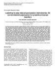 Educational Research (ISSN: 2141-5161) Vol. 1(9) pp. 1481-1487 September 2011 Available online http://www.interesjournals.org/ER Copyright ©2010 International Research Journals Full Length Research Paper Learning to play natural percussion instruments: An environmental expression for preschool trainee teachers Siew Nyet Moi @ Sopiah Abdullah School of Education and Social Development, University of Malaysia Sabah, Bag Locked No. 2073, 88999, Kota Kinabalu, Sabah, Malaysia. Accepted 08 September, 2011 As future preschool educators, trainee teachers need to experience how to connect their children to their natural environment and instill environmental consciousness. This study qualitatively explored the trainee teachers’ expressed particular concerns or special interest for the natural environment after participating in the natural percussion instrument-making activities and the ideas of how trainee teachers would incorporate this activity into their future classroom. The sample for this study comprised of 30 preschool trainee teachers. Information was collected through trainee teachers’ written reflections, video-recorded observations and written song for a percussion activity. With some natural materials found in the campus compound such as small pieces of wood, sticks, stones, dry branches, small branches, and bamboo, trainee teachers were able to create percussion instrument and sing an environmental song. The findings showed that engaging trainees in percussion activities using natural materials enables him/her to develop a stronger sense of responsibility and stewardship towards taking care of their environment. Trainees also developed ideas of how children should interact with nature and learn through their senses so that they are given the appropriate basis for exploring and learning to appreciate and love nature. The study provided ideas that could help preschool trainee teachers in enhancing the development of children’s environmental consciousness in future classroom. Key words: Percussion instrument-making activities, environmental consciousness, preschool trainee teacher, environmental song INTRODUCTION In line with the Malaysian National Education Policy, Environmental Education (EE) is introduced across the curriculum in both primary and secondary schools. Students are introduced to environmental issues and protection through core subjects such as science, local studies, geography and English/Malay language. Various teaching and learning strategies have been developed to enhance environmental awareness and internalise values on the importance of environmental protection. In Teacher Training Institutes, the trainee teachers are exposed to the importance of the environment protection and how to instil environmental awareness through EE *Corresponding author E-mail: snyetmoi@yahoo.com. Fax: +6088-320268. Tel: +6088-320000 ext 2532 across the curriculum. Though environmental education is infused into the school curriculum, it is unfortunate that its importance is not stressed in the field of early childhood education and thus children do not really see the real connection to their lives and the world beyond the classroom (Lim, 2003). A reason was that many early childhood educators would view discussions on environment problems and issues as depressing and fearful, and therefore inappropriate for young children. Another reason was that environment problems and protection are too heavy to be ‘dumped’ on young children. While these perceptions might be pervasive in early childhood education, they were by no means shared by everyone working in the field. Nevertheless, early childhood educators should bear in mind that they play an important role to educate and create awareness on environmental appreciation and 1482 Educ. Res. protection to the children. Educating children is the key to ensure lasting environmental conservation. As such, it is important to think of possible ways of introducing the topic in early childhood education programmes that are interesting and suitable for children. Wells and Lekies (2006) points out the importance of direct experiences in nature to the development of positive attitudes toward the environment, which translate into responsible behavior toward the environment. Children learn through their senses such as sight, sound, touch, taste, and smell and thus form an appropriate basis for exploring and learning to appreciate and love nature. As suggested by Didonet (2008), children are very sensitive to, interested in and curious about the elements of nature such as animals, plants, flowers, water, the land, wind, etc. This means that the local environment can offer unlimited direct experiences for children to explore and find out for themselves how nature works. The key to appreciate the natural environment is having fun in it and simply being outdoor. As such, early childhood education, from its early beginning, should include in the programme exploratory activities with natural elements such as plants, flowers, seeds, soil and stones. This is the basis on which to connect children to nature and to nurture an appreciation of nature in them. According to National Environmental Education Advisory Council, one of the greatest implications of the lack of connection to the environment is the lack of knowledge and desire to protect it as noted as follows: "Many of today's environmental challenges are complex and intractable, and they cannot be solved by government regulations alone. Addressing these issues will require a citizenry that is informed and environmentally literate and willing to translate its knowledge into action" (National Environmental Education Advisory Council, 2005, p. 9) Therefore, educators should not only be equipped with knowledge to teach for their students, but they also need some knowledge to teach for the earth. If the next generation is desired to respect nature and care for the earth, it is important to include now, in 