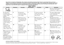 Dear Parents of students in Kindergarten: May is Speech and Hearing Awareness Month. Here are some ideas that you and your children can do during the month of May to help develop better communication skills. On the calendar below, Saturday and Sunday activities promote language and literacy development. Tuesday and Thursday activities promote hearing and listening skills. Every student has a voice! From the Speech-Language, Hearing and Vision Department.