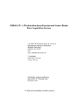 MIDAS-W: A Workstation-based Incoherent Scatter Radar Data Acquisition System J. M. Holt1, P. J Erickson and A. M. Gorczyca Massachusetts Institute of Technology Haystack Observatory Westford, MA 01886 USA email: jmh@haystack.mit.edu T. Grydeland University of Tromsø Tromsø, Norway Submitted to Annales Geophysicae Special EISCAT Workshop issue December, 1999 1 To whom all correspondence should be directed ABSTRACT The Millstone Hill Incoherent Scatter Data Acquisition System (MIDAS) is based on an abstract model of an incoherent scatter radar. This model is implemented in a hierarchical software system, which serves to isolate hardware and low-level software implementation details from higher levels of the system. Inherent in this is the idea that implementation details can easily be changed in response to technological advances. MIDAS is an evolutionary system, and the MIDAS hardware has, in fact, evolved while the basic software model has remained unchanged. From the earliest days of MIDAS, it was realized that some functions implemented in specialized hardware might eventually be implemented by software in a general-purpose computer. MIDAS-W is the realization of this concept. The core component of MIDAS-W is a Sun Microsystems UltraSparc 10 workstation equipped with an Ultrarad 1280 PCI bus analog to digital (A/D) converter board. In the current implementation, a 2.25 MHz intermediate frequency (IF) is bandpass sampled at 1ms intervals and these samples are multicast over a high-speed Ethernet which serves as a raw data bus. A second workstation receives the samples, converts them to filtered, decimated, complex baseband samples and computes the lag-profile matrix of the decimated samples. Overall performance is approximately ten times better than the previous MIDAS system, which utilizes a custom digital filtering module and array processor based correlator. A major advantage of MIDAS-W is its flexibility. A portable, single-workstation data acquisition system can be implemented by moving the software receiver and correlator programs to the workstation with the A/D converter. When the data samples are multicast, additional data processing systems, for example for raw data recording, can be implemented simply by adding another workstation with suitable software to the high-speed network. Testing of new data processing software is also greatly simplified, because a workstation with the new software can be added to the network without impacting the production system. MIDAS-W has been operated in parallel with the existing MIDAS-1 system to verify that incoherent scatter measurements by the two systems agree. MIDAS-W has also been used in a high-bandwidth mode to collect data on the November, 1999 Leonid meteor shower. 2 1. Introduction The Millstone Incoherent Scatter Data Acquisition System (MIDAS) is based on an abstract model of a general incoherent scatter radar. This model is implemented in a hierarchal software system which serves both to isolate different levels of the software from each other, and to hide hardware implementation details from higher levels of the system. Inherent in this is the idea that portions of the software and hardware can easily be changed in response to technological advances, and the MIDAS software and hardware has, in fact, evolved while the basic software model has remained unchanged. MIDAS-1, the production system at Millstone, has undergone numerous changes since it became operational in 1992, and MIDAS-C, which was built for bistatic observations using the Algonquin Observatory antenna in Canada, included further significant upgrades. However, the digital signal processing sections of MIDAS-1 and MIDAS-C, which compute lag profiles (Lehtinen, 1986, Holt et al., 1992) from digitized samples, have remained largely unchanged. The received incoherent scatter signal is converted to a low intermediate frequency (IF), which is two or four times the final complex sampling rate. This low IF is digitized by a custom analog to digital (A/D) module, and then filtered and converted to baseband complex samples by a custom DSP module. The only major difference between MIDAS-1 and MIDAS-C is that MIDAS-C uses a newer, faster array processor. From the beginning, it was realized that many MIDAS signal processing functions could eventually be implemented in software. MIDAS-W is the realization of this concept. The digital processing “section” of MIDAS-W consists of a commercial A/D board in a Unix Workstation, along with several additional workstations which communicate with each other over a dedicated highspeed local area network (LAN). The A/D board samples an IF at a fixed rate, and these samples are retransmitted in digital form on the LAN. With appropriate software, any computer on the network becomes a receiver. All functions handled by DSP hardware in MIDAS-1, such as filtering, decimation and correlation are carried out in software on one or more of the workstations. Additional functions, such as storing or displaying the raw samples, can also be easily implemented in software. Digital receivers which sample an intermediate frequency and process this signal in programmable digital hardware are now very common. For example, this technique is used in cellular phones where costly and bulky analog hardware must be minimized, and where multiple standards (for example, TDMA, GSM and CDMA) favor systems which can be adapted to different standards through software changes. MIDAS-W differs from most digital receivers in two respects. First, all processing is carried out in general-purpose computers rather than specialized digital signal processing (DSP) hardware. Second, the digitized signal is rebroadcast on a LAN for processing by as many computers as needed by a particular application. This provides a high degree of flexibility, which is ideally suited to a research environment such as an incoherent scatter radar. Unit engineering costs, which are very high f
