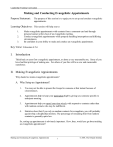 Leadership Training Curriculum Making and Conducting Evangelistic Appointments Purpose Statement: The purpose of this session is to equip you to set up and conduct evangelistic appointments. Learning Objectives: This session will help you to: 1. Make evangelistic appointments with contacts from a comment card and through personal contact at the close of an evangelistic meeting. Conduct evangelistic appointments while properly handling interruptions and differing circumstances. Be confident in your ability to make and conduct an evangelistic appointment. 2. 3. Key Verse: Colossians 4:5-6 I. Introduction Think back on your first evangelistic appointment, or about a very memorable one. Some of you have had that privilege of making one. For others of you this will be a new and memorable experience. II. Making Evangelistic Appointments Why should we make evangelistic appointments? A. Why Setup an Appointment? 1. You may not be able to present the Gospel to someone at that instant because of circumstances. 2. Appointments help to keep your motivation high by giving you someone specific to anticipate meeting. 3. Appointments help you spend your time wisely with responsive contacts rather than with random contacts who may be indifferent. 4. Statistics show that if you rely on random contacts for evangelism, you will probably not develop a discipleship ministry. The percentage of remaining fruit from random contacts is generally quite low. So, setting up appointments is obviously important. How, then, would you go about making an evangelistic appointment? Making and Conducting Evangelistic Appointments 1 © 2003, The Orlando Institute Leadership Training Curriculum B. Setting Up an Appointment 1. Explain to the person briefly why you want to meet and what you are going to talk about. 2. Decide together on a convenient time and meeting place. 3. Repeat the time and place of the appointment to be sure that there is no misunderstanding. 4. Suggest that the person write down the time and place of the meeting. 5. Communicate anticipation regarding the appointment. 6, Call the day before to "make sure we're still on for tomorrow." Read the first two demonstrations that are in the back before proceeding to the next section. They will give you a good idea of how to set up an evangelistic meeting. C. A Missed Appointment What do you think we should do when our contact misses an appointment? 1. Call them that night to find out what happened. Ex: "Hi, this is (name) with (name of church or group). How are you doing?...I thought we were supposed to meet today at 10 am outside of the Bookstore. I'm sorry I missed you..." 2. If you sense that maybe they are just not interested, help them to feel free to say "No." Otherwise, you may set up another appointment to meet with them, and it will be another "No-show" and a waste of your valuable time. Ex: "I don't want you to feel like you must meet with me. If you are not interested, feel free to let me know. Otherwise, if you would really like to meet with me to hear about how you can know God personally, we could set up another time." Wait for response, and if interested, set up another time and place. Even when you say this, be positive. As you know, this is the best thing for them. 3. Pray. It's a spiritual battle. Pray for God to do what only God can do (John 15:5; 6:44; I Corinthians 3:6). We just looked at how to set up an appointment, now let’s take a few minutes and look at what we should do on one. Making and Conducting Evangelistic Appointments 2 © 2003, The Orlando Institute Leadership Training Curriculum III. Conducting Evangelistic Appointments Think back on the time when someone first shared the gospel with you, what were some of the things they did right? Wrong? The following is a list of do’s and don’ts for conducting an evangelistic appointment. Do’s - Don’ts Be Personable Respect their time constraints Seek to be clear, ask questions Be honest Pay attention to the environment, share in a private, quiet place - Be impersonable Ignore their time constraints Embarrass them Make your goal to get through the booklet Focus so much on the Gospel that you miss what’s going on around you Summary: A. Be Personable at the beginning, focus on them, not you B. Respond positively to interruptions, suggest alternatives C. Suggest a safe place to talk D. Move through the Gospel, don’t become sidetracked E. Close with opportunity to talk more IV. Handling Distractions During an Evangelistic Appointment There are three common distractions that one runs into during an evangelistic appointment: people interruptions, environmental noise and internal distractions. Let’s talk for a few moments about how to handle each of these A. People Interruptions 1. 2. 3. 4. Try to find a place that minimizes people interruptions Ask the person if they would like to join in. Reschedule the time if the interruption is critical or the person interrupting won’t leave. Chat for a few moments and try to continue or find another place. B. Environmental Noise This is anything, other than a person, that distracts from an external source. It can be music, a bee buzzing around you, a beautiful sunset, people walking by, a painting on the wall, the aroma from a local sewer, anything in the environment that distracts the person’s attention. 1. 2. Move Sit so neither of you can see the "noise" Making and Conducting Evangelistic Appointments 3 © 2003, The Orlando Institute Leadership Training Curriculum C. Internal Distractions This is anything either of the persons have internally that they bring to the appointment. It could be fear, anger, worry, sorrow, etc. 1. 2. If you come with any of these, take a few minutes and give them to the Lord If the distractions come with them, gently ask them what is wrong. If need be, talk about it and try to help them with it; as appropriate, move them to the gospel as a solution. V. Application A. Role Play with your mentor setting up and 