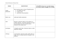 Act, Scene, Lines); example: (I, 2, 45-49)