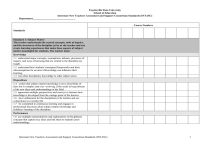 Fayetteville State University School of Education Interstate New Teachers Assessment and Support Consortium Standards (INTASC) Department________________________________ Course Numbers Standards Standard 1: Subject Matter The teacher understands the central concepts, tools of inquiry, and the structures of the discipline (s) he or she teaches and can create learning experiences that make these aspects of subject matter meaningful for students. The teacher must: Knowledge 1.1 understand major concepts, assumptions, debates, processes of inquiry, and ways of knowing that are central to the discipline (s) taught. 1.2 understand how students' conceptual frameworks and their misconceptions for an area of knowledge can influence their learning. 1.3 can relate disciplinary knowledge to other subject areas Dispositions 1.4 realize that subject matter knowledge is not a fixed body of facts but is complex and ever -evolving. (S/he seeks to keep abreast of the new ideas and understandings in the field. 1.5 appreciate multiple perspectives and conveys to learners how knowledge is developed from the vantage point of the knower. 1.6 have enthusiasm for the discipline(s) s/he teaches and see connections to everyday life. 1.7 be committed to continuous learning and engages in professional discourse about subject matter knowledge and children's learning of the discipline. Performance 1.8 use multiple representations and explanations of disciplinary concepts that capture key ideas and link them to students' prior understandings. Interstate New Teachers Assessment and Support Consortium Standards (INTASC) 1 Course Numbers Standards 1.9 represent and use differing viewpoints, theories, ways of knowing and methods to inquiry in teaching subject matter concepts. 1.10 evaluate teaching resources and curriculum materials for comprehensiveness, accuracy, and usefulness for representing particular ideas and concepts. 1.11 engage students in generating knowledge and testing hypotheses according to the methods of inquiry and standards of evidence used in the discipline. 1.12 develop and use curricula that encourage students to see, question, and interpret ideas from diverse perspectives. 1.13 design interdisciplinary learning experiences that allow students to integrate knowledge, skills, and methods of inquiry across several subject areas. Standard 2: Student Learning The teacher understands how children and youth learn and develop, and can provide learning opportunities that support their intellectual, social and personal development. The teacher must: Knowledge 2.1 understand how learning occurs Bhow students construct knowledge, acquire skills, and develop habits of mind-and know how to use instructional strategies that promote student learning. 2.2 understand that students physical, social, emotional, moral and cognitive development influence learning and know how to address these factors when making instructional decisions. 2.3 understand developmental progressions of learners & ranges of individual variation within each domain (physical, social, emotional, moral & cognitive), can identify levels of readiness in learning, & understand how dev. in one domain may affect performances in others. Dispositions 2.4 appreciate individual variation within each area of development, show respect for the diverse talents of all learners, and is committed to help them develop self-confidence and competence. 2.5 use a student's strength as a basis for growth, and a student's errors as opportunities for learning. Interstate New Teachers Assessment and Support Consortium Standards (INTASC) 2 Course Numbers Standards Performance 2.6 assess individual & group performance &design instruction that meets learners' current needs in cognitive, social, emotional moral & physical domains & that leads to the next level of development. 2.7 stimulates student reflection on prior knowledge & links new ideas to familiar ideas, making connections to students' experiences, providing opportunities for active engagement, manipulation, & testing of ideas & materials, & encouraging students to assume responsibility for shaping their learning task. 2.8 use a student's thinking & experiences as a basis for instructional activities by encouraging discussion, listening and responding to group interaction, & eliciting samples of student thinking orally and in writing. Standard 3. Diverse Learners The teacher understands for how students differ in their approaches to learning and creates instructional opportunities that are adapted to learners from diverse cultural backgrounds and with exceptionalities. The teacher must: Knowledge 3.1 understand and can identify differences in approaches to learning and performance modes, and can design instruction that help use student's strengths as a basis for growth. 3.2 know about areas of exceptionality in learning-including learning disabilities, perceptual difficulties, special physical or mental challenges, gifts and talents 3.3 know about the process of second language acquisition and about strategies to support the learning of students whose first language is not English. 3.4 understand how student's learning is influenced by individual experiences, talents, and prior learning, as well as language, culture, family and community values. 3.5 understand cultural and community diversity and know how to learn about incorporate student's experiences, cultures, and community resources into instruction. Dispositions Interstate New Teachers Assessment and Support Consortium Standards (INTASC) 3 Course Numbers Standards 3.6 understand that all children can and should learn at high levels and persist in helping all students achieve success. 3.7 The teacher appreciates and values human diversity, shows respect for student's varied talents and perspectives, and is committed to the pursuit of "individuality configured excellence". 3.8 The teacher respects students as individuals with differing personal and family backgro