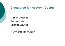Signatures for Network Coding Denis Charles Kamal Jain Kristin Lauter