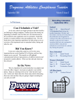 Duquesne Athletics Compliance Insider September 2016 In This Issue…………………………….. Can I Schedule a Visit? As the new school year begins prospects and their families are flocking to college campuses. Coaches across the country are beginning to schedule visits for their next All-American and in the excitement some regulations can be overlooked. Inside this month we examine official visits and unofficial visits. We will break down some important regulations for both and give you an overview of the important items to remember before, during and after the visit. Did You Know? In our new column this month we will review some important but not overly familiar NCAA Bylaws and how they impact you in your job. This month we will highlight communication between representatives of athletics interests and prospective student-athletes. When can they talk and what may they discuss? In the News The new legislation for social media that was adopted and went into effect August 1 may keep you glued to your mobile phone. Many are referring to this as the “click but don’t type” rule. In the news lately there have been many articles discussing these new rules and how they are going to impact recruiting for you and your staff. http://www.goduquesne.com/compliance/duqu-compliance.html Volume 9, Issue 2 Recruiting Calendars September 2016 Football Sept. 1 – 30 Quiet Period* *42 Evaluation Days during the months September, October, and November, selected at the discretion of the institution and designated in writing in the office of the director of athletics; authorized off-campus recruiters shall not visit a prospective student-athlete’s educational institution on more than one calendar day during this period. Men’s Basketball Sept. 1 – 8 Quiet Period Sept. 9 – 30 Recruiting Period Women’s Basketball Sept. 1 – 8 Quiet Period Sept. 9 – 29 Contact Period Sept. 30 Evaluation Period All Other Sports Sept. 1 – 30 Contact Period SEPTEMBER 2016 VOLUME 9 ISSUE 2 OFFICIAL VISITS An official visit by a prospective student-athlete is a visit financed in whole or in part by Duquesne. Here are some rules regarding official visits and what you need to remember before, during and after the visit. Before the visit: Time Period o In Men’s Basketball, prospects can begin official visits on Jan 1 of their junior year of high school. o In Women’s Basketball, prospects can begin official visits on the Thursday following the NCAA Division I Championship in their junior year of high school. For 2017 it is Thursday, April 6, 2017. o In all other sports, prospects may begin official visits on the opening day of classes for their senior year of high school. Paperwork to be filed o Be sure to follow the Official Visit Check list provided by the Compliance Office. o Turn in transcripts, test scores, itinerary, student-host form, and overnight guest guidelines to the Compliance Office at least five days prior to the visit. On the visit: Complimentary Admissions: o A prospective student-athlete may receive a maximum of six complimentary tickets to a home athletics event during an official visit. o Such admissions may provide seating only in the general seating area of a facility. 48 Hour Rule: o An official visit must not exceed 48 hours. o 48-hour period begins when the prospective student-athlete arrives on campus, is provided a meal, or is entertained. o A prospective student-athlete may receive lodging in the locale of the institution without the 48-hour rule beginning if they arrive too late to begin the official visit that day. (ie. If they arrive after 6 PM) o The 48-hour period ends when the prospective student-athlete departs campus. Entertainment: o It is permissible to provide the student host $40 per day for actual expenses for entertaining the prospect while on the visit, but at no time is a host or staff member allowed to provide cash to the prospect. o All entertainment must occur within a 30-mile radius of the campus. Unofficial Visits An unofficial visit is any visit that is funded solely by the prospect and their parents or guardians. As coaches you should remember: There is no limit on the number of unofficial visits a prospect may make and they may make them regardless of their grade level. You cannot pay for any expenses associated with the unofficial visit including parking, meals, or transportation. You are allowed to provide up to 3 complementary admissions to a home contest while the prospect is on the unofficial visit however you are not allowed to reserve game tickets for purchase if more than 3 admissions are requested. Prospects are allowed to stay overnight on campus provided they follow the overnight guest policy of Duquesne. You may provide transportation to practice and competition sites in the prospect’s sport away from campus. You should always file an Unofficial Visit Form with the Compliance Office. SEPTEMBER 2016 VOLUME 9 ISSUE 2 Prospects and a Booster Contact between a representative of athletics interests and a prospect is always a topic of concern. Generally, it is not permissible for a representative of athletics interests to have any contact with a prospect or a prospect’s relatives or legal guardians. In fact NCAA Bylaw 13.1.2 states “Such contact, as well as correspondence and telephone calls, by a representative of an institution’s athletics interests is prohibited.” However, if a prospect initiates the telephone call it is permissible for the prospect and the representative of the institution’s athletics interests to have a conversation. NCAA Bylaw 13.1.3.5.1.1 states “An athletics representative of a member institution may speak to a prospective student-athlete via the telephone only if the prospective student-athlete initiates the telephone conversation and the call is not for recruiting purposes. Under such circumstances, the representative must refer questions about the institution's athletics program to the athletics department 