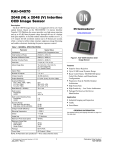 KAI-04070 2048 (H) x 2048 (V) Interline CCD Image Sensor Description The KAI−04070 Image Sensor is a 4-megapixel CCD in a 4/3 inch optical format. Based on the TRUESENSE 7.4 micron Interline Transfer CCD Platform, the sensor provides very high smear rejection and up to 82 dB linear dynamic range through the use of a unique dual-gain amplifier. A flexible readout architecture enables use of 1, 2, or 4 outputs for full resolution readout up to 28 frames per second, while a vertical overflow drain structure suppresses image blooming and enables electronic shuttering for precise exposure control. www.onsemi.com Table 1. GENERAL SPECIFICATIONS Parameter Typical Value Architecture Interline CCD, Progressive Scan Total Number of Pixels 2128 (H) × 2112 (V) Number of Effective Pixels 2080 (H) × 2080 (V) Number of Active Pixels 2048 (H) × 2048 (V) Pixel Size 7.4 mm (H) × 7.4 mm (V) Active Image Size 15.2 mm (H) × 15.2 mm (V), 21.4 mm (Diagonal), 4/3″ Optical Format Aspect Ratio 1:1 Number of Outputs 1, 2, or 4 Charge Capacity 44,000 electrons Output Sensitivity 8.7 mV/e− (Low), 33 mV/e− (High) Quantum Efficiency Pan (−ABA, −PBA, −QBA) R, G, B (−CBA) R, G, B (−FBA) 52% 38%, 42%, 43% 37%, 42%, 41% Read Noise (f = 40 MHz) 12 e− rms Dark Current Photodiode VCCD 3 e−/s 145 e−/s Dark Current Doubling Temp. Photodiode VCCD 7°C 9°C Dynamic Range High Gain Amp (40 MHz) Dual Amp, 2×2 Bin (40 MHz) 70 dB 82 dB Charge Transfer Efficiency 0.999999 Blooming Suppression > 1000 X Smear −115 dB Image Lag < 10 electrons Maximum Pixel Clock Speed 40 MHz Maximum Frame Rate Quad Output Dual Output Single Output 28 fps 14 fps 8 fps Package 68 Pin PGA Cover Glass AR Coated, 2 Sides Figure 1. KAI−04070 Interline CCD Image Sensor Features • Superior Smear Rejection • Up to 82 dB Linear Dynamic Range • Bayer Color Pattern, TRUESENSE Sparse • • • • Color Filter Pattern, and Monochrome Configurations Progressive Scan & Flexible Readout Architecture High Frame Rate High Sensitivity − Low Noise Architecture Package Pin Reserved for Device Identification Application • Industrial Imaging and Inspection • Traffic • Surveillance ORDERING INFORMATION See detailed ordering and shipping information on page 2 of this data sheet. NOTE: All Parameters are specified at T = 40°C unless otherwise noted. © Semiconductor Components Industries, LLC, 2015 July, 2015 − Rev. 3 1 Publication Order Number: KAI−04070/D KAI−04070 The sensor is available with the TRUESENSE Sparse Color Filter Pattern, a technology which provides a 2x improvement in light sensitivity compared to a standard color Bayer part. The sensor shares common pin-out and electrical configurations with a full family of Truesense Imaging Interline Transfer CCD image sensors, allowing a single camera design to be leveraged in support of multiple devices. ORDERING INFORMATION Table 2. ORDERING INFORMATION − KAI−04070 IMAGE SENSOR Part Number Description Marking Code KAI−04070−ABA−JD−BA Monochrome, Telecentric Microlens, PGA Package, Sealed Clear Cover Glass with AR Coating (Both Sides), Standard Grade KAI−04070−ABA−JD−AE Monochrome, Telecentric Microlens, PGA Package, Sealed Clear Cover Glass with AR Coating (Both Sides), Engineering Grade KAI−04070−ABA−JR−BA Monochrome, Telecentric Microlens, PGA Package, Taped Clear Cover Glass with AR Coating (Both Sides), Standard Grade KAI−04070−ABA−JR−AE Monochrome, Telecentric Microlens, PGA Package, Taped Clear Cover Glass with AR Coating (Both Sides), Engineering Grade 11KAI−04070−FBA−JD−BA Gen2 Color (Bayer RGB), Telecentric Microlens, PGA Package, Sealed Clear Cover Glass with AR Coating (Both Sides), Standard Grade 11KAI−04070−FBA−JD−AE Gen2 Color (Bayer RGB), Telecentric Microlens, PGA Package, Sealed Clear Cover Glass with AR Coating (Both Sides), Engineering Grade 11KAI−04070−QBA−JD−BA Gen2 Color (TRUESENSE Sparse CFA), Telecentric Microlens, PGA Package, Sealed Clear Cover Glass with AR Coating (Both Sides), Standard Grade 11KAI−04070−QBA−JD−AE Gen2 Color (TRUESENSE Sparse CFA), Telecentric Microlens, PGA Package, Sealed Clear Cover Glass with AR Coating (Both Sides), Engineering Grade 11KAI−04070−CBA−JD−BA* Gen1 Color (Bayer RGB), Telecentric Microlens, PGA Package, Sealed Clear Cover Glass with AR Coating (Both Sides), Standard Grade 11KAI−04070−CBA−JD−AE* Gen1 Color (Bayer RGB), Telecentric Microlens, PGA Package, Sealed Clear Cover Glass with AR Coating (Both Sides), Engineering Grade 11KAI−04070−PBA−JD−BA* Gen1 Color (TRUESENSE Sparse CFA), Telecentric Microlens, PGA Package, Sealed Clear Cover Glass with AR Coating (Both Sides), Standard Grade 11KAI−04070−PBA−JD−AE* Gen1 Color (TRUESENSE Sparse CFA), Telecentric Microlens, PGA Package, Sealed Clear Cover Glass with AR Coating (Both Sides), Engineering Grade KAI−04070−ABA Serial Number KAI−04070−FBA Serial Number KAI−04070−QBA Serial Number KAI−04070−CBA Serial Number KAI−04070−PBA Serial Number *Note recommended for new designs. Table 3. ORDERING INFORMATION − EVALUATION SUPPORT Part Number Description G2−FPGA−BD−14−40−A−GEVK FPGA Board for IT−CCD Evaluation Hardware KAI−68PIN−HEAD−BD−A−GEVB 68 Pin Imager Board for IT−CCD Evaluation Hardware LENS−MOUNT−KIT−A−GEVK Lens Mount Kit for IT−CCD Evaluation Hardware KAI−68PIN−N−PROBE−CARD−A−GEVB 68 Pin Probe Card (Narrow Socket) KAI−68PIN−W−PROBE−CARD−A−GEVB 68 Pin Probe Card (Wide Socket) See the ON Semiconductor Device Nomenclature document (TND310/D) for a full description of the naming convention used for image sensors. For reference documentation, including information on evaluation kits, please visit our web site at www.onsemi.com. www.onsemi.com 2 KAI−04070 DEVICE DESCRIPTION Architecture R2cd RDcd H2B d H2S d H1B d H1S d SUB H2B c H2S c H1B c H1S c RDcd ÑÑÑÑÑÑÑÑÑÑÑÑÑÑÑ