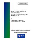 CORE Report No. 2004-02 VERY LARGE FLOATING STRUCTURES: APPLICATIONS, ANALYSIS AND DESIGN by E. WATANABE, C.M. WANG, T. UTSUNOMIYA and T. MOAN Centre for Offshore Research and Engineering National University of Singapore VERY LARGE FLOATING STRUCTURES: APPLICATIONS, ANALYSIS AND DESIGN E. Watanabe1, C.M. Wang2, T. Utsunomiya1 and T. Moan3 Department of Civil and Earth Resources Engineering, Kyoto University Kyoto 606-8501, Japan 2 Centre for Offshore Research and Engineering, Department of Civil Engineering National University of Singapore, Kent Ridge 119260, Singapore 3 Centre for Ships and Ocean Structures, the Norwegian University of Science and Technology, NO-7491, Trondheim, Norway 1 Abstract – In this report, structural and civil engineers are introduced to the world of very large floating structures (VLFS) that have been gradually appearing in the waters off developed coastal cities (and countries with coastlines). Their presence is largely due to a severe shortage of land and the sky-rocketing land costs in recent times. After providing a description of a VLFS and highlighting its advantages (under certain conditions) over the traditional land reclamation in creating space from the sea, the authors bring to attention the early, the present and future applications of VLFS. The input design data, hydroelastic analysis and design considerations for very large floating structures are discussed, albeit in the most basic forms. 1. INTRODUCTION As population and urban development expand in land-scare island countries (or countries with long coastlines), city planners and engineers resort to land reclamation to ease the pressure on existing heavily-used land and underground spaces. Using fill materials from seabed, hills, deep underground excavations, and even construction debris, engineers are able to create relatively vast and valuable land from the sea. Countries such as the Netherlands, Singapore and Japan, have expanded their land areas significantly through aggressive land reclamation programmes. Probably the first large scale and systematic land reclamation work was carried out by Kiyomori Taira off Kobe’s coastal waters in the 12th Century. However, land reclamation has its limitation. It is suitable when the water depth is shallow (less than 20 m). When the water depth is large and the seabed is extremely soft, land reclamation is no longer cost effective or even feasible. Moreover, land reclamation destroys the marine habitat and may even lead to the disturbance of toxic sediments. When faced with these natural conditions and environmental consequences, very large floating structures may offer an attractive alternative solution for birthing land from the sea. There are basically two types of very large floating structures (VLFSs), namely the semisubmersible-type and the pontoon-type. Semi-submersible type floating structures are raised above the sea level using column tubes or ballast structural elements to minimize the effects of waves while maintaining a constant buoyancy force. Thus they can reduce the waveinduced motions and are therefore suitably deployed in high seas with large waves. Floating oil drilling platforms used for drilling for and production of oil and gas are typical examples of semi-submersible-type VLFSs. When these semi-submersibles are attached to the seabed using vertical tethers with high pretension as provided by additional buoyancy of the structure, they are referred to as tension-leg platforms. In contrast, pontoon-type floating structures lie on the sea level like a giant plate floating on water. Pontoon-type floating structures are suitable for use in only calm waters, often inside a cove or a lagoon and near the shoreline. Large pontoon-type floating structures have been termed Mega-Floats by Japanese engineers. As a general rule of thumb, Mega-Floats are floating structures with at least one of its length dimensions greater than 60 m. Referring to Fig. 1, a Mega-Float system consists of a (a) very large pontoon floating structure, (b) mooring facility to keep the floating structure in place, (c) an access bridge or floating road to get to the floating structure from shore, and (d) a breakwater (usually needed if the significant wave height is greater than 4 m) for reducing wave forces impacting the floating structure. Mooring Facility Superstructure Mega-Float Access Bridge Breakwater Land Sea Bed Fig. 1. Components of a Mega-Float System These Mega-Floats have advantages over the traditional land reclamation solution for space creation in the following respects: • they are cost effective when the water depth is large (note that the cost of imported sand for land reclamation in some countries has risen significantly and it may come a time that sand may not be even available from neighbouring countries), • environmental friendly as they do not damage the marine eco-system, or silt-up deep harbours or disrupt the tidal/ocean currents, • they are easy and fast to construct (components may be made at different shipyards and then brought to the site for assembling) and therefore sea-space can be speedily exploited, • they can be easily removed (if the sea space is needed in future) or expanded (since they are of a modular form), • the facilities and structures on Mega-Floats are protected from seismic shocks since they are inherently base isolated, • they do not suffer from differential settlement due to reclaimed soil consolidation, • their positions with respect to the water surface are constant and thus facilitate small boats and ship to come alongside when used as piers and berths. • their location in coastal waters provide scenic body of water all around, making them suitable for developments associated with leisure and water sport activities. In the sequel, the readers are introduced to the applications of pontoon-type VLFSs, the input data, analysis and design considerations for these VLFSs. For detail information on the desi
