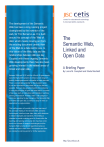 The development of the Semantic Web has been a long running project championed by the inventor of the web, Sir Tim Berners-Lee. It is built around his concept of the ‘Web of data’ which means moving on from the existing document centric view of the Web to a data centric one. In this vision of the Web, data and the relationships between data are key. Coupled with these ongoing Semantic Web developments there has also been growing interest in the related areas of linked and open data. The Semantic Web, Linked and Open Data A Briefing Paper By Lorna M. Campbell and Sheila MacNeill Between 2009 and 2010 both the UK and US governments launched high profile projects to release a wide range of publicly funded government information as open data sets. There is considerable potential for the education sector to use and contribute to these data sets as they become available. There are also potential benefits for institutions in using the principles of open and linked data in a number of key areas such as institutional administration, teaching, learning and research. However, there is still a degree of confusion regarding the key concepts of the Semantic Web and linked and open data, as well as a range of views on approaches to implementation. This briefing paper will provide a high level overview of key concepts relating to the Semantic Web, semantic technologies, linked and open data; along with references to relevant examples and standards. The briefing is intended to provide a starting point for those within the teaching and learning community who may have come across the concept of semantic technologies and the Semantic Web but who do not regard themselves as experts and wish to learn more. The examples and links are intended as starting points for further exploration. http://jisc.cetis.ac.uk THE SEMANTIC WEB, LINKED AND OPEN DATA The Semantic Web DEFINITION “The Semantic Web provides a common framework that allows data to be shared and reused across application, enterprise, and community boundaries. It is a collaborative effort led by W3C. It is based on the Resource Description Framework (RDF).” W3C, http://www.w3.org/2001/sw/ OVERVIEW The World Wide Web Consortium (W3C) define the main goals of the Semantic Web as follows: “The Semantic Web is a Web of Data. The vision of the Semantic Web is to extend the principles of the Web from documents to data. Data should be accessed using the general Web architecture using, e.g., URIs; data should be related to one another just as documents (or portions of documents) are already. This also means creation of a common framework that allows data to be shared and reused across application, enterprise, and community boundaries, to be processed automatically by tools as well as manually, including revealing possible new relationships among pieces of data. In order to achieve theses goals, it is necessary to define and describe the relations among data on the Web. This is not unlike the usage of hyperlinks that connect the current page with another page: the hyperlinks defines a relationship between the current page and the target. On the Semantic Web, such relationships can be established between any two named resources or values and the relationship itself (i.e, the link) is also named. By contrast, a link on the traditional Web is not named, which means that the significance or meaning of that link needs to be deduced by the human reader. The naming and defining those relations explicitly enables better and automatic interchange of data. RDF, which is one of the fundamental building blocks of the Semantic Web, gives a formal definition for that interchange.” W3C, http://www.w3.org/2001/sw/SW-FAQ This ability to dynamically describe complex and evolving concepts, resources and relationships could have a profound impact on how we all access and use data. The Semantic Web is frequently represented by the following “layer cake” diagram: http://www.w3.org/2007/03/layerCake-small.png Copyright © 2007 World Wide Web Consortium http://www.w3.org/, (Massachusetts Institute of Technology http://www.csail.mit.edu/, EuropeanResearch Consortium for Informatics and Mathematics http://www. ercim.org/, Keio University http://www.keio.ac.jp/). All Rights Reserved. Relevant Standards: Uniform Resource Identifier (URI): http://www.ietf.org/rfc/rfc2396.txt Resource Description Framework: http://www.w3.org/TR/REC-rdf -syntax/ RDF Vocabulary Description Language 1.0: RDF Schema: http://www. w3.org/TR/rdf-schema/ SPARQL Query Language for RDF: http://www.w3.org/TR/rdf -sparql-query/ OWL 2 Web Ontology Language: http://www.w3.org/TR/owl2 -overview/ Rule Interchange Format Core Dialect: http://www.w3.org/TR/rif-core/ Simple Knowledge Organisation System: http://www.w3.org/TR/ skosreference/ EXAMPLES: A Linked Open Data Resource List Management Tool for Undergraduate Students: http://www.w3.org/2001/sw/sweo/public/UseCases/ Talis/ Further Reading: W3C Semantic Web Activity: http://www.w3.org/2001/sw/ W3C Semantic Web FAQ: http://www.w3.org/2001/sw/SW-FAQ THE SEMANTIC WEB, LINKED AND OPEN DATA Semantic technologies DEFINITION “Semantic technologies encode meaning separately from data and content files, and separately from application code. This enables machines as well as people to understand, share and reason with them at execution time.” Wikipedia, http://en.wikipedia.org/wiki/Semantic_technology OVERVIEW There are no hard and fast rules as to what does and does not constitute semantic technologies, rather semantic technologies may be placed along a continuum. Depending on how information and semantics are modelled and expressed some technologies are capable of considerably greater semantic processing and reasoning than others. Relevant Standards: All the Semantic Web standards are relevant to semantic technolgies although few technologies will support them all. Other relevant standards include: RDF Site Summary 1.0: http://web.resource.org/rss/1.0/spec Top