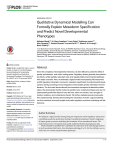 RESEARCH ARTICLE Qualitative Dynamical Modelling Can Formally Explain Mesoderm Specification and Predict Novel Developmental Phenotypes Abibatou Mbodj1,2, E. Hilary Gustafson3, Lucia Ciglar3, Guillaume Junion3,4, Aitor Gonzalez1,2, Charles Girardot3, Laurent Perrin1,2,5, Eileen E. M. Furlong3*, Denis Thieffry6* a11111 1 Aix-Marseille Université, Marseille, France, 2 INSERM, Marseille, France, 3 European Molecular Biology Laboratory (EMBL), Genome Biology Unit, Heidelberg, Germany, 4 Génétique Reproduction et Développement, INSERM, Clermont-Ferrand, France, 5 CNRS, Marseille, France, 6 Computational Systems Biology team, Institut de Biologie de l’Ecole Normale Supérieure (IBENS), INSERM, Ecole Normale Supérieure, PSL Research University, Paris, France * furlong@embl.de (EEMF); denis.thieffry@ens.fr (DT) OPEN ACCESS Citation: Mbodj A, Gustafson EH, Ciglar L, Junion G, Gonzalez A, Girardot C, et al. (2016) Qualitative Dynamical Modelling Can Formally Explain Mesoderm Specification and Predict Novel Developmental Phenotypes. PLoS Comput Biol 12 (9): e1005073. doi:10.1371/journal.pcbi.1005073 Editor: Shayn M Peirce, University of Virginia, UNITED STATES Received: March 21, 2016 Accepted: July 22, 2016 Published: September 6, 2016 Copyright: © 2016 Mbodj et al. This is an open access article distributed under the terms of the Creative Commons Attribution License, which permits unrestricted use, distribution, and reproduction in any medium, provided the original author and source are credited. Data Availability Statement: The mesoderm specification model has been submitted to the database BioModels database under identifier MODEL1607310000 (https://www.ebi.ac.uk/ biomodels-main/). All other data are included in the supporting material. Funding: This work was supported by the EU EraSysBio + program (http://www.erasysbio.net/) project ModHeart, and Deutsche Forschungsgemeinschaft (DFG, http://www.dfg.de/) project FU 750/1-2. The funders had no role in study Abstract Given the complexity of developmental networks, it is often difficult to predict the effect of genetic perturbations, even within coding genes. Regulatory factors generally have pleiotropic effects, exhibit partially redundant roles, and regulate highly interconnected pathways with ample cross-talk. Here, we delineate a logical model encompassing 48 components and 82 regulatory interactions involved in mesoderm specification during Drosophila development, thereby providing a formal integration of all available genetic information from the literature. The four main tissues derived from mesoderm correspond to alternative stable states. We demonstrate that the model can predict known mutant phenotypes and use it to systematically predict the effects of over 300 new, often non-intuitive, loss- and gain-offunction mutations, and combinations thereof. We further validated several novel predictions experimentally, thereby demonstrating the robustness of model. Logical modelling can thus contribute to formally explain and predict regulatory outcomes underlying cell fate decisions. Author Summary We delineate a logical model encompassing 48 components and 82 regulatory interactions controlling mesoderm specification during Drosophila development, thereby integrating all major genetic processes underlying the formation of four mesodermal tissues. The model is based on in vivo genetic data, partly confirmed by functional genomic data. Model simulations qualitatively recapitulate the expression of the main lineage markers of each mesodermal derivative, from developmental stage 8 to 10, for the wild type case, as well as for over twenty reported mutant genotypes. PLOS Computational Biology | DOI:10.1371/journal.pcbi.1005073 September 6, 2016 1 / 17 Predictive Modelling of Drosophila Mesoderm Specification design, data collection and analysis, decision to publish, or preparation of the manuscript. Competing Interests: The authors have declared that no competing interests exist. We further use this model to systematically predict the effects of over 300 loss- and gain-of-function mutations, and combinations thereof. By generating specific mutant combinations, we validated several novel predictions experimentally demonstrating the robustness of model. This modelling study is the first to tackle the regulatory network controlling the specification of mesoderm during Drosophila development, and more broadly deals with one of the most comprehensive developmental networks that have been modelled to date. Introduction Functional genomic approaches (based on microarrays and next-generation sequencing) provide a powerful means to decipher the molecular mechanisms underlying the control of development and cell differentiation, as well as deregulations thereof associated with diseases such as cancer. Together with low-throughput experimental data, these high-throughput methods enable the delineation of large and sophisticate regulatory networks. Understanding and predicting the behaviour of such complex networks require the use of proper mathematical modelling frameworks. Various dynamical models have been proposed for a handful of relatively well known developmental processes, many using differential equations and referring to Drosophila development (see e.g. [1–5] and references therein). However, these modelling studies consider relatively limited numbers of regulatory components (at most a dozen) and require the quantitative determination of poorly documented parameters. In this context, formal qualitative modelling approaches constitute an interesting alternative, at least as a first step towards more quantitative modelling. In particular, logical (Boolean or multilevel) modelling has been applied to various regulatory and signalling networks of increasing sizes over the past decade (see e.g. [6–19] and references therein). But only few attempts were made to predict novel phenotypes, and therefore the full predictive value of the network and