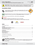 Platform: DBALL/DBALL2 Firmware: GM10 Range Extender Ready (RXT) Installation v.3.18+ Rev.: 20160119 Update Alert: Firmware updates are posted to the web on a regular basis. We recommend that you check for firmware and/or install guide updates prior to installing this product. Installation Guide This guide supports the installation of a DBALL in Range Extender Ready (RXT) mode with or without a Plug & Play T-Harnesses OBDTHDGM1 or OBDTHDGM2 (optional), RF Kit or SmartStart (all sold separately). Range Extender Ready (RXT) is used to dramatically increase the factory remote start activation range compared to the factory transmitter. Refer to the Quick Reference Guide for more information. Note: optional T-Harnesses OBDTHDGM1 or OBDTHDGM2 are sold separately. Important: -This guide is compatible with the GM10 firmware version 3.18 and higher. -This product is ONLY compatible with vehicles equipped with a factory-installed remote starter. Index Vehicle Application Guide................................................................................................................................................ 02 Installation Wiring Diagram without T-Harness.................................................................................................................................. Wiring Diagram with T-Harness OBDTHDGM1/2........................................................................................................... Vehicle Wiring Reference Chart...................................................................................................................................... SmartStart/XL202 Installation Notes............................................................................................................................... 03 04 05 11 Programming Module Programming...................................................................................................................................................... Module Reset & Hard Reset............................................................................................................................................ Feature & Option List....................................................................................................................................................... Feature Programming...................................................................................................................................................... 12 13 14 15 LED Diagnostics & Troubleshooting................................................................................................................................ 16 Limited One-Year Consumer Warranty............................................................................................................................ 17 Quick Reference Guide ................................................................................................................................................................... 18 SmartStart Compatible SmartStart is equipped with D2D, which means it can be connected to an interface module and used in Range Extender Ready (RXT) mode without the use of a remote starter. See the Module Programming section for more information. ® Buick, Chevrolet and GMC are registered trademarks and property of their respective companies.. © 2015 Directed. All rights reserved. Platform: DBALL/DBALL2 Firmware: GM10 Range Extender Ready (RXT) Installation v.3.18+ Rev.: 20160119 Page 2 Vehicle Application Guide DL-Disarm Factory Security DL-Door Lock Control DL-Door Unlock DL-Driver Priority Unlock RS-OEM Remote Start Activation using XL-202 or RF kit RS-SmartStart • • • • • • • • • • • • • • • • • • • • • • • • • • • • • • • • • • • • • • • • • • • • • • • • • • • • • • • • • • • • • • • • • • • • • • • • • • • • • • • • • • • • • • • • • • • • • • • • • • • • • • • • • • • • • • • • • • • • • • • • • • • • • • • • • • • • • • • • • • • • • • • • • • • • • • • • • • • • • • • • • • • • • • • • • • • • • • • • • 2013 2012 2011 2010 Chevrolet Camaro Camaro Colorado Cruze Equinox Equinox Impala Malibu Orlando 2014 Buick Encore LaCrosse Regal Verano 2015 2016 Vehicles • • • • • • • • • • • • • • • • • • • • • CC-Heated Seats Activation DL-Arm Factory Security The table below lists the vehicles and features which are compatible with this product. Refer to the following pages for more information on installation wiring, programming and troubleshooting for these vehicles. • • • • • • • • • • • • • • • • • • • • • • • [2] Silverado 1500 Silverado 2500/3500 [2] Sonic • • • [1] Spark Suburban Tahoe • Trax GMC Canyon • • • • • • • • • • [2] Sierra 1500 Sierra 2500/3500 [2] Terrain Yukon • • • • • • • • • • Legend: CC: Comfort & Convenience Controls DL: OE Door Lock & Alarm Controls RS: Remote Start & Engine Controls [1] T-Harness THGM610 is not compatible w ith the Chevrolet Spark [2] T-Harness THGM610 is ONLY compatible w ith these models IF the vehicle is equipped w ith OnStar. © 2015 Directed. All rights reserved. Platform: DBALL/DBALL2 Firmware: GM10 Range Extender Ready (RXT) Installation v.3.18+ Rev.: 20160119 Page 3 Wiring Diagram with T-Harness Important! Refer to the Quick Reference Guide for more information on Range Extender Ready (RXT). 1. Remove the factory Diagnostic Connector (OBDII) from the dash. 14 2. Screw style (#OBDTHDGM1) or clip style (#OBDTHDGM2) the black female connector to replace the factory OBDII connector. 10 12 2 T-Harness Female