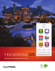 HomeWorks QS ® Save energy with unparalleled total home control HomeWorks QS ® HomeWorks has been the leader in light control for exclusive homes for over a decade. And now, we’ve taken that light control to a new level— total home control. This level of control includes lights, shades, HVAC, sensors, and appliances and incorporates a variety of new products, such as sensors, a temperature control, and a dynamic keypad. HomeWorks QS offers increased energy savings, is a more powerful system, is easier to install, and provides greater integration capabilities than before. With HomeWorks QS, you can offer your customers a system that works harder and smarter to bring energy savings to their homes without having to sacrifice comfort and convenience. The power of Quantum ® Quantum was developed to meet the challenges of creating systems that can scale to accommodate thousands of lighting zones and thousands of shades in buildings that are often in use 24 hours a day. Using the Quantum architecture in HomeWorks® QS provides for powerful control over daylight and electric light, from small systems through large applications. The new architecture provides large-scale processing power and easier communications wiring, along with powerful design, programming, and documentation software to make your project workflow easier and faster. The New York Times Building uses Quantum and saves over 70% light energy. Lutron | 01 HomeWorks QS ® Energy-saving features Every time you dim your lights you save energy. Dim them by 25%, for example, and you’ll save 20% energy. The more you dim, the more you save. While a HomeWorks QS system provides the energy-saving benefits of dimming, it also provides other energy-saving benefits, too. Occupancy sensing Sensors turn off the lights when the room is empty and can save up to 20% lighting energy. Occupied: On Full On Raise Temp Vacant: Off Dim Lower Temp Appliance On Appliance Off 02 | Lutron Energy-efficient light control Lutron leads the industry in control of high-efficacy light sources, including LED and fluorescent. Our Hi-lume® A-Series LED driver provides the ultimate dimming performance for LED fixtures from popular OEM fixture brands. Temperature control The perfect complement to light and shade control, temperature control gives you the ability to adjust heating and cooling systems any time of day. This can save up to 16% or more on heating and cooling costs. Appliance control Save energy by turning off standby power to A/V equipment and computers—via keypads, sensors, or the system timeclock. Standby power can amount to 10% of a typical home’s electricity use. Shade Open Shade Closed kWh kWh More Energy Less Energy 7am: Off Scene 1 All Off Lights On 7pm: Dim Scene 1 All Off All Lights Off Shades In summer, close shades to block the sun, which will reduce cooling costs. In winter, open shades to let daylight warm your home—then close them in the evening to retain the heat. Doing so can save 10% on heating and cooling costs. “Green” button Use the “green” button to save energy by controlling lights, shades and temperature with a single touch. Scheduling The timeclock can be programmed to automatically dim or turn off lights in spaces where lights are often inadvertently left on. “All Off’ button Place a keypad with an “All Off” button near an entry to conveniently turn off all of the lights throughout the home with a single touch. Lutron | 03 HomeWorks QS ® System architecture Hybrid repeater Processor Clear Connect link devices Maestro® dimmer/switch Tabletop lamp dimmer Dynamic keypad GRAFIK Eye® QS Visor control transmitter (left) and receiver (right) 04 | Lutron Hybrid keypad Processor Supports 100 devices/100 zones per link • seeTemp™ thermostat seeTouch® keypads Plug-in dimming module Plug-in appliance Pico® module wireless control QS plug-in power supply (left) Sivoia® QS Wireless shades (right) Radio Powr Savr™ wireless occupancy/vacancy sensor (left), daylight sensor (middle), and temperature sensor (right) Home network HomeGlance Poconos Home Change My Watch List Favorite Keypad Away Kitchen Accents Master Bedroom North Sheers Basement Dehumidifier 75% Closed Off Open On On Pathway Goodnight Home Off Timeclock Overview Normal Temperature Overview First Floor Current Temperature 68 F 67 F Setpoint Next Event Close Off All Off Mode System capacities: Away, 8:00 AM Second Floor Current Temperature 70 F 68 F Setpoint eco eco HomeGlance Control & Monitor Energy Schedules Settings Wi-Fi router 100 devices per link 2 links per processor 16 processors per system 1,500 wireless devices 10,000 zones total iPhone®/iPod touch®/iPad® app QS link devices Panels Supports 100 devices/ 512 zones per link • Flexible wiring topology • 24 V DC power Supports HomeWorks® RPM and spec grade panels • Uses existing module interface • Supports 16 panels/ 256 zones per link • • seeTouch® keypad GRAFIK Eye® QS RS-232 interface Wallbox power module CCI/CCO interface Specification grade panel (left) Remote power panel (right) QS shade power panel (left) Sivoia® QS shades (right) Lutron | 05 new components HomeWorks QS ® Sensors Wall-mounted occupancy/vacancy sensors also available. Radio Powr Savr™ occupancy/vacancy sensor Occupancy/vacancy sensors are ideal for laundry rooms, bathrooms, walk-in closets, and other rooms where lights are often inadvertently left on. By turning lights off automatically you can save up to 20% of the energy used. Radio Powr Savr daylight sensor You can use these wireless sensors to provide the perfect balance of daylight and electric light, based on available light in a space. Reliable Clear Connect™ RF technology ensures consistent performance, while XCT™ technology enhances the sensor’s ability to detect fine motions—such as reading— so occupants aren’t left in the dark. Radio Powr Savr sensors are battery powered and wireless, so they are easy to place in the space