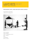 RENT PROFESSIONAL PHOTO, VIDEO AND DIGITAL RENTAL SERVICE BASLERSTRASSE 30 | 8048 ZÜRICH T. 043 311 20 33 | F. 043 311 20 35 WWW.LBAG.CH | INFO@LBAG.CH PHOTO CAMERAS VIDEO CAMERAS FLASH + CONTINUOUS LIGHTS GRIP + TRIPODS MACS ACCESSORIES RENTAL STUDIO Code Item Price- and product changes reserved any time Printing date : 19/07/2016 Daily Rental Fee incl. VAT CHF incl. VAT. Photo Studio, Training room Photo Studio RE MS Light + Byte Studio, Daily Rate 950.00 RE MS05 Light + Byte Studio, Half Day Rate 550.00 RE MSEL Light + Byte Studio, Light setting, 1 Day 550.00 RE MSH Light + Byte Studio, Hourly Extension 99.00 RE MSR Light + Byte Studio, Obligatory final cleaning 80.00 Training Room RE SCH Light + Byte Computer Training room, Daily Rate 800.00 RE SCH HT Light + Byte Computer Training room, Half Day (5h) 420.00 RE SCH STD Light + Byte Computer Training room, Hourly Rate 115.00 CHF incl. VAT. Canon Digital DSLRs Digital DSLR Cameras RE CA 5DMIII Canon EOS 5D Mk III, Body, 22.3 MP Full Frame, CMOS 100.00 RE CA 1DXMKII Canon EOS 1DX Body, 20,2 MP Full Frame, CMOS, 4K HD 150.00 RE CA 1DC Canon EOS 1Dc Body, 18,1 MP, Full Frame, CMOS, incl. Bag, Charging Station, 2 Batteries, CF Card, Card Reader, 2xCF 128GB UDMA7 (160MBs) 199.00 RE CA 5DSR Canon EOS 5DS R, Body, 50.6 Megapixel fullframe CMOS Sensor 130.00 Lenses and Converters RE CA 8-15 Canon EF 8-15 mm 4.0 L Fisheye USM 50.00 RE CA 11-24 Canon EF 11-24 mm 4.0L USM 56.00 RE CA 14 Canon EF 14 mm 2.8 L IS USM 55.00 RE CA 16-35 Canon EF 16-35 mm 2.8L II USM 40.00 RE CA 17TS Canon TS-E 17 mm 4.0L Tilt Shift 42.00 RE CA 24 Canon EF 24 mm 1.4 L II USM 35.00 RE CA 24TS Canon TS-E 24 mm 3.5L Tilt Shift 35.00 RE CA 24-70 Canon EF 24-70 mm 2.8L II USM 35.00 RE CA 24-105 Canon EF 24-105mm 4.0L IS 35.00 RE CA 35 Canon EF 35 mm 1.4 L USM 25.00 RE CA 45TS Canon TS-E 45 mm 3.5L Tilt Shift 35.00 RE CA 50 Canon EF 50 mm 1.2 L 40.00 RE CA 70-200 Canon EF 70-200 mm 2.8L IS USM 45.00 RE CA 85 Canon EF 85 mm 1.2L 40.00 RE CA 100 Canon Lens EF 100mm Macro 2.8L 20.00 RE CA 100-400 Canon Lens EF 100-400 mm 4.5-5.6L IS USM 45.00 RE CA 135 Canon EF 135 mm 2.0 L 30.00 RE CA 200 Canon EF 200 mm 1.8 L RE CA 400 Canon EF 400 mm 2.8 L IS II USM RE CA EXT1.4 Canon Tele Converter EF 1.4x 16.00 RE CA EXT2.0 Canon Tele Converter EF 2.0x 19.00 50.00 160.00 Flash Systems and Accessories RE CA 580EXII Canon Speedlite 580 EXII RE CA 600EX Canon Speedlite 600 EX-RT 18.00 RE AT UW5D Underwater housing for Canon EOS 5D Mark III RE CA BG-E11 Battery gripf BG-E11 for CANON EOS 5D Mark III 15.00 RE CA ACE6 Canon Power supply unit 5D / 7D 10.00 RE CA CSC Canon Shoe Cord 2 RE CA LP-E6 Canon Battery LP-E6 | 5D / 6D / 7D RE GF GARY Gary Fong Cloud 22.00 250.00 5.00 6.00 11.00 CHF incl. VAT. Zeiss DSLR Lenses ZEISS OBJEKTIVE DSLR RE ZC D15 Zeiss - Distagon 2,8 / 15 mm, Canon LIGHT + BYTE AG | BASLERSTRASSE 30 | 8048 ZURICH | SWITZERLAND | T. 043 311 20 33 | F. 043 311 20 35 | INFO@LBAG.CH | WWW.LBAG.CH 50.00 Seite - 2 Code Item Price- and product changes reserved any time Printing date : 19/07/2016 RE ZC D18 Zeiss - Distagon 3.5 / 18 mm, Canon 40.00 RE ZC D21 Zeiss - Distagon 2.8 / 21 mm, Canon 40.00 RE ZC D25 Zeiss - Distagon 2.0 / 25 mm, Canon 40.00 RE ZC D28 Zeiss - Distagon 2.0 / 28 mm, Canon 40.00 RE ZC D35 Zeiss - Distagon 2.0 / 35 mm, Canon 40.00 RE ZC D35_1.4 Zeiss - Distagon 1.4 / 35 mm, Canon 40.00 RE ZC P50 Zeiss - Planar 1.4 / 50 mm, Canon 40.00 RE ZC MP50 Daily Rental Fee incl. VAT 40.00 RE ZC P85 Zeiss - Planar 1,4 / 85 mm, Canon RE ZC AS135 Zeiss - Apo-Sonnar / 135 mm, Canon 40.00 50.00 RE ZC M21 Zeiss - Milvus 2.8 / 21 mm, Canon 40.00 RE ZC O28 Zeiss Otus T* 1.4 / 28 mm, Canon 60.00 RE ZC M35 Zeiss - Milvus 2.0 / 35 mm, Canon 40.00 RE ZC M50 Zeiss - Milvus 1.4 / 50 mm, Canon 40.00 RE ZC M50M Zeiss - Milvus 2.0 / 50 mm Macro, Canon 40.00 RE ZC M85 Zeiss - Milvus 1.4 / 85 mm, Canon 40.00 RE ZC M100M Zeiss - Milvus 2.0 / 100 mm Macro , Canon 40.00 RE ZC O55 Zeiss Otus T* 1.4 / 55 mm, Canon 60.00 RE ZC O85 Zeiss Otus T* 1.4 / 85 mm, Canon 60.00 RE ZX T12 Zeiss - Touit 2.8 / 12 mm, Fuji X 30.00 RE ZX T32 Zeiss - Touit 1,8 / 32 mm, Fuji X 30.00 RE ZX T50 MAKRO Zeiss - Touit 2,8 / 50 mm Makro, Fuji X 30.00 Fuji X Bajonett ZEISS OBJEKTIVE DSLR RE ZN D15 Zeiss - Distagon 2,8 / 15 mm, Nikon 50.00 RE ZN D18 Zeiss - Distagon 3.5 / 18 mm, Nikon 40.00 RE ZN D21 Zeiss - Distagon 2.8 / 21 mm, Nikon 40.00 RE ZN D25 Zeiss - Distagon 2.0 / 25 mm, Nikon 40.00 RE ZN D28 Zeiss - Distagon 2.0 / 28 mm, Nikon 40.00 RE ZN D35 Zeiss - Distagon 2.0 / 35 mm, Nikon 40.00 RE ZN D35_1.4 Zeiss - Distagon 1.4 / 35 mm, Nikon 40.00 RE ZN P50 Zeiss - Planar 1.4 / 50 mm, Nikon 40.00 RE ZN MP50 Zeiss - Makro-Planar 2.0 / 50 mm Nikon 40.00 RE ZN P85 ZEISS - Planar Lens T* 1.4 / 85 mm, Nikon 40.00 RE ZN AS135 Zeiss - Apo-Sonnar / 135 mm, Nikon 50.00 RE ZN O28 Zeiss Otus T* 1.4 / 28 mm, Nikon 60.00 RE ZN M21 Zeiss - Milvus 2.8 / 21 mm, Nikon 40.00 RE ZN M35 Zeiss - Milvus 2.0 / 35 mm, Nikon 40.00 RE ZN M50 Zeiss - Milvus 1.4 / 50 mm, Nikon 40.00 RE ZN M50M Zeiss - Milvus 2.0 / 50 mm Macro , Nikon 40.00 RE ZN M85 Zeiss - Milvus 1.4 / 85 mm, Nikon 40.00 RE ZN M100M Zeiss - Milvus 2.0 / 100 mm Macro, Nikon 40.00 RE ZN O55 Zeiss Otus T* 1.4 / 55 mm, Nikon 60.00 RE ZN O85 Zeiss Otus T* 1.4 / 85 mm, Nikon 60.00 RE ZE B18 Zeiss - Batis 2.8 / 18 mm, Sony E 40.00 RE ZE B25 Zeiss - Batis 2.0 / 25 mm, Sony E 40.00 RE ZE B85 Zeiss - Batis 1.8 / 85 mm, Sony E 40.00 RE ZE L21 Zeiss - Loxia 2.8 / 21 mm, Sony E 40.00 RE ZE L35 Zeiss - Loxia 2.0 / 35 mm, Sony E 40.00 RE ZE L50 Zeiss - Loxia 2.0 / 50 mm, Sony E 40.00 RE ZE T12 Zeiss - Touit 2.8 / 12 mm, Sony E 30.00 RE ZE T32 Zeiss - Touit 1,8 / 32 mm, Sony E 30.00 RE ZE T50M Zeiss - Touit 2,8 / 50 mm Makro, Sony E Sony E Bajonett 30.00 CHF incl. VAT. Nikon Digital DSLRs LIGHT + BYTE AG | BASLERSTRASSE 30 | 8048 ZURICH | SWITZERLAND | T. 043 311 20 33 | F. 043 311 20 35 | INFO@LBAG.CH | WWW.LBAG.CH Seite - 3 Code Item Price- and product changes reserved any time Printing date : 19