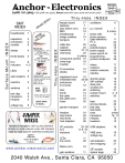 y2 Ja breadboards! 7 capacitors! connectors! crystals! 3 2 6 diodes! 4 ferrite beads! 3 ICʼs! inductors! 6 4, 5 LEDs! n r ua Hook Up; stranded, PVC, 105°C all TEN colors 28 awg thru 16 awg AND solid, 22 guage blk, red, yel, grn, wht 25ʼ spools TEST LEAD resistors! 2 switches! 5 test clips! transistors! trimpots! 6 5 2 voltage reg.! 6 bargain board! batteries! blue ribbon conn.! BNC ! breadboards! bridge rectifiers! bumpers! RE E WILOR GA 3 opto isolators! 6 Thru-Hole INDEX -H • Super Flexible • 18 AWG tinned, stranded • Rubber insulation has an O.D. of 0.135″. • 5000V, 90°C • RED or BLACK BUS BAR Tinned, solid-core copper 18, 20, 22 & 24 guage much more in stock... JUMPER WIRES female-to-female for .025” sq. pins (standard) female-to-male (male pin is also .025” standard) male-to-male (great for solderless breadboards) MANY different colors & lengths in stock... w w w. a n c h o r - e l e c t r o n i c s . c o m Thru-Hole INDEX Surface Mount INDEX SMT INDEX 6 01 17 7 19 18 7 15 7 oscillators! p.c. boards! 11 7 & online 11 photo cells! photo sensors (gap detectors)! 11 P I C! 24 cable ties! 20 policy ! 26 calipers! 22 potentiometers! 15 capacitors! 12, 13 power supply ! 22 chemicals! 23 power punch kit! 22 & online programming! 10 component carriers! 10 protocol analyzers! 26 crimp lugs! 18 crystals! 11 relays! 17 resistors! 14 D connectors! 19 resistor networks! 15 diodes! 15 robotics! 24 edgeboard conn.! 19 19 embedded test! 25-26 shorting plugs! SIP sockets! 10 enclosures! 7 slide pots! 15 E-Z hooks! 18 sockets (IC)! 10 fans! 22 soldering! 21 ferrite! 13 surface mount! 2-6 flat cable! 19 switches! 20 flat cable conn.! 19 fuses! 20 tape! 23 terminal blocks! 22 gender changers! 19 test clips! 9 test leads! 18 headers! 19 tools ! online heat shrink! 20 transistors! 16, 17 heat sinks! 22 trimpots! 15 host adapters! 26 tweekers! 15 I2C products! ICʼs inductors! LEDs! line cords! Molex conn.! opto isolators! 25, 26 USB adapters! 8, 9, 10 13 VME conn.! voltage reg.! 11 20 wall adapters! wire-wrapping! 18 ZIF sockets! 11 ziplock bags! 2040 Walsh Ave., Santa Clara, CA 95050 18 19 8 22 21 10 22 ANCHOR ELECTRONICS 2040 Walsh Ave. Santa Clara, CA 95050 (408) 727-3693 33K 47K 56K 62K 75K 100K 150K 220K 330K 470K 680K 820K 1M * 25 pcs. / ** 50 pcs. MINIMUM 0Ω 1.0 2.2 2.7 4.7 6.8 10 16 22 33 47 51 56 68 75 82 91 100 120 150 180 200 220 270 330 390 430 470 510 680 1% RESISTORS • • 38.3 39.2 40.2 41.2 42.2 43.2 44.2 45.3 46.4 47.5 48.7 49.9 51.1 52.3 53.6 54.9 56.2 57.6 59 60.4 61.9 63.4 64.9 66.5 68.1 69.8 71.5 73.2 • • 75 76.8 78.7 80.6 82.5 84.5 86.6 88.7 90.9 93.1 95.3 97.6 100 102 105 107 110 113 115 118 121 124 127 130 133 137 140 143 147 •150 154 158 162 165 169 174 178 182 187 191 196 200 205 210 215 221 226 232 237 243 249 255 261 267 274 280 • • • • • • 287 294 301 309 316 324 332 340 348 357 365 374 383 392 402 412 422 432 442 453 464 475 487 499 511 523 536 549 562 •576 590 604 619 634 649 665 681 698 715 732 750 768 787 806 825 845 866 887 909 931 953 976 1K 1.02K 1.05K 1.07K • SMD 1210 ! 8/$1 2010 ! 8/$1 2512 ! 8/$1 2512! 8/$1 2010 ! 6/$1 2512! 4/$1 2010 ! 6/$1 1210! 8/$1 1210! 8/$1 2512 ! 8/$1 2512 20/$1 2010! 8/$1 1210! 8/$1 2512! 8/$1 ! ! ! ! ! ! 50Ω ! 100 ! 200 ! 500 ! 1K ! 500K 2K 5K 10K 50K 100K 10Ω ! 500 ! 1K ! 2K ! 5K ! 200 220 240 270 300 330 360 390 430 470 510 560 680 750 820 910 1K 1.1K 1.2K 1.3K 1.5K 1.6K 2K 2.2K 2.4K 2.7K 3K 3.3K 3.6K 3.9K 4.3K 4.7K 2.15K • 2.21K 2.26K • 2.32K 2.37K 2.43K 2.49K 2.55K 2.61K 2.67K 2.74K 2.80K 2.87K 2.94K 3.01K 3.09K 3.16K 3.24K 3.32K 3.40K 3.48K 3.57K 3.65K 3.74K 3.83K 3.92K 4.02K 4.12K • 4.22K 4.32K 4.42K 4.53K 4.64K 4.75K 4.87K 4.99K 5.11K 5.23K 5.36K 5.49K 5.62K 5.76K 5.90K 6.04K 6.19K 6.34K 6.49K 6.65K 6.81K 6.98K 7.15K 7.32K 7.50K 7.68K 7.87K 8.06K •8.25K 8.45K 8.66K 8.87K 9.09K 9.31K 9.53K 9.76K 10K 10.2K 10.5K 10.7K 11K 11.3K 11.5K 11.8K 12.1K 12.4K 12.7K 13K 13.3K 13.7K 14K 14.3K 14.7K 15K 15.4K 15.8K • • 16.2K 16.5K 16.9K 17.4K 17.8K 18.2K 18.7K 19.1K 19.6K 20K 20.5K 21K 21.5K 22.1K 22.6K 23.2K 23.7K 24.3K 24.9K 25.5K 26.1K 26.7K 27.4K 28K 28.7K 29.4K 30.1K 30.9K • • • • • 31.6K 32.4K 33.2K 34K 34.8K 35.7K 36.5K 37.4K 38.3K 39.2K 40.2K 41.2K 42.2K 43.2K 44.2K 45.3K 46.4K 47.5K 48.7K 49.9K 51.1K 52.3K 53.6K 54.9K 56.2K 57.6K 59K 60.4K 5.1K 5.6K 6.2K 6.8K 7.5K 8.2K 9.1K 10K 11K 12K 15K 16K 18K 20K 22K 24K 61.9K 63.4K 64.9K 66.5K 68.1K 69.8K 71.5K 73.2K 75K 76.8K 78.7K 80.6K 82.5K 84.5K 86.6K 88.7K 90.9K 93.1K 95.3K 97.6K 100K 102K 105K 107K 110K 113K 115K 118K • • 27K 30K 33K 39K 43K 47K 51K 62K 68K 75K 91K 100K 120K 150K 180K 200K 65¢ 8 x 22Ω! 8 x 33! 8 x 150! 8 x 1K! 8 x 10K 15 x 1K 15 x 3.3K 15 x 4.7K 15 x 10K 8 x 22Ω 8 x 33 8 x 4.7K 75¢ SMT FUSES 10K 20K 50K 100K 200K 0.2A! 0.25A! 0.5A! 1.0A! 1.5A! 2.0A! 2.5A! 3.5A! 220K 240K 270K 300K 470K 560K 820K 1M 1.2M 2.4M 2.7M 3M 3.3M 4.7M 10M 20M •121K 124K 127K 130K 133K 137K 140K 143K 147K 150K 154K 158K 162K 165K 169K 174K 178K 182K 187K 191K 196K 200K 205K 210K 215K 221K 226K 232K • • • 32V 1206 F1206A0R20FW 24V 1206 R429.250 125V 6.1x2.69mm R451.500 125V 7.24x4.32mm R459001 125V 6.1x2.69mm R45101.5 32V 1206 F1206A2R00FW 125V 6.1x2.69mm R45102.5 125V 6.1x2.69mm R45103.5 390 430 470 510 560 620 680 750 820 910 1K 1.1K 1.2K 1.5K 1.6K 1.8K 2K 2.2K 2.4K 2.7K 3K 3.3K 3.6K 3.9K 4.3K 4.7K 5.1K 5.6K 6.2K 6.8K 7.5K 8.2K 9.1K 10K 11K 12K 13K 15K 16K 18K 20K 22K 24K 27K 30K 33K 36K 39K 43K 47K 51K 56K 62K 68K 75K 82K 91K 100K 110K 120K 130K 150K 160K 180K 200K 240K 270K 300K 330K 360K 390K 430K 470K 510K 560K 620K 680K 750K 820K 910K 1M 1.6M 2M 2.2M 2.7M 3M 3.3M 4.7M 6.8M 10M 20M 22M * 25 PCS. MINIMUM FOR ANY 0402 OR 0603 VALUE 464K 475K 487K 499K 511K 523K 536K 549K 562K 576K 590K 604K 619K 634K 649K 665K 681K 698K 715K 732K 750K 768K 787K 806K 825K 845K 866K 887K • 909K 931K 953K 976K 1M • 0805 ONLY 2Ω 8.25Ω 1.4M 2.21M 2.32M 3.92M 1206 ONLY .02Ω (8/$1) 3.32M .1% 10/$1.25 0805 10K &100K 1206 499Ω, 4.99