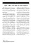 Editorial Annual Progress Report and Our Thanks to Referees Dear Colleagues: This is our seventh annual progress report to you. Once again, we want to extend to each of you our deep gratitude for your words of encouragement and support over these years. It is difficult to realize that these 7 years have flown by so rapidly. As we enter our final year of our editorial tenureship, we are grateful for the opportunity we have been given to bring to you what we truly believe is the best of the world’s research achievements. With respect to our most recent publication statistics, we are proud and pleased to tell you that the impact factor of our journal remains the highest of all hypertension journals, 4.93 for 1999. The number of manuscripts submitted to us continues to increase. Last year, 1,269 manuscripts were submitted to the journal; and, as of the end of October 2000, we have received 1,071 papers and we anticipate receiving about 1,300 submissions by year’s end. Bear in mind that this does not include the papers submitted for the Inter-American Society of Hypertension meeting, because these scientific sessions are held biennially. We continue to maintain a very speedy initial review time of 4.0 weeks from submission to first decision and 13.3 weeks from submission to final acceptance. As you know, the first figure is probably the more pertinent datum for an author to assess the promptness and efficiency of a journal’s review process. The latter figure reflects many other factors including the speediness of authors to respond to the reviewers’ comments and suggestions (including the performance of additional experiments). Special note should be made that over these past 7 years, we have increased the number of clinically oriented research papers published in Hypertension, and, at present, they comprise over one half of the manuscripts published. They represent the very best and cutting-edge work in clinical investigation and, clearly, are on par with those other papers published in our journal from the various fundamental laboratory sciences. We are also pleased that over one half of the papers submitted to Hypertension emanate from the best laboratories of countries other than the United States. For your interest, the top 5 countries submitting papers to Hypertension in this past year originate from Japan, Italy, Germany, United Kingdom, and France (in that order). Our foreign submissions have continued to increase, and they presently exceed the number of papers submitted from the United States. Thus, as of the end of October 2000, there were 711 foreign submissions as compared to 360 from the United States. We will soon implement publishing a condensed print version of the Materials and Methods section. A more detailed (but not copyedited) Materials and Methods section will be published online each month as a data supplement. This will be done in an effort to publish more manuscripts as well as for us to continue to shorten the time from acceptance to publication. Before closing, we wish to reiterate a personal comment that must be obvious to each of you. Over these years you have commented to us personally and in writing about your satisfaction with the manner in which you have related with our editorial office staff. So, once again, we want to express our total delight and deep satisfaction with our outstanding staff. We are truly proud of their commitment to the journal and to all of us who have had the pleasure of working with them. Debby Smith and Irene Hebert have done a tremendous job in relating to our authors, publisher, and the American Heart Association staff. Lisa Pineda, who recently joined us, supports their efforts. And all of us want to express our appreciation to the publication staff of Lippincott Williams & Wilkins. Working with them each day continues to be an ongoing pleasure. I also want to express my everlasting fondness, respect, and appreciation of Richard N. Ré and L. Gabriel Navar. They are superb colleagues, broadly knowledgeable, and totally committed to our journal. Finally, as we always do each year, we are pleased to credit the unselfish time provided to the journal and its readers by more than 700 reviewers and the hardworking editorial board members for their outstanding review of submitted manuscripts. These peer reviewers from all over the world underscores our point that Hypertension, as a journal, is appreciated worldwide. You may be interested that over 50 of these colleagues and friends of all of us have reviewed over 10 papers this past year. Clearly, without their interest, generosity of time and effort, and their tremendous commitment, our editorial responsibilities would not have been as rewarding. (Hypertension. 2001;37:1-5.) © 2001 American Heart Association, Inc. Hypertension is available at http://www.hypertensionaha.org 1 2 Hypertension January 2001 Aalkjaer, Christian Abboud, Hanna E. Abe, Jun-ichi Abramson, Stephen Adair, Thomas H. Agabiti-Rosei, Enrico Agarwal, Arun K. Alam, Jawed Alderman, Michael H. Alexander, J. Steve Alexander, R. Wayne Alhenc-Gelas, Francois Allen, Andrew M. Allen, Michael T. Altura, Burton M. Amerena, John Amiri, Farhad Anderson, David Anderson, Erling A. Anderson, Sharon Anderson, Warwick P. Andriantsitohaina, Romaroson Antonios, Tarek Anversa, Piero Appel, Lawrence J. Ardaillou, Raymond Ardell, Jeff Arendshorst, William J. August, Phyllis Averill, David B. Aviv, Abraham Avolio, Alberto Azizi, Michel Bachmann, Sebastian Bachvarov, Dimcho Bader, Michael Bagrov, Alexei Bairey-Merz, Noel C. Baker, Kenneth M. Bakris, George L. Bank, Norman Barajas, Luciano Barker, D. J. P. Barman, Susan M. Barnard, R. James Baron, Alain D. Barrett, Jack D. Barton, Matthias Batlle, Daniel C. Batuman, Vecihi Baumbach, Gary L. Baxter, G. F. Baylis, Christine Becker, Lewis Beevers, D. Gareth Beierwaltes, William H. Beilin, Lawrence J. Bell, David Benetos, Athanase Bennett, Max R. Berecek, Kathleen H. Berk, Bradford C. Bernar