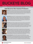 BUCKEYE Blog Newsletter of the Computer Science and Engineering Department Autumn 2013 Volume 6 Issue 2 CSE Welcomes New Assistant Professors Spyros Blanas, who recently graduated with a PhD from the University of Wisconsin, will be joining Ohio State in January 2014. His primary interests include big data. His doctoral dissertation explored how to improve the performance of data processing if main memory becomes the primary storage medium for data. Part of his dissertation work is being commercialized in Microsoft’s flagship data management product, SQL Server 2014. At Ohio State, Spyros aims to make data management more efficient by exploring how software can better interact with hardware. The goal of his research is to make data-rich applications use less energy and become more responsive. Facundo Memoli received his PhD in electrical engineering from the University of Minnesota in 2005. He then spent a few years as a postdoctoral researcher in the math department at Stanford University. From 2011 to 2013, he was a regular faculty with the School of Computer Science in the University of Adelaide, Australia. He is interested in computing and characterizing geometrical and topological properties of objects, where objects could be shapes in an image, graphs, threedimensional shapes, finite metric spaces, documents on the web, proteins, chemical compounds, high-dimensional data-sets (or point clouds), and signals. He applies ideas from geometry and topology to solve these problems in data and shape analysis. Chunyi Peng received her PhD in computer science from UCLA in 2013. Prior to joining UCLA, she worked as a researcher at Microsoft Research Asia. Her broad research interests are in networking and systems, with a focus on mobile systems, wireless networking, and cloud computing. In particular, she has studied the infrastructural limitations and solutions of current 3G/4G cellular infrastructure, as well as WiFi networks when supporting mobile devices and apps. She envisions that the Internet is entering the era of “mobile applications and services.” Her long-term plan is to work on network and systems support for mobile applications, including system architecture design, algorithm and protocol design and analysis, prototype implementation, and performance evaluation. Alan Ritter is a PhD graduate from the Department of Computer Science and Engineering at the University of Washington. He will spend a year as a postdoctoral researcher at Carnegie Mellon University before joining Ohio State in Fall 2014. His interests include natural language processing in short informal messages (e.g. Twitter), modeling lexical semantics with latent variables, modeling conversations in social media, and paraphrasing between different styles of language. At Ohio State, Alan will work towards the construction of scalable natural language understanding systems, focusing specifically on informal text, time-sensitive information contained in text, and the ever increasing availability of structured data and unstructured text. He is also interested in developing text processing techniques to enable new bio-medical data analysis applications. Anastasios Sidiropoulos received his PhD in computer science at Massachusetts Institute of Technology. After that, he was a post-doctoral fellow at the University of Toronto, a research assistant professor at the Toyota Technological Institute at Chicago, and a post-doctoral fellow at the University of Illinois at Urbana-Champaign. His work is focused on theoretical aspects of computer science, with an emphasis on the interplay among algorithms, geometry, and topology. More specifically, Anastasios is interested in understanding how ideas from these diverse mathematical areas can help us devise better methods for manipulating and understanding large, complex data. www.cse.ohio-state.edu Message from the Department Chair Dear CSE Alumni, Parents, Friends, and Colleagues, We have just started the 2013 academic year and undergraduate CSE major enrollment has grown by 10% to 721 students, while pre-major enrollment has increased 31% to 811 from last year. Total graduate student enrollment has also grown by 17% this year, up to 358 students. Another critical addition to the department this year is five new assistant professors who focus on five different areas: databases, geometrical computing, wireless networking, natural language processing, and computer science theory. The CSE department will continue to grow by adding more new faculty members next year. The university has made a goal of increasing the faculty size by ten percent over the next five years. With that goal, the first focused hiring will be on the Discovery Theme investment of big data analytics. The CSE department is working with other departments in different colleges to form a multidisciplinary team to respond to the call, which enables us to expand our talents in this critical area. I will keep you informed about our progress on our efforts to gain additional resources for the data analytics initiative. This issue continues to introduce stories and updates about our alumni and how their lives have changed after graduating. We are very proud of their achievements and contributions in their fields and to society. Besides featuring selected faculty’s research, we present three cases of CSE faculty research impact, including the Computer Vision Library (OpenCV), Hystor—a basic research project that influences the Apple’s Fusion Drive product, and the MVAPICH open source library that has been widely used in the high performance computing community. I also want to give a special thank you and welcome to Neelam Soundarajan, who this year begins his first term as the new CSE Associate Chair. The department appreciates his tireless efforts in his new role. I look forward to hearing more from you in the coming year. Xiaodong Zhang Chair and Robert M. Critchfield Professor Computer Science and Engineering T