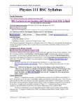 University of California at Berkeley ~ Physics 111 Laboratory BSC Syllabus Physics 111 BSC Syllabus Faculty Instructors http://socrates.berkeley.edu/~phylabs/adv/index.html BSC Lectures are on Tuesdays and Thursdays from 5:00- 6:30pm See above link for room location GSI Lab Student Instructors GSI office: 298 LeConte; lab phone: 642-1937 GSI's for Physics 111-Lab Office hours and schedules for the GSIs and professors will be posted outside 298 LeConte after the second week of classes. 111 Laboratory Staff Sr. Development Engineer and 111-Lab Manager Donald Orlando 282E LeConte Phone: 642-5328 Email: phylabs@berkeley.edu Lab Information Laboratory Phone: 624-1937 Lab hours: Mondays 12-4pm and Tuesday-Friday 1-5pm *The Physics Department Colloquium is on Mondays from 4:30- 5:30pm in 1 LeConte Hall, all students are strongly encouraged to attend. Also, tea and cookies are served (for a small fee) at 4pm every day in 375 LeConte Hall.* Computers in the Physics 111-LAB: Read the University of California computer policy You must be enrolled in the course and have a valid CalNet ID Login name to log into the computers. Save all of your data and files to the DeskTop or My Documents Folder everything else will not be saved or recoverable. You also need to purchase and save your data & files to your own USB 4GB thumb drive. Experiment and equipment information is located on the 111-Lab Share folder on your network drive from within the 111-Lab in “My Computer” on each computer or from the Physics 111-Lab Library site. Course Materials 1. All course materials can be downloaded from the Physics 111-Lab website below: http://socrates.berkeley.edu/~phylabs/ There is a Campus Wireless network in the 111-LAB rooms. What to do: =>Fill Out the Signature Card, This is located on Bspace under Quiz & Survey. Make sure your picture is available on the Berkeley bSpace Web site; If NOT bring to class a Passport photo to the 111-LAB. Signup for a BSC experiment work-station, check out books, download your BSC Lab Manuals from web site. Complete the Pre-Lab questions before coming to class. Course Material Fee Physics 111 students are assessed a Course Materials and Service Fee (CMSF) of $160 (BSC) or $115 (Advanced) to cover the cost of expendable supplies and materials used in the course. These fees are collected after the fifth week of classes and will be included in each students’ CARS (Campus Accounts Receivables System) statement. Income from the CMFS is kept in a separate account that is used only for the purchase of supplies and expendable materials for Physics 111. Equipment purchase and repair, computers, and staff salaries are paid for by the Physics Department, not by student CMSF. The Physics Department may grant individual students CMSF waivers based on demonstrable financial need. To request a refund of your CMSF, see Student Affairs Officer Claudia Trujillo in 368 LeConte Hall. UCB Physics 111 ~ BSC Syllabus-1-18-11 Page 1 of 11 University of California at Berkeley ~ Physics 111 Laboratory BSC Syllabus BSC Enrollment Checklist You will be enrolling in the BSC (Sect. 1) section of 111 Lab for 3 units unless you have taken an equivalent electronic courses (e.g., Analog & Digital circuits with Labs & LabView Programming) Please talk to the instructor if you have questions regarding whether you need to take BSC. Before The 1st Day of Class =>Fill Out the Signature Card, This is located on Bspace under Quiz & Survey. Make sure your picture is available on the Berkeley bSpace Web site; If NOT bring to class a Passport photo to the 111-LAB. Signup for a BSC experiment work-station, check out books, download your BSC Lab Manuals from web site. Complete the Pre-Lab questions before coming to class. This week, download your write-ups from the 111 Lab BSC WEB site at http://socrates.berkeley.edu/~phylabs/BSC Also check out the Introduction and Soldering videos. Signup for a 111-Lab BSC Workstation (in lab near 298 room door, no more than two (2) people per workstation) Purchase your lab notebook. This must be the Hayden Laboratory Notebook #100, which has perforated pages and makes a carbonless copy. It is available at all of the bookstores. Also purchase the text for the course. Your instructor will provide more information on this. Attend the required BSC weekly lecture: Tuesday and Thursday Nights, 5:00 to 6:30 PM (see Due Date page to see the location of lecture. (See Professor if you have a conflict.) Begin work on your first week's “Introductory Experiment.” Reports are due by 2 pm in the BSC Homework box in the 111-Lab. See dates when reports are due. BSC homework Box located on GSI's office door inside the 111-Lab 286 LeConte Hall. Students must complete all required work and turn it into the 111-LAB in order to pass the course. Any missing work will result in a final grade of "F" for the semester. You must turn in all labs, even if they're late, to pass this course. Also, copied work or plagiarism will result in a final grade of "F" for the course. For guidelines on working with a lab partner, please see "On Working Together" later in this manual. BSC COURSE INFORMATION Welcome to the Physics 111 Lab—Basic Semiconductor Circuits (BSC) course! We teach you in this course how to go into a research laboratory or industry. Before taking advanced laboratory section of the 111 Lab, you must take BSC (section 1) unless you have taken an equivalent electronic course (e.g., in the EECS dept.). BSC is a 3-unit, fifteen-week course that requires two to three, 4-hour afternoons of lab time and two, 1.5-hour lectures per week, on average, in addition to outside reading, analysis and writing. The course covers basic electronics (filters, diodes, transistors, op-amps, analog & digital circuits, D/A conversion, and LabView Programming, etc.) and measurement techniques with an approved Final Project of your choice. It will also teach you how to use equipment found in a typical physics research laboratory