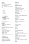 FIRST SEMESTER ZOOLOGY Sir O’s Transcript cell wall : made of cellulose (carbohydrate; chitin) corals : calcium carbonate; polyps; incomplete digestive system (gastrovascular cavity) jellyfish : cnidocytes (tentacles); nematocysts (full of venom) sponges : no stimuli/response = cell membrane; nervous tissues fruit fly : Hox genes Hierarchy of Life o o o o o o o o Atom Molecule Organelles Cells Tissues Organs Organ system Organism Sexual Reproduction o o Internal Reproduction External Reproduction Asexual Reproduction o o o o Fission : dividing into two parts Budding Fragmentation Parthenogenesis : without fertilization pori : pores (opening); tiny (ostium); large (osculum) spongocoel : large central cavity fera : to repair spicules : needle-like structure; calcium carbonate/silica; porifera (class) embryonic development : arrangement of cells sea stars/starfish caudal : posterior predator : easily scan environment to catch prey prehistoric crocodile : vibration of water; receptor peritoneum : ensure the correct placement of internal cavity; mesentery (covers) = intestine pseudo : close animal tree : ancestral flat worm : planaria dugesia acoelomate : mouth = irreversible; ventral protostome : mollusks; annelids; arthropods deuterostome : echinoderms; chordates each Kingdom have different DNA sequence codon : amino acid; protein zoa : animals anthro : joints; poda : feet choanoflagellate : intercellular junctions; true tissue : able to connect micro : small; scopos : to watch microscopic field of view dust shield ; holds the revolving nose piece yellow ring : 10x; shortest; LPO blue ring : 40x; longest; HPO oil immersion lens : 100x; white; cedar oil mechanical screws : used to move the slides condenser : also has lens iris diaphragm : regulate the amount of light concave : HPO; natural light flat : LPO; scanner CHON : common elements glycogen : storage starch : jelly-like physical evidence; amylose; amylopectin cellulose turgor pressure carapace = crabs tanning : chemical reaction (chitin) exuding chitosan phosphate head are hydrophilic ester linkages hydrophobic : fats cannot be mixed with water hydrophilic : water loving saturated : bad; tallow; no double bond unsaturated : 1 or more double bond; replenish membrane system in our cells endothelium : wall of blood vessels phospholipids : bile layer linoleic : no trans fat hematoma : blocking of blood; hemorrhage in brain good and bad cholesterol dilate receptor proteins : ease for movement actin(sarcomere : functional unit of skeletal muscle)-myosin filament : structure colostrum : proteins amino globin : antibodies microtubules : filament peptides : one R-group : side chain; identity nonpolar amino acids : hydrophobic properties collagen : bind tissues, bones and laminae; three polypeptide chains red blood cells : bio-concave disk; folding normal protein : linear; denaturation : longer uncoiled chaperonin 5’ – 3’ (left); 3’ – 5’ (right) muscle cell : contraction; locomotion red blood cells : hemoglobin neurons; dendrites; synapses = transmission of information neurotransmitter white blood cells ilium microvilli yellow = bacteria green = virus cilia trachea hydrogen enzymes : unregulated release large cell : would not function properly; metabolic processes slows down big : lesser surface area; slow metabolism small : more surface area; fast metabolism protein molecules : pores; allow passage of the substances in the cell microtubules motor proteins polyribosome : attached to the surface of endoplasmic reticulum thyroid follicles : store calcium; sarcoplasmic reticulum = skeletal muscles/skeleton liver : detoxifies poison; have peroxisome cisternae : proteins Golgi : modifies proteins; exocytosis; moving out of products to the cells; transport by endomembrane system components lysosome C53 : if not released = regulated dead cell; cancer = tumor plasmin cytoskeleton : net-like; bead-shaped phagocytosis : membrane axon appendage : extension of the cell myosin : head muscle (middle) : skin; cells are flattened epithelial : red nervous-end keratinocyte : made up the epithelial tissues of cell parenchyma : bone tissue; characteristic cell of any organ stroma : supporting structures present in any type of tissue endomysium : bundles of bone basement membrane : foundation; connective tissues where cells rest on intercellular junction : attachment cell adhesion molecules innervated : nerve supply regenerative : germinative basal : bottom stratum corneum : outer skin nervous : collective cilia : located in apical or outermost layer of cell; found in trachea pseudo : false stratified : layering transitional : organs receiving fluid from the kidney (urinary bladder; ureter; pelvic); globular; flattened peritoneal : abdominal cavity peritoneum : tissue; covers organ; gaseous infectoral tract pleural : lungs pericardial cavity : heart kidney : glomerulus; renal corpuscles alveoli : gas exchange goblet : cells responsible for production of mucus sperm cell and ovum/egg cell : reproductive cells timbrae : end of fallopian tube; stimuli congestion stratified : mitotic division; hair; skin subtype of epithelium : vagina = stratified squamous nonkeratinized epithelium bunion connective tissue : mast cell; fibroblast/fibrocyte motor proteins : dynein; cilia and flagella somite chromatophore : color patterns of the skin dermis : protection fibers : slows down the entry of microorganisms macrophages : eats microorganism mast cell : releases histamine and serotonin; allergic reactions muscle : striated; skeletal muscle fiber/cell hypodermis (fascia) : covers muscle animal major layers = epidermis; dermis basal animal : sponges = Ediacaran fauna; external covering = pinacoderm parenchyma : characteristic cell keratinocytes : parenchyma of epidermis hepatocytes : liver parenchyma amphibian : epidermis = duct tears; dermis = stratum basale and stratum germinativum (outward); poison and mucus glands; surface of the skin (moist; slimy) : for protectio