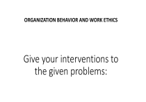 ORGANIZATION BEHAVIOR AND WORK ETHICS