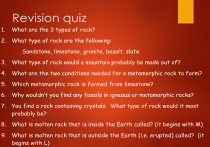 2. What type of rock are the following: