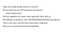 No talking, no phones, and *NO RESTROOM PASSES during test
