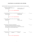 CHAPTER 20: ALL QUESTIONS AND ANSWERS MULTIPLE CHOICE. Choose the one alternative that best completes the statement or answers the question. 1) Lymph leaves a lymph node via A) afferent lymphatic vessels C) the cortical sinus . 1) B) efferent lymphatic vessels D) the subscapular sinus A) B) answers available at http://bit.ly/39WeVnL C) D) 2) Large clusters of lymph nodes occur in all of the following locations except the A) cervical region B) axillary region C) lower extremities D) inguinal region . 2) A) B) C) answers available at http://bit.ly/39WeVnL D) 3) Lymph capillaries are absent in all but which of the following? A) bones and teeth B) CNS C) bone marrow D) digestive organs 3) A) B) C) D) 4) Select the correct statement about lymphoid tissue. A) Lymphoid macrophages secrete antibodies into the blood. B) Lymphoid tissue is predominantly reticular connective tissue. C) Once a lymphocyte enters the lymphoid tissue, it resides there permanently. D) T lymphocytes act by ingesting foreign substances. 4) A) B) C) D) 5) Which of the following is not a mucosa- associated lymphatic tissue? A) Peyer's patch B) appendix C) thymus A) B) C) D) answers available at http://bit.ly/39WeVnL 1 5) D) tonsil 6) Which of the following is not a method that maintains lymph flow? A) breathing B) valves in lymph vessel walls C) skeletal muscle contraction D) smooth muscle contraction 6) A) B) C) D) 7) Functions of the spleen include all of those below except A) storage of blood platelets B) storage of iron C) removal of old or defective blood cells from the blood D) forming crypts that trap bacteria . 7) A) B) C) D) 8) The thymus is the only lymphoid organ that does not: A) produce hormones B) have a cortex and medulla C) have lymphocytes D) directly fight antigens 8) A) B) C) answers available at http://bit.ly/39WeVnL D) 9) Which cells become immunocompetent due to thymic hormones? A) monocytes B) basophils C) lymphocytes 9) D) macrophages A) B) C) D) 10) Which of the following is not a normal component of lymph? A) red blood cells B) plasma proteins C) ions D) water A) B) C) D) answers available at http://bit.ly/39WeVnL 2 10) 11) Which lymphatic structure drains lymph from the right upper limb and the right side of the head and thorax? A) lumbar trunk B) right lymphatic duct C) cisterna chyli D) thoracic duct 11) A) B) C) D) 12) The tonsils located at the base of the tongue are the A) palatine tonsils C) lingual tonsils . B) Peyer's tonsils D) pharyngeal tonsils 12) A) B) C) D) 13) Select the correct statement about lymphocytes. A) T cells are the precursors of B cells. B) The two main types are T cells and macrophages. C) T cells are the only form of lymphocyte found in lymphoid tissue. D) B cells produce plasma cells, which secrete antibodies into the blood. 13) A) answers available at http://bit.ly/39We VnL B) C) D) 14) Lymphoid tissue that appears as a swelling of the mucosa in the oral cavity is called a(n) A) Peyer's patch B) tonsil C) appendix D) thymus . 14) A) B) C) D) answers available at http://bit.ly/39WeVnL 15) Which of the following is not a function of lymph nodes? A) produce lymphoid cells and granular WBCs B) act as lymph filters and activate the immune system C) produce lymph fluid and cerebro- spinal fluid D) serve as antigen surveillance areas A) B) C) D) 3 15) 16) A sentinel node is . A) a lymph node found in the intestinal lamina propria B) a small node in the spleen C) the first node at the junction of all the lumbar trunks D) the first node to receive lymph from an area suspected to be cancerous 16) A) B) C) D) answers available at http://bit.ly/39WeVnL 17) Digestive tract- associated lymphatic tissue includes all of the following except A) islets of Langerhans B) lingual tonsils C) palatine tonsils D) Peyer's patches . 17) A) B) C) D) 18) Select the correct statement about lymph transport. A) Lymph transport is faster than that occurring in veins. B) Lymph transport is only necessary when illness causes tissue swelling. C) Lymph transport depends on the movement of adjacent tissues, such as skeletal muscles. D) Under normal conditions, lymph vessels are very high- pressure conduits. 18) A) B) C) D) 19) What is a bubo? A) an infected lymph node C) an infected Peyer's patch 19) B) a wall in a lymph node D) a lobe of the spleen A) B) C) D) 20) Which of the following are functions of lymphoid tissue? A) house and provide a proliferation site for lymphocytes B) house and provide a proliferation site for neutrophils C) furnish an ideal surveillance vantage point for lymphocytes and macrophages D) A and C A) B) answers available at http://bit.ly/39WeVnL C) D) 4 20) 21) The thymus is most active during A) fetal development C) childhood . 21) B) old age D) middle age A) B) C) D) answers available at http://bit.ly/39WeVnL 22) What effect does age have on the size of the thymus? A) The size of the thymus decreases continuously from birth to death. B) The thymus is not affected by age. C) The size of the thymus increases continuously from birth to death. D) The thymus initially increases in size and then decreases in size from adolescence through old age. 22) A) B) C) D) 23) Which of the following is not a function of the lymphatic system? A) carrying out immune responses B) draining excess interstitial fluid C) transporting respiratory gases D) transporting dietary fats 23) A) B) C) D) 24) Antibodies that act against a particular foreign substance are released by A) lymph nodes B) medullary cords C) plasma cells D) T lymphocytes . 24) A) answers available at http://bit.ly/39We VnL B) C) D) 25) Small organs associated with lymphatic vessels are termed . A) lymph nodes B) axillary nodes C) cisterna chyli A) B) C) D) answers available at http://bit.ly/39WeVnL 5 25) D) lymph follicles 26) The lymphatic capillaries are . A) as permeable as blood capillaries C) completely impermeable 26) B) more permeable than blood capillaries D) less permeable than blood capillaries A) B) C) D) 27) Both lymph a