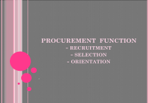 PROCUREMENT FUNCTION - RECRUITMENT - SELECTION - ORIENTATION . HR PROCESSES – AN EMPLOYEE LIFE CYCLE RECRUITMENT & SELECTION RECRUITMENT & SELECTION NEEDS Human Resource Planning Determine Recruitment and Selection Needs Job Analysis RECRUITMENT Meaning: In simple terms, recruitment is understood as the process of searching for & obtaining applicants for jobs, from among whom the right people can be selected. Definition: “It is the process of finding & attracting capable applicants for employment. The process begins when new recruits are sought and ends when their applications are submitted. The result is a pool of applicants form which new employees are selected.” CONTD…… William F Glueck – Recruitment acts set of activities and organization uses to attract job candidates possessing appropriate characteristics to help the organization reach its objectives. Byars & Rue – Recruitment involves seeking & attracting a pool of people from which qualified candidates for job vacancies can be chosen PURPOSE & IMPORTANCE 1. 2. 3. 4. 5. 6. 7. Determine the present & future requirements of the organization. Identifying potential job applicants. Increase the pool of job candidates at minimum cost. Help increase the success rate of the selection process by reducing the number of visibly under qualified or overqualified job applicants. Help reduce the probability of candidates leaving the organization. Meet the organization’s legal & social obligations regarding the composition of its workforce. Increase organizational & individual effectiveness Identify vacancy Prepare job description and person specification Advertising the vacancy Managing the response Short-listing Arrange interviews Conducting interview and decision making The recruitment process is immediately followed by the selection process i.e. the final interviews and the decision making, conveying the decision and the appointment formalities. FACTORS GOVERNING RECRUITMENT Internal Forces External Factors •Supply & Demand •Recruitment Policy •Unemployment rate •HRP Recruitment •Size of the Firm •Labour Market •Cost •Political – social •Growth & Expansion •Image Personnel Planning Job Vacancies Job Analysis Recruitment Planning Employee Requisition Screening - Numbers - Types Strategy Development -Where -How -When Potential Hires Selection Applicant Pool RECRUITMENT PROCESS Evaluation & Control Headhunting refers to the approach of finding and attracting the best experienced person with the required skill set. Headhunting is also a recruitment process involves convincing the person to join your organization. SOURCES OF RECRUITMENT INTERNAL SOURCES OF RECRUITMENT Persons who are already working in an organization constitute the ‘internal sources’. It includes the existing employees, the retrenched & retired employees & dependents of deceased employees. The way of internal recruitment is generally through transfers, promotions, & other job changes. Merits: - Economical - Suitable - Reliable - Satisfying Demerits - Limited Choice - Inbreeding - Inefficiency - Bone of Contention 1.PROMOTIONS & TRANSFERS • Promotion involves the movement of employees from a lower level to a higher level with changes in duties, responsibilities, status & value. • Transfer, however, involves lateral or horizontal movement within the same grade from one job to another. It might lead to changes in duties & responsibilities & sometimes the working conditions but the status & salary are not affected. 2. EMPLOYEE REFERRALS: • It means making use of recommendations from a current employee regarding a job applicant. The logic is that they serve as a reliable source. • Companies offer rich rewards to employees whose recommendations are accepted. • For E.g.: Citibank offers Rs. 50,000 to its employees for every vacancy filled up by the bank on the basis of their referral. 3. JOB POSTING It means notifying the vacant positions, circulating publications, or announcing at staff meetings inviting the employees to apply for the positions available within the organization. It offers a chance to highly qualified candidates working with the organization to look for growth opportunities within the organization itself. EXTERNAL SOURCES OF RECRUITMENT These include employees working in other organizations, job aspirants registered with employment exchanges, students from reputed educational institutions, candidates forwarded by search firms & contractors, candidates responding to advertisements issued by the organizations, unsolicited applications/walk-ins. Merits: - Wide Choice - Injection of Fresh Blood - Motivational Force - Long Term Benefits Demerits: - Expensive - Time Consuming - De motivating - Uncertainty 1. CAMPUS RECRUITMENT It is a way of recruitment by visiting & participating in college campuses & their placement centers to pick up job aspirants having the requisite technical & professional skills. A preliminary screening is done within the campus & the short listed candidates are then subjected to the remainder of the selection process. For Instance: Companies like Asian Paints, TCS, LG, Google are nowadays following this type of method where they select students from reputed educational institutions like IIT's & IIM's. 2. ADVERTISEMENTS This source includes advertisements in newspapers; trade, professional & technical journals; radio & television etc. This method is appropriate when: (a) organization intends to reach a large target group (b) organization wants a fairly good number of talented people who are geographically spread out. 3.EMPLOYMENT EXCHANGES • It is an office setup by the government under the Employment Exchanges Act or compulsory Notification of Vacancies Act, 1959. • These are created all over the country for helping the unemployed youth, ex-military personnel & physically handicapped people. • According to the Act, the employer's are supposed to notify the vacancies arriving in their establishm