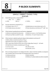 SUPER PROBLEMS IN INORGANIC CHEMISTRY p-BLOCK ELEMENTS P-BLOCK ELEMENTS CHAPTER EXERCISE-1 [SINGLE CORRECT CHOICE TYPE] Boron Family Q.1 In the following reaction, compound (X) is B2H6 + 2X 2BH3X, (A) NH3 Q.2 Q.3 Q.4 (B) R3N (C) RNH2 (D) R2NH Incorrect statement for compound TlI3, is : (A) Oxidation state of Tl is +1. (B) Hybridization of central iodine atom is sp3d. (C) All iodine atoms are not neutral. (D) Ionic interactions exists between Tl3+ and I– ions. Which statement regarding benzene and borazine is incorrect ? (A) Both are isostructural and isoelectronic (B) Both have same no. of sp2 hybridised atoms (C) Reactivityof both towards HCl is same (D) Both have 12 and 3 bonds in them Which statement is correct regarding the diagonal relationship between Be and Al? (I) Both carbides on hydrolysis produces CH4 gas (II) Both Be and Al oxides are amphoteric in nature. (III) In vapour state chlorides of both exist as chloro-bridge dimer having (3c – 4e) bonds (IV) Both Be andAl nitrides on hydrolysis give NH3 gas. Q.5 (A) I, II are correct (B) I, III are correct (C) I, II, III, IV are correct (D) Only III is correct Borax on heating strongly above its melting point melts to a liquid. which then solidifies to a transparent mass commonly known as borax bead. The transparent glassy mass consists of (A) Sodium pyroborate (B) Boric anhydride (C) Sodium metaborate (D) Mixture of sodium metaborate and boric anhydride chemstudios by pms Page # 288 SUPER PROBLEMS IN INORGANIC CHEMISTRY Q.6 p-BLOCK ELEMENTS The incorrect statement regarding 'X' in given reaction is : BF3 + LiAlH4 ether (X) + LiF + AlF3 (A) 'X' is a toxic gas (B) On hydrolysis 'X' produces boric acid (C) 'X' is electron deficient and behaves as lewis acid (D) Structure of 'X' In similar to C2H6 Q.7 Select correct statement: (A) F – N – F in NF3 > Cl – N – Cl in NCl3 (B) AlCl3.6H2O is an electron deficient compound (C) Order of stability: BF3 > BCl3 > BBr3 (D) B – O bond strength: B(OH)3 > B(OH)2Me Q.8 Which of the following molecular species does not act Lewis acid. (A) B2H6 Q.9 (B) BeF2 (C) AlCl3 (D) BF4– 450 K For reaction BF3 + NaH P + Q If Q is sodium salt, then incorrect statement is : (A) P is an electron deficient compound (B) P forms adduct with PH3 (C) Acidified MnO2 oxidizes Q into a coloured gas (D) Q forms white precipitate with CaCl2 solution Q.10 Which of the following statement regarding boric acid (H3BO3) is false? Q.11 (A) It acts as weak monobasic Lewis Acid (B)All atoms are lying in same plane (C) It contains H-bonding in solid state (D) It acts as tribasic acid When borax is dissolved in water (A) Only B(OH)3 is formed (B) Only B(OH)4– is formed (C) Both B(OH)3 and B2O3 are formed (D) Both B(OH)3 and [B(OH)4]– are formed Q.12 Which statement is correct? (A) Tl3+ salts act as good oxidising agents (B) In borax bead test the coloured ions give characteristic coloured bead due to formation of metal phosphates (C) BCl3 and AlCl3 both are lewis acids butAlCl3 is stronger lewis acid than BCl3 (D) Boric acid is a protonic acid chemstudios by pms Page # 289 SUPER PROBLEMS IN INORGANIC CHEMISTRY p-BLOCK ELEMENTS Q.13 Select incorrect statement for Al (A) Conc. HNO3 can be stored in aluminium container (B)Aluminium wire is used to make transmission cables (C) Mixture of Al & NaOH is used to open drain (D)Aluminium utensils are used to kept water over night Q.14 Anhydrous AlCl3 is covalent however when it is dissolved in water hydrated ionic species are formed. This transformation is owing to : (A) The trivalent state ofAl. (B) The large hydration energy of Al3+ (C) The low hydration energy of Al3+ (D) The Polar nature of water hot 1 2 Q.15 H3BO3 X Y red B2O3, if T1 < T2 then X and Y respectively are T T (A) X = Metaboric acid and Y = Tetraboric acid (B) X = Tetraboric acid and Y = Metaboric acid (C) X = Borax and Y = Metaboric acid (D) X = Tetraboric acid and Y = Borax Q.16 Borax is actually made of two tetrahedra and two triangular units joined together and should be written as: Na2[B4O5(OH)4]·8H2O Consider the following statements about borax : a. Each boron atom has four B–O bonds b. Each boron atom has three B–O bonds c. Two boron atoms have four B–O bonds while other two have three B–O bonds d. Each boron atom has one –OH groups Select correct statement(s): (A) a, b (B) b, c (C) c, d (D) a, c Q.17 Select correct statement about B2H6 (A) Bridging groups are electron-deficient with 12 valence electrons (B) It has 2c - 2e B–H bonds (C) It has 3c - 2e B–H–B bonds (D) All of above are correct statements chemstudios by pms Page # 290 SUPER PROBLEMS IN INORGANIC CHEMISTRY p-BLOCK ELEMENTS Q.18 Aluminium vessels should not be washed with materials containing washing soda because (A) Washing soda is expensive (B) Washing soda is easily decomposed (C) Washing soda reacts with aluminium to form soluble aluminate (D) Washing soda reacts with aluminium to form insoluble aluminium oxide. C N2 Q.19 (a) Al A, (b)Al B, Product A and B on hydrolysis yields respectively.. (A) Ammonia and acetylene (B) Ammonia and methane (C) Nitric oxide and acetylene Q.20 n mole ic acid of Boron –nH2O 'X' (Acid)n if n=4 (D) None 'Y' 1 mole –H 2O Compound 'Z' –2H + Compound +2Na 10H2O Salt of 'P' Compound Compound + (It is used as a Antiseptic in medicinal soap's preparation) 'Z' Choose the incorrect option regarding above paragraph. (A) In both compound 'Y' and 'P' Boron has same hybridisation. (B) In both compound 'Y' and 'P' B–O–B linkage is in Bent form (C) Compound 'P' has more B–O–B linkage as compare to compound 'Y'. (D) In compound 'P' two Boron are in triangular form and two Boron are in tetrahedral from but in compound 'Y' all Boron are in triangular form. Q.21 Borax is converted into amorphous Boron by following steps X Y Borax H 3BO3 B2O3 B X and Y are respectively (A) HCl, Mg (B) HCl, C (C) , Al (D) HCl, Al Q.22 The isolation of 'B' from B2O3 can be done by the following steps. dil.H 2SO 4 