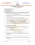بسم هللا الرحمن الرحيم Sudan International University Department of Pharmacology & Pharmacy Practice جامعة السودان العالمية قسم علم األدوية والممارسة الصيدالنية Pharmacology Tutorials Program 3rd. Years Semester2 1. Define the following term i. Drug permeation: ..................................................................................................... ii. Ion trapping phenomena: ........................................................................................ iii. Facilitated diffusion: ............................................................................................. 2. Classify the following statements as True or False with an explanation i. GIT motility doesn’t affect drug absorption. [ ii. Pharmacokinetics is the qualitative study of drug movement in, through and out of the body. [ ] iii. Water and small molecules can easily cross the membrane. [ iv. Passive diffusion according to concentration gradient require energy. [ ] v. Ionized molecules is highly absorbed than non-ionized molecules. [ ] vi. According to ion trapping effects weak acid trapped in high ph. [ ] vii. Drug with large Mwt absorbed at higher rate from drug with small Mwt. [ ] ] ] 3. Justify the following statements i. basic lipophilic molecules have higher rate of absorption from small intestine higher than other one. .............................................................................................................................. ii. Absorption rate from duodenum is higher than ileum. .............................................................................................................................. .............................................................................................................................. iii. Temperature will affect the rate of drug absorption from subcutaneous administration. ................................................................................................................................. ................................................................................................................................. iv. Intramuscular administration has higher bioavailability than subcutaneous administration. .................................................................................................................................. .................................................................................................................................. SIU.Ph.P/2018 Page 1 of 8 بسم هللا الرحمن الرحيم Sudan International University Department of Pharmacology & Pharmacy Practice جامعة السودان العالمية قسم علم األدوية والممارسة الصيدالنية v. drug with pka 3.5 higher absorbed from basic medium. ..................................................................................................................................... ..................................................................................................................................... vi. volume of distribution is called apparent volume. ..................................................................................................................................... ..................................................................................................................................... 4. Specialized transporter system contains i-…………………………………………………………………………………… ii-…………………………………………………………………………………… iii-…………………………………………………………………………………… 5. Compare between drug permeation process ..................................................................................................................................... ..................................................................................................................................... ..................................................................................................................................... 6. Mention the two types of active transporter i-…………………………………………………………………………………… ii-…………………………………………………………………………………… 7. Mention factor affecting oral bioavailability ..................................................................................................................................... ..................................................................................................................................... ..................................................................................................................................... 8. Volume of Distribution is mainly depending on ..................................................................................................................................... ..................................................................................................................................... ..................................................................................................................................... 9. Explain the differences between endocytosis and pinocytosis ……………………………………………………………………………………… ……………………………………………………………………………………… ……………………………………………………………………………………… 10.Mention the four process in pharmacokinetic …………………..,…………………,……………………..,…………… SIU.Ph.P/2018 Page 2 of 8 بسم هللا الرحمن الرحيم Sudan International University Departme