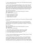 1. A nurse is teaching about the goals of Healthy People 2020. Which information should the nurse include in the teaching session? ~ The nurse should include eliminating health disparities in America. Healthy People 2020 promotes a society in which all people live long, healthy lives. There are four overarching goals: (1) attain high-quality, longer lives free of preventable disease, disability, injury, and premature death; (2) achieve health equity, eliminate disparities, and improve the health of all groups; (3) create social and physical environments that promote good health for all; and (4) promote quality of life, healthy development, and healthy behaviors across all life stages. DIF: Understand (comprehension) OBJ: List the four general Healthy People 2020 public health goals for Americans. TOP: Teaching/Learning MSC: Health Promotion and Maintenance *a. b. c. d. Eliminate health disparities in America. Eliminate health behaviors in America. Eliminate quality of life in America. Eliminate healthy life in America. 2. A nurse is following the goals of Healthy People 2020 to provide care. Which action should the nurse take? ~ Healthy People 2020 includes four goals, one of which is to create social and physical environments that promote good health for all. The goals do not include continuing current behaviors to reduce stress, focusing only on health changes for communities, or focusing on fast recuperation. DIF: Apply (application) OBJ: List the four general Healthy People 2020 public health goals for Americans. TOP: Implementation MSC: Health Promotion and Maintenance a. b. *c. d. Allow people to continue current behaviors to reduce the stress of change. Focus only on health changes that will lead to better local communities. Create social and physical environments that promote good health. Focus on illness treatment to provide fast recuperation. 3. A nurse is using the World Health Organization definition of health to provide care. Which area will the nurse focus on while providing care? ~ The World Health Organization (WHO) defines health as a “state of complete physical, mental, and social well-being, not merely the absence of disease or infirmity.” Therefore, nurses’ attitudes toward health and illness should consider the total person, as well as the environment in which the person lives. All people free of disease are not necessarily healthy. Strictly personal and a focus only on pathological states do not correlate to WHO’s definition. DIF: Apply (application) OBJ: Discuss the definition of health. TOP: Implementation MSC: Management of Care a. *b. c. d. Focusing on helping patients be disease free Providing care that involves the whole person Assuring that care is strictly personal in nature Directing focus only on the pathological state 4. The nurse is preparing a smoking cessation class for family members of patients with lung cancer. The nurse believes that the class will convert many smokers to nonsmokers once they realize the benefits of not smoking. Which health care model is the nurse following? ~ The health belief model addresses the relationship between a person’s beliefs and behaviors. The holistic health model recognizes the natural healing abilities of the body and incorporates complementary and alternative interventions such as music therapy. The health promotion model focuses on the following three areas: (1) individual characteristics and experiences, (2) behavior-specific knowledge and affect, and (3) behavioral outcomes, in which the patient commits to or changes a behavior. Maslow’s’ hierarchy of needs is based on the theory that all people share basic human needs, and the extent to which basic needs are met is a major factor in determining a person’s level of health. DIF: Analyze (analysis) OBJ: Discuss the health belief, health promotion, basic human needs, and holistic health models to understand the relationship between patients’ attitudes toward health and health practices. TOP: Implementation MSC: Health Promotion and Maintenance *a. b. c. d. Health belief model Holistic health model Health promotion model Maslow’s hierarchy of needs 5. A nurse is using Maslow’s hierarchy to prioritize care for an anxious patient that is not eating and will not see family members. Which area should the nurse address first? ~ According to Maslow, in all cases an emergent physiological need takes precedence over a higher-level need. Nutrition is a physiological need and should be addressed first. Anxiety, mental health, and not seeing family members are all higher-level needs. DIF: Analyze (analysis) OBJ: Discuss the health belief, health promotion, basic human needs, and holistic health models to understand the relationship between patients’ attitudes toward health and health practices. TOP: Implementation MSC: Management of Care a. *b. c. d. Anxiety Not eating Mental health Not seeing family members 6. The patient is reporting moderate incisional pain that was not relieved by the last dose of pain medication. The patient is not due for another dose of medication for another 2 1/2 hours. The nurse repositions the patient, asks what type of music the patient likes, and sets the television to the channel playing that type of music. Which health care model is the nurse using? ~ The holistic health model recognizes the natural healing abilities of the body and incorporates complementary and alternative interventions such as music therapy. The health belief model addresses the relationship between a person’s beliefs and behaviors. The health promotion model notes that each person has unique personal characteristics and experiences that affect subsequent actions. The basic human needs model believes that the extent to which basic needs are met is a major factor in determining a person’s level of health. Maslow’s hierarchy of needs is a model that nurses use to understand the interrelationships of basic human needs. DIF: Apply (application) OBJ: 