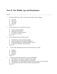 Part II. The Middle Age and Renaissance Student: ___________________________________________________________________________ 1. The phrase Middle Ages refers to the period of European history spanning A. 450-1000. B. 1000-1150. C. 1150-1450. D. 450-1450. Answer: D 2. The Renaissance may be described as an age of A. curiosity and individualism. B. exploration and adventure. C. the "rebirth" of human creativity. D. All answers are correct. Answer: D 3. The intellectual movement called humanism A. condemned any remnant of pagan antiquity. B. focused on human life and its accomplishments. C. treated the Madonna as a childlike unearthly creature. D. focused on the afterlife in heaven and hell. Answer: B 4. The dominant intellectual movement of the Renaissance was called A. feudalism. B. humanism. C. classicism. D. paganism. Answer: B 5. Which of the following statements is not true of humanism? A. The Madonna was treated as a beautiful young woman. B. The humanists were basically atheistic in their beliefs. C. The humanists were captivated by the pagan cultures of ancient Greece and Rome. D. The humanists focused on human life and its accomplishments. Answer: B 6. In the Middle Ages, most important musicians were A. priests. B. traveling entertainers. C. peasants. D. women. Answer: A 7. A virtual monopoly on learning during the Middle Ages was held by A. knights in castles. B. professors in universities. C. monks in monasteries. D. wandering minstrels or jongleurs. Answer: C 8. During the Middle Ages, women A. were not permitted to sing in church. B. sang at all church services. C. could sing only in monasteries. D. were not permitted to participate in church services. Answer: A 9. Church officials expected monks to sing with A. proper pronunciation and tone quality. B. the accompaniment of organs and other instruments. C. proper attention to the wishes of the bishop. D. the members of the congregation. Answer: A 10. Bernard of Clairvaux ordered his monks to sing A. quietly with reverence. B. vigorously with manliness. C. loudly with boisterous tone quality. D. somberly with proper dignity. Answer: B 11. The church frowned on instruments because of their A. association with minstrels and jongleurs. B. sacred quality and background. C. earlier role in pagan rites. D. use in early Jewish religious ceremonies. Answer: C 12. The use of organs in church A. added a sacred quality to the mass. B. made it possible for more musicians to be employed. C. frustrated the nobles in their attempts to control the church. D. distracted the listeners from worship. Answer: D 13. What we know about instruments in church comes mainly from A. the pictures and literary descriptions of the day. B. surviving musical manuscripts. C. the work of Pope Gregory the Great. D. the work of Hildegard of Bingen. Answer: A 14. Most medieval music was A. instrumental. B. vocal. C. for the piano. D. for the organ. Answer: B 15. We know from paintings and literary descriptions of the Middle Ages that A. instruments were used. B. trumpets and trombones were prominent. C. instruments were seldom used. D. large orchestras existed. Answer: A 16. The view of the later medieval church on music during religious services was that it should be A. performed by as many musical instruments as possible. B. used only as a discreet accompaniment. C. banned entirely. D. used only with wind instruments. Answer: B 17. Church authorities in the Middle Ages ____________________ their religious services. A. encouraged the use of music as a highlight of B. forbade the use of music in C. wanted music only as a discreet accompaniment to D. preferred instrumental music in Answer: C 18. The music the Medieval monks sang was called A. contemporary gospel. B. Gregorian chant. C. estampies. D. Trouvère songs. Answer: B 19. Gregorian chant A. is set to sacred Latin texts. B. retained some elements of the Jewish synagogue of the first centuries after Christ. C. was the official music of the Roman Catholic church for more than 1,000 years. D. All answers are correct. Answer: D 20. Gregorian chant A. is monophonic in texture. B. is polyphonic in texture. C. is homophonic in texture. D. has no texture. Answer: A 21. Gregorian chant consists of A. one instrument playing alone. B. melody sung without accompaniment. C. several voices singing in harmony. D. several instruments playing together. Answer: B 22. Which of the following is not true of Gregorian chant? A. It conveys a calm, otherworldly quality. B. Its rhythm is flexible, without meter. C. The melodies tend to move by step within a narrow range of pitches. D. It is usually polyphonic in texture. Answer: D 23. Gregorian chant is seldom heard today because A. it is very difficult to sing, and those who know how are dying out. B. the Second Vatican Council of 1962-65 decreed the use of the vernacular in church services. C. it is too old-fashioned for modern services. D. All answers are correct. Answer: D 24. Gregorian chant melodies tend to move A. by leaps over a wide range of pitches. B. stepwise within a narrow range of pitches. C. infrequently, remaining on a single tone for long stretches. D. only by perfect intervals. Answer: B 25. Gregorian chant is named after Pope Gregory I, who A. composed all the chants presently in use. B. had his name put on the first printed edition. C. was credited by medieval legend with having created it. D. wrote the texts for the chants. Answer: C 26. Pope Gregory the Great A. composed all of the Gregorian chants. B. published all of the Gregorian chants. C. reorganized the Catholic church liturgy during his reign from 590 to 604. D. All answers are correct Answer: C 27. The two types of services at which monks and nuns sang were A. the salvation service and the holiness service. B. the monastery and the convent. C. the office and the mass. D. the worship service and the praise service. Answer: C 28. The highlight of the day for monks and nuns was A. the service before sunri