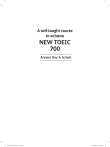 A self-taught course to achieve NEW TOEIC 700 Answer Key & Scripts dap an-New TOEIC 700-1-23.indd 1 12/26/2018 4:27:16 PM Answer Key & Scripts Actual Test 01 167 172 177 182 187 192 197 p.29 ° Answer Key PART 1 1 6 (D) (C) 2 (B) 3 (B) 4 (B) 5 (D) 8 13 18 23 28 (C) (C) (B) (A) (C) 9 14 19 24 29 (A) (B) (A) (C) (A) 10 15 20 25 30 (B) (A) (B) (B) (B) 11 16 21 26 31 (C) (C) (B) (A) (A) 33 38 43 48 53 58 63 68 (B) (D) (C) (B) (C) (B) (A) (B) 34 39 44 49 54 59 64 69 (A) (B) (B) (D) (B) (B) (B) (C) 35 40 45 50 55 60 65 70 (D) (B) (C) (B) (D) (B) (C) (B) 36 41 46 51 56 61 66 (A) (A) (A) (C) (C) (A) (B) 72 77 82 87 92 97 (C) (B) (B) (B) (D) (B) 73 78 83 88 93 98 (C) (B) (C) (D) (C) (C) 74 79 84 89 94 99 (D) (A) (A) (A) (B) (D) 75 80 85 90 95 100 (C) (D) (D) (D) (B) (A) 102 107 112 117 122 127 (D) (A) (C) (B) (C) (D) 103 108 113 118 123 128 (C) (A) (C) (C) (C) (D) 104 109 114 119 124 129 (B) (C) (B) (A) (B) (B) 105 110 115 120 125 130 (C) (B) (D) (A) (C) (A) (A) (A) (B) (A) (C) (C) (C) 168 173 178 183 188 193 198 (C) (B) (D) (B) (D) (B) (A) 169 174 179 184 189 194 199 (C) (C) (D) (C) (B) (C) (B) 170 175 180 185 190 195 200 (A) (A) (B) (A) (B) (A) (B) 171 176 181 186 191 196 (C) (A) (B) (A) (B) (D) PART 2 7 12 17 22 27 (B) (A) (C) (A) (C) ° PA R T 1 1 (A) A lecture is being given in a boardroom. (B) The woman has gotten up from the chair. (C)A diagram is being drawn on the board by the woman. (D) Some documents have been placed on the table. 2 (A) (B) (C) (D) 3 (A)Customers are trying on some new shirts in the store. (B)A large number of shirts are being displayed on hangers. (C) The clothes are currently on sale for low prices. (D) A picture is hanging from the wall above the clothes. 4 (A)Several participants in the meeting appear to be bored. (B) All of the chairs have been pushed under the table. (C)A computer has been placed in the center of the table. (D) The decision to hold the meeting has been tabled. 5 (A) (B) (C) (D) 6 (A) The seated people are all facing the same direction. (B)The outdoor dining area at the café is completely full. (C) One man is walking in front of the seated individuals. (D) Waiters are bringing plates of food to the diners. PART 3 32 37 42 47 52 57 62 67 (A) (B) (D) (A) (B) (A) (C) (C) PART 4 71 76 81 86 91 96 (A) (B) (C) (A) (C) (A) PART 5 101 106 111 116 121 126 (B) (B) (A) (D) (C) (B) PART 6 131 136 141 146 (B) (C) (B) (B) 132 (B) 137 (D) 142 (A) 133 (C) 138 (A) 143 (D) 134 (D) 139 (D) 144 (D) 135 (D) 140 (B) 145 (A) (D) (C) (A) (C) Several passengers are getting off the train. The subway has arrived at the station. Tickets are being sold to passengers. There are no seats available in any of the cars. There are several sheep in the field. One of the ships is sailing beneath the bridge. People are getting on board the ship. Pedestrians are walking alongside the waterway. ° PA R T 2 PART 7 147 152 157 162 148 153 158 163 (B) (B) (C) (D) 149 154 159 164 (B) (B) (C) (C) 150 155 160 165 (D) (C) (B) (D) 151 156 161 166 (A) (B) (B) (B) p.30 7 p.34 How much longer do you need on this project? (A) About ten pages long. (B) Roughly half an hour. (C) In my office soon. 2 dap an-New TOEIC 700-1-23.indd 2 12/26/2018 4:27:16 PM 8 9 Why hasn’t anyone responded to that complaint? (A) That’s the response she gave us. (B) Yes, it looks a bit plain to me. (C) I thought Ted already handled it. Do you want me to see if the item is still in stock? (A) I would appreciate that a lot. (B) I don’t have stock in that company. (C) This is the item that I purchased. 10The picnic has been postponed until next week, hasn’t it? (A) Sometime last Friday. (B) That’s what I heard. (C) I’m going to the picnic. 11 You’d better be on your best behavior at the meeting. (A) He’s behaving properly. (B) That’s the best product. (C) I promise to do that. 12Nobody can remember Ms. Carlyle’s phone number, right? (A) You should ask Jane for it. (B) She called a while ago. (C) No, I’m not on the phone. 13 Where is the nearest gas station in this neighborhood? (A) I’ll fill up the car later today. (B) We’re in the Coldwater neighborhood. (C) There’s one right down the street. 14 What time should we expect Ms. Carter to arrive? (A) On Monday or Tuesday. (B) Sometime after six. (C) Around forty minutes ago. 15 I believe you ought to see a doctor about that cough. (A) That’s what my husband said. (B) He’s been coughing all day. (C) No, I don’t want any coffee. 16 Who should we send on the business trip to Tokyo? (A) About two weeks from now. (B) To negotiate a new contract. (C) How about Mark or Anna? (B) Martin and John are coworkers. (C) Yes, that’s correct. 20 There appears to be a problem with your car’s engine. (A) Thanks for fixing it for me. (B) What exactly is wrong with it? (C) How much do I owe you for it? 21 I can’t recall where Ms. Hamilton’s office is located. (A) She’s in Mr. Wilkin’s office now. (B) It’s in the building by the Sultan Theater. (C) No, I haven’t located her yet. 22The agenda for the staff meeting is already settled, isn’t it? (A) Not to the best of my knowledge. (B) Yes, Jeff is a member of the staff here. (C) I settled the problem this morning. 23 How often does the subway come to this station? (A) Five or six times an hour. (B) On the number three line. (C) Go out exit number nine. 24Would you prefer taking the train or flying to the conference? (A) Yes, that’s a good idea. (B) We flew there last week. (C) Either is fine with me. 25 Did you remember to turn off the lights before you left? (A) Yes, I remember what they look like. (B) Oh, no. I totally forgot. (C) No, I haven’t left the office yet. 26 The interviews won’t begin until this Friday, will they? (A) I believe that’s correct. (B) Fred’s going to interview then. (C) Friday’s a busy day for her. 27Would you mind picking up a sandwich from the deli for me? (A) They are delighted to see you. (B) Sure, I can share my lunch with you. (C) Not at all. What would yo
