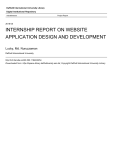 Daffodil International University Library Digital Institutional Repository miscellaneous Project Report 2018-05 INTERNSHIP REPORT ON WEBSITE APPLICATION DESIGN AND DEVELOPMENT Lucky, Md. Nuruzzaman Daffodil International University http://hdl.handle.net/20.500.11948/3254 Downloaded from http://dspace.library.daffodilvarsity.edu.bd, Copyright Daffodil International University Library INTERNSHIP REPORT ON WEBSITE APPLICATION DESIGN AND DEVELOPMENT BY Md. Nuruzzaman Lucky ID: 131-15-2188 This Report Presented in Partial Fulfillment of the Requirements for the Degree of Bachelor of Science in Computer Science and Engineering Supervised By Dr. Fernaz Narin Nur Assistant Professor Department of CSE Daffodil International University DAFFODIL INTERNATIONAL UNIVERSITY DHAKA, BANGLADESH MAY 2018 ACKNOWLEDGEMENT First I express our heartiest thanks and gratefulness to almighty God for His divine blessing makes me possible to complete the final year project/internship successfully. We really grateful and wish our profound our indebtedness to Dr. Fernaz Narin Nur, Assistant Professor, Department of CSE Daffodil International University, Dhaka. Her infinite patience, scholarly guidance, continual encouragement, constant and energetic supervision, constructive criticism, valuable advice, reading many inferior draft and correcting them at all stage have made it possible to complete this internship project documentation. Without this valuable support and guidance, this internship could not elevate up to this level of development from my point of view. I would like to express our heartiest gratitude to Dr. Syed Akhter Hossain, Professor and Head, Department of CSE, for his kind help to finish our project and also to other faculty member and the staff of CSE department of Daffodil International University. I would like to thank our entire course mate in Daffodil International University, who took part in this discuss while completing the course work. Finally, I must acknowledge with due respect the constant support and patients of my parents. III ©Daffodil International University ABSTRACT WEBSITE DESIGN AND DEVELOPMENT were the main objective of this internship. To develop a web based application or software there are several programming languages that are in use. Some of them are only used for the frontend and backend design of the software. For exampleHTML3, HTML4, HTML5, CSS, Bootstrap Framework etc. There are also some other programming languages that are used to develop the dynamic functions of the software or application. For example-PHP, Java etc. Nowadays there are also some framework's that use vastly. Frameworks are basically structured programming by using Model, View, and Controller. It is also called as MVC. If we develop web based application that is very useful for us because we can access it from anywhere of the world. It is very helpful for our daily life. That is why I choose subject of my report is "WEBSITE DESIGN AND DEVELOPMENT". Working in Insight Bangladesh Foundation added huge experiences in my upcoming career. Solving real life problems was another key issue. This report takes us through all the details of WEBSITE DESIGN AND DEVELOPMENT knowledge and experience gathered during this internship period. IV ©Daffodil International University TABLE OF CONTENTS CONTENT PAGE NO Approval i Declaration ii Acknowledge iii Abstract iv Table of content v List of figure ix CHAPTER PAGE NO CHAPTER 1: INTRODUCTION 1-4 1.1 Introduction 1 1.2 Objectives 1 1.2.1 To save the time and resources 1 1.2.2 To reduce the number of workers 2 1.2.3 To reduce the space being used 2 1.2.4 To reduce the work load 2 1.2.5 To make it easy to search any record 2 1.2.6 To edit records and update the database easily 2 1.2.7 To make the system user friendly 2 1.3Motivation 3 1.4Internship Goals 3 1.5Report Layout 4 V ©Daffodil International University CHAPTER 2: INTERNSHIP ENTERPRISE 5-9 2.1About the Company 5 2.2 IT Services Offered 6 2.2.1 Fixed Price System Develop 6 2.2.2 Software Development Kit 6 2.2.3 Pay Roll Software 6 2.2.4 Managing Site Content 6 2.2.5 Software Marketing 6 2.2.6 Dedicated Support Team 6 2.2.7 Installation & Technical Manuals 6 2.2.8 Website Optimization 6 2.2.9 Web design & Development 7 2.2.10 Website Technical Support 7 2.3 Roles in Job Market 8 2.3.1 Salaries are Average 9 2.3.2 Job Titles Are Vague 9 2.3.3 Jobs are Multi-skilled 9 CHAPTER 3: INTERNSHIP ROLES AND RESPONSIBILITIES 10-18 3.1 Training Attended 10 3.2 Assigned Responsibilities 10 3.3 Work Environment 11 3.3.1 Using Web Development Project Template 3.4 Performed Tasks 11 14 VI ©Daffodil International University CHAPTER 4: INTERNSHIP OUTCOMES 4.1Problems and Solutions 19-23 19 4.1.1 Problems 19 4.1.2 Solutions 20 4.2 Learning Outcomes 20 4.2.1 HTML 20 4.2.1 CSS 20 4.2.3 Bootstrap 20 4.2.4 JavaScript 21 4.2.5 PHP BASIC 21 4.2.6 Date & Time Function 22 4.2.7 Number Functions 22 4.2.8 Forms, Session, Cookie, Rag Expression 22 4.2.9 File Operation 23 4.3 Challenges CHAPTER 5: CONCLUTION AND FUTURE SCOPE 23 24-25 5.1 Discussion 24 5.2 Conclusion 25 5.3 Future Scopes 25 REFERENCE 26 VII ©Daffodil International University LIST OF FIGURES FIGURES PAGE NO Figure 3.1: Web design templates 12 Figure 3.2: Home page 15 Figure 3.3: Clothing page 15 Figure 3.4: Order Us page 16 Figure 3.5: Contract Us page 16 Figure 3.6: Admin page 17 Figure 3.7: Login page 17 Figure 3.8: Register page 18 Figure 3.9: Payment page 18 VIII ©Daffodil International University CHAPTER 1 INTRODUCTION 1.1 Introduction PHP was developed by Ramus Ledford. It is a freeware. It is also a weakly typed, free from language. PHP has since evolved into a powerful server-side markup language with syntax that resembles a mix between Perl and C. PHP is a server-side scripting language designed specifically for the web. Within an HTML page, we can embed PHP code that will be executed each time the page is visited.HTML generate the web page with the static text and imag
