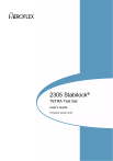 2305 Stabilock® TETRA Test Set User’s Guide Firmware version 2.00 Notice Every effort was made to ensure that the information in this document was accurate at the time of printing. However, information is subject to change without notice, and Aeroflex reserves the right to provide an addendum to this document with information not available at the time this document was created. Copyright © Copyright 2010 Aeroflex GmbH. All rights reserved. Aeroflex and its logo are trademarks of Aeroflex Incorporated. All other trademarks and registered trademarks are the property of their respective owners. No part of this guide may be reproduced or transmitted electronically or otherwise without written permission of the publisher. Trademarks Aeroflex is a trademark of Aeroflex Incorporated in the U.S.A. and other countries. The TETRA logo is owned by the TETRA MoU Association Ltd. See www.tetra-assocation.com for more details. Specifications, terms and conditions are subject to change without notice. All trademarks and registered trademarks are the property of their respective companies. Ordering information This guide is issued as part of the 2305 Stabilock. The ordering number for a published guide is AG 290 102. The ordering number for the product is AG 100 205. For remote control of the 2305 Stabilock, please also refer to the SCPI Reference Manual, ordering number AG 293 002. 2305 Stabilock Firmware version 2.00 i ii 2305 Stabilock Firmware version 2.00 Table of Contents About This Guide ix Purpose and scope . . . . . . . . . . . . . . . . . . . . . . . . . . . . . . . . . . . . . . . . . . . . . . . . . . . . . . . .x Assumptions . . . . . . . . . . . . . . . . . . . . . . . . . . . . . . . . . . . . . . . . . . . . . . . . . . . . . . . . . . . . .x Related information . . . . . . . . . . . . . . . . . . . . . . . . . . . . . . . . . . . . . . . . . . . . . . . . . . . . . .x Technical assistance . . . . . . . . . . . . . . . . . . . . . . . . . . . . . . . . . . . . . . . . . . . . . . . . . . . . . .x Conventions . . . . . . . . . . . . . . . . . . . . . . . . . . . . . . . . . . . . . . . . . . . . . . . . . . . . . . . . . . . . xi Safety Notes xiii Safety class . . . . . . . . . . . . . . . . . . . . . . . . . . . . . . . . . . . . . . . . . . . . . . . . . . . . . . . . . . . . xiv Safety warnings . . . . . . . . . . . . . . . . . . . . . . . . . . . . . . . . . . . . . . . . . . . . . . . . . . . . . . . . xiv Chapter 1 Overview 1 About the 2305 Stabilock . . . . . . . . . . . . . . . . . . . . . . . . . . . . . . . . . . . . . . . . . . . . . . . . .2 Features and capabilities . . . . . . . . . . . . . . . . . . . . . . . . . . . . . . . . . . . . . . . . . . . . . . . . . .3 Options and accessories . . . . . . . . . . . . . . . . . . . . . . . . . . . . . . . . . . . . . . . . . . . . . . . . . . .4 Chapter 2 Instrument Setup 7 Starting the instrument . . . . . . . . . . . . . . . . . . . . . . . . . . . . . . . . . . . . . . . . . . . . . . . . . . .8 Basic concepts of operation . . . . . . . . . . . . . . . . . . . . . . . . . . . . . . . . . . . . . . . . . . . . . . .9 Menus and softkeys. . . . . . . . . . . . . . . . . . . . . . . . . . . . . . . . . . . . . . . . . . . . . . . . . . .9 Entry fields. . . . . . . . . . . . . . . . . . . . . . . . . . . . . . . . . . . . . . . . . . . . . . . . . . . . . . . . . .10 Symbols used on the display . . . . . . . . . . . . . . . . . . . . . . . . . . . . . . . . . . . . . . . . . . 11 Adjusting the averaging . . . . . . . . . . . . . . . . . . . . . . . . . . . . . . . . . . . . . . . . . . . . . . . . . 13 Changing the unit for power measurements . . . . . . . . . . . . . . . . . . . . . . . . . . . . . . 14 Resetting parameters to factory settings . . . . . . . . . . . . . . . . . . . . . . . . . . . . . . . . . 14 Working with channel setups . . . . . . . . . . . . . . . . . . . . . . . . . . . . . . . . . . . . . . . . . . . . 15 Creating, loading and modifying a channel setup . . . . . . . . . . . . . . . . . . . . . . 15 Copying channel setups . . . . . . . . . . . . . . . . . . . . . . . . . . . . . . . . . . . . . . . . . . . . . 15 Setting up new duplex spacing entries . . . . . . . . . . . . . . . . . . . . . . . . . . . . . . . . . . . 17 Using the 2305 Stabilock with peripherals . . . . . . . . . . . . . . . . . . . . . . . . . . . . . . . . 18 2305 Stabilock Firmware version 2.00 iii Table of Contents Connecting and using an external keyboard . . . . . . . . . . . . . . . . . . . . . . . . . . . .18 Setting up the keyboard . . . . . . . . . . . . . . . . . . . . . . . . . . . . . . . . . . . . . . . . . .18 Special keys . . . . . . . . . . . . . . . . . . . . . . . . . . . . . . . . . . . . . . . . . . . . . . . . . . . . .18 Connecting and using a flash drive . . . . . . . . . . . . . . . . . . . . . . . . . . . . . . . . . . . .18 Connecting the instrument to the LAN . . . . . . . . . . . . . . . . . . . . . . . . . . . . . . . .19 Connecting and using a disk drive on the network . . . . . . . . . . . . . . . . . . . . . .21 Using the RS-232 interface. . . . . . . . . . . . . . . . . . . . . . . . . . . . . . . . . . . . . . . . . . .22 Using the TRIGGER IN/OUT connector. . . . . . . . . . . . . . . . . . . . . . . . . . . . . . . .24 Using an external time base . . . . . . . . . . . . . . . . . . . . . . . . . . . . . . . . . . . . . . . . . .24 Copying the screen contents to a file . . . . . . . . . . . . . . . . . . . . . . . . . . . . . . . . . .24 Viewing the screen contents on a PC monitor . . . . . . . . . . . . . . . . . . . . . . . . . .25 Setting up general parameters of the 2305 Stabilock . . . . . . . . . . . . . . . . . . . . . . .26 Setting up the user interface language . . . . . . . . . . . . . . . . . . . . . . . . . . . . . . . .26 Entering special national characters . . . . . . . . . . . . . . . . . . . . . . . . . . . . . . . . . . .26 Setting up the menu colors . . . . . . . . . . . . . . . . . . .