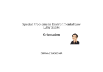Special Problems in Environmental Law LAW 313M Orientation DONNA Z GASGONIA WELCOME to Special Problems on Environmental Law Objectives • To identify environmental legal disputes and analyze how the courts resolved those disputes • To learn the rules of procedure for environmental cases Outcomes • At the end of the course, the student will be able to grasp the steps to identify the fundamental legal disputes of actual or hypothetical situations. • The student will be able to assess the applicability of rules and laws to a given situation leading to a legal conclusion. Donna Z Gasgonia 2 Course description • Special Problems on Environmental Law (SPEL) is a 1-unit subject that focuses on environmental legal disputes and resolutions applying procedural law. • The Rules of Procedure for Environmental Cases, A.M. No. 09-6-8-SC, will be referred to as much as possible to show the unique policies and steps of environmental litigation. • However, the standard requirements of the Rules of Court will also be highlighted to clarify that environmental cases are not exempt from complying with them. • Cases will be analyzed to see how the special civil actions like the Writ of Kalikasan, the Writ of Continuing Mandamus and Environmental Protection Orders, were applied or not. Donna Z Gasgonia 3 Rules of Procedure for Environmental Laws A.M. No. 09-6-8-SC Objectives of the Rules – Section 3 a) To protect and advance the constitutional right of the people to a balanced and healthful ecology b) To provide a simplified, speedy and inexpensive procedure for the enforcement of environmental rights and duties recognized under the Constitution, existing laws, rules and regulations, and international agreements c) To introduce and adopt innovations and best practices ensuring the effective enforcement of remedies and redress for violations of environmental laws d) To enable the courts to monitor and exact compliance with orders and judgments in environmental cases Donna Z Gasgonia 4 Methodology Student Class Presentations Online Lectures Exams Quizzes Donna Z Gasgonia 5 GRADE Computation Midterm Exam 25% Final Exam 25% Class Participation 50% Final GRADE Case Presentation Case Digest Individual or Group 25 % 25 % Quiz or Seatwork Class Participation 50% Case assignment question may or may not correspond to IRAC Case Analysis 1 case = 1 student Case Assignment questions – available before lesson; due on the DAY of the Lesson Case Presentation #n [title] ASSIGNMENTS Lesson Topic - CASE Not available until [date] [time] Due [date] at [time] = 20 pts Donna Z Gasgonia 9 Case Analysis – TEMPLATE: I-R-A-C I – ISSUE or legal dispute relevant to the assigned topic R – RULES or Laws invoked or opposed by the parties A – ANALYSIS of material facts and relevant arguments of the parties C – CONCLUSION application of the RULES or LAWS to the FACTS to resolve the Issue •Use Power Point Presentation •Limit slides to not more than 7 •Illustrate with maps, photos, graphs and flow charts if possible I • Issue R • Rules, statutes A C • Analysis of Facts and Arguments • Conclusion, decision Atty Donna Z Gasgonia 11 I–R–A–C vs Traditional Decision Format I R • Issue • Rules Facts • Material Facts A • Analysis C • Conclusion Issues Application Decision • Whether or not/s • Rules • Arguments • Conclusion Atty Donna Z Gasgonia 12 SLIDE PRESENTATION sample The box on the right side of the slide should not appear in your slide presentation. The box is in this sample presentation for easy reference only. Remember: slide limit is 10 slides; time limit is 15 minutes Question and Answer to follow slide presentation Atty Donna Z Gasgonia 13 Title Slide [slide # 1] • Case Title, Case number, Date • Student Name: • Date of Presentation in Class • Insert illustration Atty Donna Z Gasgonia 14 Astorga v People G.R. No. 154130, Oct. 01, 2003 Presented by: Juana dela Cruz; On: February 30, 2020 Atty Donna Z Gasgonia 15 ISSUE [slide #2] o What is the Legal Dispute? Why did the complainant file the action against the respondent? o State the issue in the format – “Whether or not…” o What are the elements of the law in question? o What is the proximate or specific act that triggered the complainant to file the action? o Are there sub-issues that are relevant to the topic being discussed in class? If not relevant to the topic, do not include as a sub-issue. Atty Donna Z Gasgonia I • Issue • Legal Dispute • Statement by complainant of Right/s violated or ignored by respondent 16 ISSUE: Whether or not the Mayor Astorga is guilty of arbitrary detention for refusing to allow the Team of foresters and policemen to leave the site of illegal logging that they investigated and documented Sub-issue: Whether or not the testimonies of the policemen are sufficient to convict Mayor Astorga considering that the foresters executed a joint affidavit of desistance Daram Mayor “detained” Team of DENR & PNP Atty Donna Z Gasgonia 17 RULES [slide #3] o Specify the section, Article. If necessary, copy paste the section entirely, or the phrase in question. o Do not copy paste irrelevant phrases, paragraphs. o Statute – specify the section, Article. o Cases Atty Donna Z Gasgonia R • • • • Rules Laws Cases Doctrine 18 RULES [slide #3] o Art. 124 , Revised Penal Code – elements: (1) the offender is a public officer or employee; (2) he detains a person; (3) detention is without legal grounds o People v Cortez – it is not necessary that the offended party be kept within an enclosure to restrict her freedom of locomotion. o People v Ballabare – the affidavit of desistance is merely an additional ground to support the defenses of the accused; contents may not repudiate material points in the complaint but merely manifest lack of interest to pursue the case. Atty Donna Z Gasgonia 19 ANALYSIS of Facts [slide #4 - #5] FACTS: Who? What? When? Where? How? o Who are the parties? 