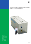 BROAD CENTRAL AIR CONDITIONING & MAGNETIC BEARING OIL FREE CHILLER BROAD PACKAGED POWER-EFFICIENT CHILLER MODEL SELECTION & DESIGN MANUAL Application ·Provide chilled water for central air conditioning system ·Produce chilled water over 3℃ Cooling capacity 520 ~ 4200 kW (150 ~ 1, 200 RT) 2017. 12 EN (CY90 Packaged Chiller) Global Internet Monitoring Center for BROAD central air conditioning. It has been operating since 1996, known as the pioneer of "internet +". BROAD Global Market AS THE GLOBAL LEADER OF NON-ELECTRIC CHILLER, WHY BROAD ALSO MAKES ELECTRIC CHILLER ? BROAD non-electric chiller is the world's most efficient equipment when evaluating the efficiency of "primary energy", also it is the only central air conditioning that can generate chilled water, heating water and sanitary hot water with the highest reliability, the longest life span and the quietest operation. However, the following reasons determine that we are manufacturing power-efficient chiller now. 1. Many areas have no access to natural gas or waste energy sources. 2. Some inquires need cooling only, or the yearly operation time is too short to use multi-function air conditioning. 3. Specific locations powered by wind, hydro or solar PV has great potential to reduce CO2 emissions. 4. BROAD Power-efficient Chiller is more efficient than traditional electric chillers. 5. BROAD Packaged Water Distribution System is more efficient than traditional distribution systems. 6. BROAD Power-efficient Chiller can be combined with BROAD non-electric chiller and BROAD CHP system, which has higher efficiency and energy flexibility than single energy source equipment. VALUES OF BROAD POWER-EFFICIENT CHILLER ENERGY SAVING The Integrated Part Load Value (IPLV) of the chiller can reach 10. This high IPLV can reduce energy consumption by 40% when compared to traditional electric chillers. BROAD Packaged Water Distribution System can reduce electricity consumption up to 76% when compared to conventional field-built systems. ADDITIONAL COST SAVING The magnetic oil free and zero friction technology can save up to 40% energy cost and 90% of maintenance cost when compared with traditional electric chillers. BROAD PLC "Smart anti-surge control" module insures the chiller always operate in a safe range. The integrated design of the BROAD chiller, water distribution system and stainless steel metal enclosure reduce design cost and field installation costs for customers. SPACE SAVING Compared with the traditional electric chillers, BROAD packaged chiller reduces volume by 30~50% and weight by 30%. BROAD Packaged Water Distribution System and stainless steel metal enclosures can be installed outside which reduces mechanical room footprint requirements. WORRY-FREE BROAD Packaged Water Distribution System and stainless steel metal enclosure eliminate risk and reduce system design, procurement and installation errors. BROAD Intelligent Control System (ICS)can be automated for free operation of the chiller and water distribution system. BROAD Global Internet Monitoring System provides customers with 24/7/365 fault prediction, analysis and energy-saving management tools. CONTENTS 1 Packaged Power-efficient Chiller Working Principle Power-efficient Chiller Rated Parameters Packaged Power-efficient Chiller Rated Parameters Power-efficient Chiller General Parameters Performance Curves Model Selection Curves Nomenclature Combination of Non-electric Chiller and Power-efficient Chiller Model Selection & Ordering Supply Scope 1 2 2 2 3 3 3 4 5 6 Design & Construction Tips Dimensions P&I Diagram Scope of Supply/Work Machine Room Construction Tips Control System Exterior Wiring Diagram Lifiting & Leveling Tips List of Control System Installation 7 7 12 13 14 15 16 17 18 1 BROAD PACKAGED POWER-EFFICIENT CHILLER high-temp. & high-pressure refrigerant vapor mid-temp. & high-pressure refrigerant low-temp. & low-pressure refrigerant low-temp. & low-pressure refrigerant vapor chilled water cooling water The cooling principle The compressor compresses 7℃ low-temp. & low-pressure refrigerant vapor to 45℃ high temp. & high pressure vapor then flows into condenser. In condenser cooling water absorbs the heat from refrigerant vapor condensation process and its temperature raises from 30℃ to 35℃. Then the heat will be discharged to air through cooling tower. After condensation, 33℃ refrigerant becomes into 6℃ low-temp. & low-pressure liquid after throttle valve. The refrigerant enters evaporator and evaporates immediately. It absorbs heat from the chilled water and makes chilled water drop from 12℃ to 7℃. After evaporation, the refrigerant gasifies into 7℃ vapor and sucked into compressor. Then next cycle begins. 2 Power-efficient Chiller Rated Parameters Model Cooling capacity C 45 60 90 120 180 240 360 kW 520 700 1045 1400 2090 2800 4200 60 90 120 180 240 360 RT 150 200 300 400 600 800 1200 kW 95.5 125.0 185.0 238.0 360.0 445.5 665.0 4 10 kcal/h 45 Input power Rated COP 5.45 5.60 5.65 5.88 5.81 6.30 6.32 COP (IPLV) 9.69 9.35 9.88 9.76 9.68 10.36 10.18 Starting current A 2 2 2 2 2 2 2 Maximum operation current A 180 230 360 460 740 920 1380 kW 105 130 200 260 380 520 750 m3/h 90 120 180 240 360 480 720 Pressure drop kPa 28 30 60 70 95 70 110 Connection nozzle DN 150 150 200 200 250 300 350 m3/h 112 150 225 300 450 600 900 kPa 28 35 65 75 90 75 105 Power demand Evaporator Flow rate Condenser Flow rate Pressure drop Connection nozzle DN 150 150 200 200 300 300 350 Refrigerant wt. kg 230 320 500 650 950 1300 1900 Shipment wt. kg 2600 3500 4600 5700 10000 11400 20000 Operation wt. kg 3000 4000 5200 6700 11200 13400 22400 Packaged Power-efficient Chiller Rated Parameters Pumpset Model CY 45 60 90 120 180 240 360 External head mH2O 19 21 21 20 19.5 21 18 Power demand kW 11 15 22 37 44 60 90 12.8 18.7 31.5 37.4 51.0 76.5 Chilled water pump Rated power consumption kW 9.4 Cooling water pump External head mH2O 11.5 11.5 8.5 7.5 6 8.5 6.5 Power demand kW 8 11 