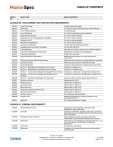 TABLE OF CONTENTS Section No. Section Title Section Description DIVISION 00 - PROCUREMENT AND CONTRACTING REQUIREMENTS 000101 Project Title Page Project Manual title page. 000107 Seals Page For seals of design professionals on Project Manual. 000115 List of Drawing Sheets List of Drawings. 000120 List of Schedules For a list of separately bound schedules. 001113 Advertisement for Bids For use on public projects. 001115 Advertisement for Prequalification of Bidders For use on public projects. 001116 Invitation to Bid For use on private projects. 001153 Request for Qualifications For use on public projects. 002113 Instructions to Bidders Incorporates AIA A701 by reference. 002213 Supplementary Instructions to Bidders For use with AIA A701. 002513 Prebid Meetings Sets date, time, place, and terms for prebid meetings. 002600 Procurement Substitution Procedures Substitution procedures during bidding. 003113 Preliminary Schedules Preliminary schedules. 003119 Existing Condition Information References documents for survey and as-built information. 003126 Existing Hazardous Material Information References documents for existing hazardous materials. 003132 Geotechnical Data References documents for geotechnical data. 003143 Permit Application Indicates responsibility for building permit application. 004113 Bid Form - Stipulated Sum (Single-Prime Contract) Fixed price, single prime. 004116 Bid Form - Stipulated Sum (Multiple-Prime Contract) Fixed price, multiple prime. 004123 Bid Form - Construction Management (Single-Prime Contract) Fixed price, construction management, single prime. 004126 Bid Form - Construction Management (Multiple-Prime Contract) Fixed price, construction management, multiple prime. 004133 Bid Form - Cost-Plus-Fee (Single-Prime Contract) Cost plus, with or without guaranteed maximum. 004313 Bid Security Forms References AIA A310. 004321 Allowance Form Attachment for Bid Form. 004322 Unit Prices Form Attachment for Bid Form. 004323 Alternates Form Attachment for Bid Form. 004373 Proposed Schedule of Values Form Attachment for Bid Form. 004393 Bid Submittal Checklist Attachment for Bid Form. 005100 Notice of Award For notifying successful bidder. 006000 Project Forms References Agreement, General Conditions, and administrative forms. 009113 Addenda For notifying bidders of changes. DIVISION 01 - GENERAL REQUIREMENTS 010000 General Requirements Evaluations: Role of Division 1 Sections, their preparation and coordination. 011000 Summary Summary of the Work, phased construction, purchase contracts, Owner-furnished products, access to site, and work restrictions. 011200 Multiple Contract Summary Responsibilities of each contract for the Work, coordination, and temporary facilities and controls. 012100 Allowances Provisions for cash allowances including lump-sum, unit cost, contingency, and testing and inspecting allowances. 012200 Unit Prices Provisions for unit prices. 012300 Alternates Provisions for change-of-scope and cost-comparison type alternates. N = New U = Update Copyright 2022 - The American Institute of Architects (AIA) Exclusively published and distributed by Deltek June 2022 Page 1 of 31 TABLE OF CONTENTS Section No. 012500 Section Title Section Description Substitution Procedures Procedural requirements for requests for substitutions during construction. 012600 Contract Modification Procedures Procedural requirements for changes to the Contract. 012900 Payment Procedures Administrative requirements for Contractor's Applications for Payment. 013100 Project Management and Coordination Administrative requirements for project meetings; preconstruction, preinstallation, and project closeout conferences; RFIs; and project Web sites. 013200 Construction Progress Documentation Contractor's Construction Schedule including Gantt charts and CPM schedules; and web-based project software. Photographic Documentation Construction photographs, video recordings, and webbased photographic documentation. Submittal Procedures Procedures for Action and Informational Submittals including Delegated-Design Submittals and Submittals Schedule. U 013233 013300 013513.16 Special Project Procedures for Detention Facilities Special requirements for detention work including responsibilities of a detention specialist. 013516 Alteration Project Procedures General protection and work procedures for remodeling, renovation, repair, and maintenance work. 014000 Quality Requirements Quality-assurance and -control requirements, special tests and inspections, and Contractor's quality-control plan. 014200 References Common definitions and terms; and acronyms and trade names of associations, government agencies, and other entities referenced in MasterSpec. 014339 Mockups Elaborate mockups that incorporate the work of multiple Sections, including integrated exterior mockups, preconstruction laboratory mockups, and room mockups. U 015000 Temporary Facilities and Controls Temporary utilities and facilities for construction support, security, and protection. U 015639 Temporary Tree and Plant Protection Construction-phase tree and plant protection, trimming, protection- zone fencing, and pruning. 015723 Temporary Storm Water Pollution Control Requirements for compliance with EPA’s Stormwater Pollution Prevention Plan (SWPPP). 016000 Product Requirements Administrative and procedural requirements for product, material, and equipment selection and handling; warranties; and comparable products. Execution General requirements for product installation, cutting and patching, protection, field engineering, and progress cleaning. Construction Waste Management and Disposal Salvaging, recycling, and disposing of non-hazardous demolition and construction waste. Closeout Procedures Contract closeout including Substantial Completion and Final Completion procedures, warranties, and final cleaning. 017823 Operation and Maintenance Data Emergency, operation, and maintenance manuals for products and equipment. 017839 Project Re