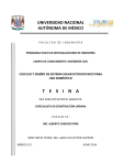 UNIVERSIDAD NACIONAL AUTÓNOMA DE MÉXICO FACULTAD DE INGENIERÍA PROGRAMA ÚNICO DE ESPECIALIZACIONES DE INGENIERÍA CAMPO DE CONOCIMIENTO: INGENIERÍA CIVIL CÁLCULO Y DISEÑO DE SISTEMA SOLAR FOTOVOLTAICO PARA USO DOMÉSTICO T E S I N A QUE PARA OPTAR POR EL GRADO DE: ESPECIALISTA EN CONSTRUCCIÓN URBANA PRESENTA: ING. ALBERTO CARDOZO PIÑA DIRECTOR DE TESINA: ING. JUAN LUIS COTTIER CAVIEDES MÉXICO, D.F. JUNIO 2014 Cálculo y diseño de Sistema Solar Fotovoltaico para uso doméstico ÍNDICE ÍNDICE DE ILUSTRACIONES ................................................................................................................. 2 ÍNDICE DE TABLAS. ................................................................................................................................ 2 1. INTRODUCCIÓN............................................................................................................................... 3 2. ENERGÍA SOLAR Y SUS APLICACIONES. ................................................................................. 4 3. HISTORIA DE LOS PANELES FOTOVOLTAICOS. ..................................................................... 6 4. FUNCIONAMIENTO DEL PANEL FOTOVOLTAICO.................................................................... 7 5. TIPOS DE SISTEMA SOLAR FOTOVOLTAICO, DIFERENCIAS, VENTAJAS Y DESVENTAJAS. ..................................................................................................................................... 10 5.1. CELDAS FOTOVOLTAICAS. .................................................................................................................... 10 5.2. ENERGÍA SOLAR FOTOVOLTAICA DE ALTA CONCENTRACIÓN. .............................................................. 11 5.2.1. Concentradores de la radiación solar. .................................................................................... 12 5.2.2. Célula fotovoltaica...................................................................................................................... 13 5.2.3. Dispersor del calor ..................................................................................................................... 14 5.2.4. Sistema de seguimiento solar .................................................................................................. 14 5.3 SISTEMA SOLAR FOTOVOLTAICO. .......................................................................................................... 15 5.3.1 Sistema solar fotovoltaico aislado. ........................................................................................... 15 5.3.2 Sistema fotovoltaico interconectado. ....................................................................................... 16 6. RENTABILIDAD DEL SISTEMA SOLAR FOTOVOLTAICO PARA DOMICILIO DE BAJO Y ALTO CONSUMO ELÉCTRICO. ........................................................................................................... 17 6.1. TARIFAS CFE. ...................................................................................................................................... 17 6.1.1. Tarifa 1 para el Distrito Federal (febrero 2014)............................................................... 17 6.1.2. Tarifas para el resto de la república. ................................................................................ 19 6.1.3. Tarifa DAC para el Distrito Federal (febrero 2014). ....................................................... 25 CÁLCULO Y DISEÑO DEL SISTEMA FOTOVOLTAICO........................................................... 28 7. 7.1. EJEMPLO CONSUMO TARIFA 1 (FEBRERO 2014) ............................................................................................... 30 Memoria de cálculo. ................................................................................................................................ 31 7.2. EJEMPLO DAC (FEBRERO 2014) ................................................................................................................... 34 Memoria de cálculo. ................................................................................................................................ 35 7.3. REQUISITOS PARA LA INTERCONEXIÓN DE SISTEMA FV NIVEL RESIDENCIAL A LA RED. ................................................ 38 8. NORMATIVIDAD............................................................................................................................. 39 9. CONCLUSIONES ........................................................................................................................... 44 10. BIBLIOGRAFÍA Y MESOGRAFÍA ............................................................................................ 46 1 Cálculo y diseño de Sistema Solar Fotovoltaico para uso doméstico Índice de ilustraciones Ilustración 1 Celda solar monocristalina vs Celda solar policristalina............................................... 10 Ilustración 2 Esquema captación solar de un panel solar fotovoltaico sin concentración. .............. 12 Ilustración 3 Esquema captación solar de un panel solar fotovoltaico con concentración. ............. 13 Ilustración 4 Esquema de célula solar fotovoltaica de triple capa. Cada uno de los materiales aprovecha una parte del espectro electromagnético del sol. .......................................................... 13 Ilustración 5 Panel solar fotovoltaico de alta concentración ............................................................ 14 Ilustración 6 Diagrama sistema FV con respaldo aislado. ................................................................. 16 Ilustración 7 Diagrama sistema FV sin respaldo interconectado a la red. ........................................ 17 Ilustración 8 Tipos de Tarifas Domésticas en México. ...................................................................... 25 Ilustración 9 Comparativa de Gasto sin sistema fotovoltaico vs. Ahorro con sistema fotovoltaico (tarifa